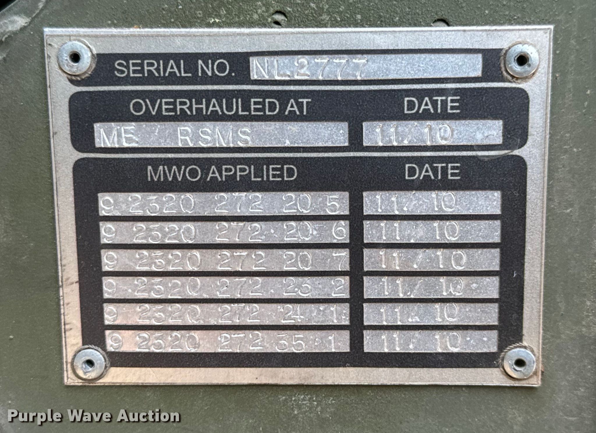 Purple Wave is selling a used Truck Chassis in Kansas. This item is a 1985 AM General M923A1 truck cab and chassis with the following: Miles: 1,883 on odometer, Hours: 190 on meter, VIN: NL2777