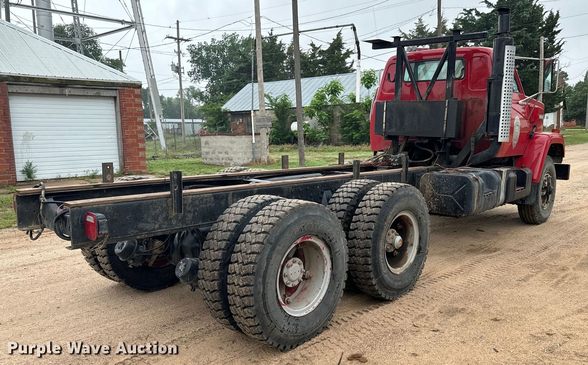 1982 GMC Brigadier truck cab and chassis. Miles: 109,310 on odometer, Hours: 2,283 on meter, Hours: 1,388 on second meter, VIN: 1GDT9C4C9CV578478. Engine Cummins NTC-300, Displacement: 855 C.I.D, Cylinders: 6, Fuel type: Diesel, HP: 300. Transmission Automatic. Chassis Axles: Tandem, Differential lock: Inter-axle, Suspension: Spring over walking beam, Brakes: Air, PTO, Truck chassis: 16' 9", GVWR: 50,000 lbs. Interior Heat. Features Fuel tank: Single, Pump. Tires Front: 315/80R22.5, Rear: 10.00R20. Notes Windshield chipped or cracked. Kansas title. Title distribution may be delayed up to 14 days from verification of funds. Reno County Rural Fire Dept District 6. Sylvia, KS 67581