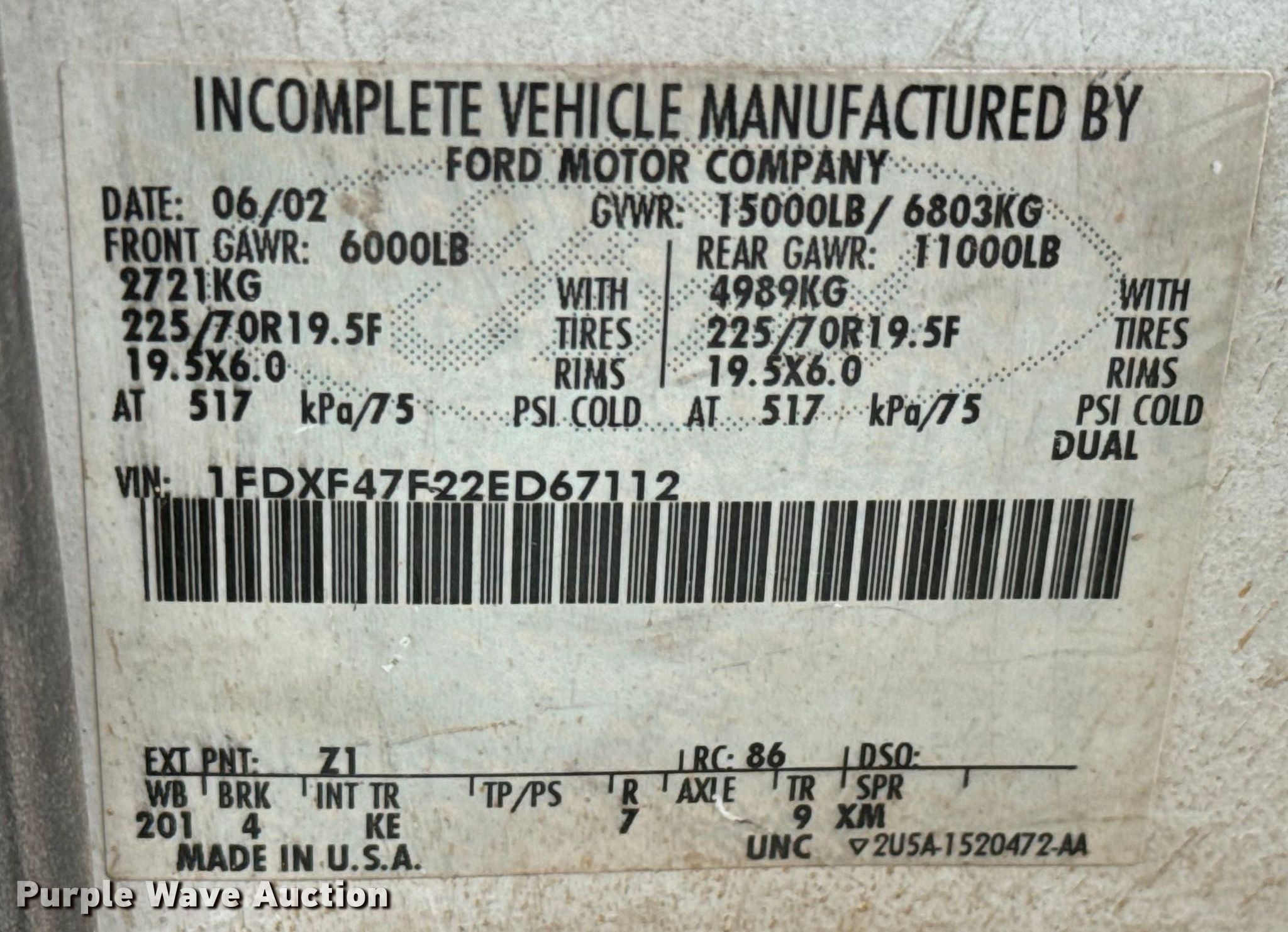Purple Wave is selling a used Fire Truck or Emergency Vehicle in Kansas. This item is a 2002 Ford F450 Super Duty XL brush fire truck with the following: Miles: 91,140 on odometer, VIN: 1FDXF47F22ED67112