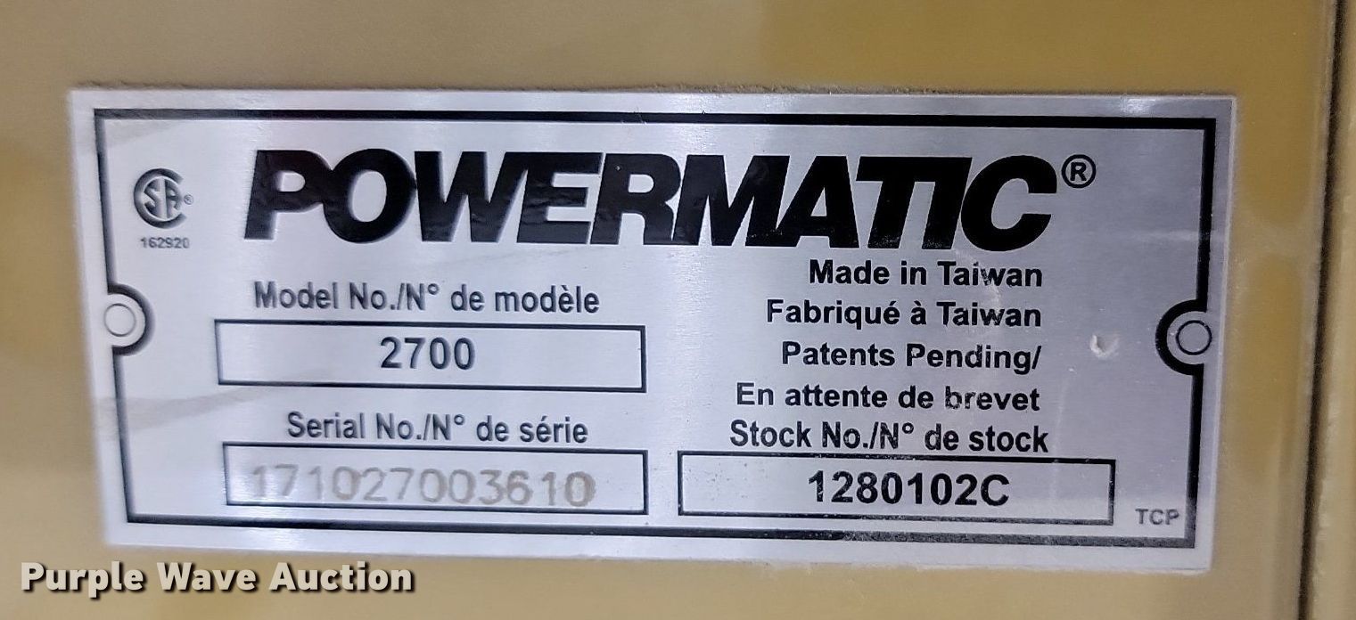Purple Wave is selling a used Tools in South Dakota. This item is a Powermatic 2700 shaper with the following: Serial: 171027003610