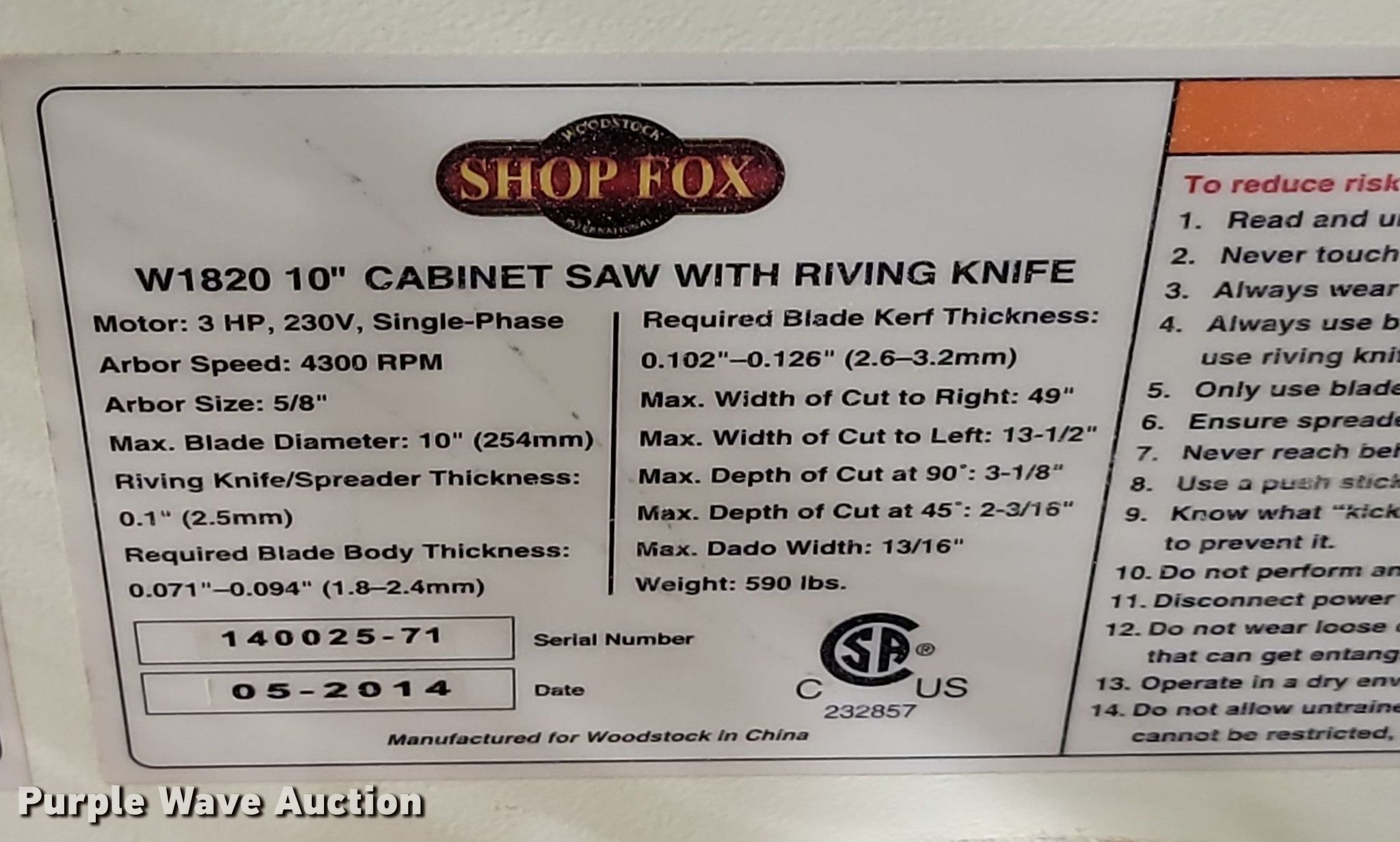 Purple Wave is selling a used Tools in South Dakota. This item is a Tools with the following: Shop Fox W1820 cabinet saw, Ridgid oscillating belt sander