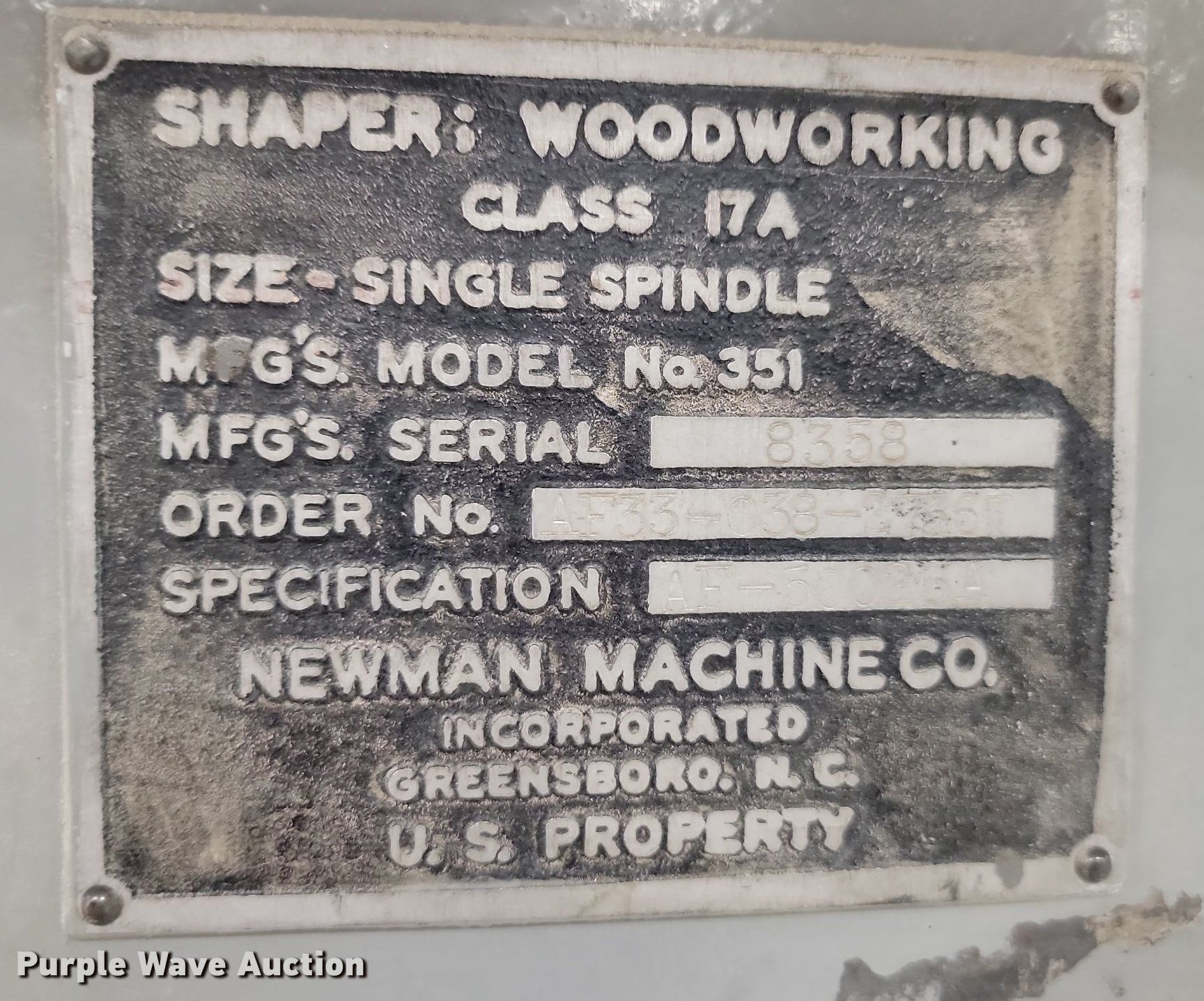 Purple Wave is selling a used Tools in South Dakota. This item is a Newman 351 shaper with the following: Serial: 8358