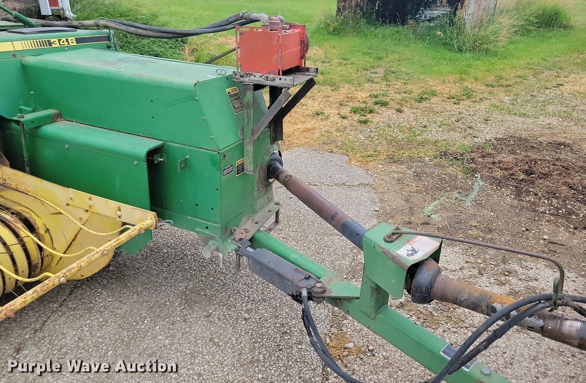 Purple Wave is selling a used Square Baler in Iowa. This item is a John Deere 348 small square baler with the following: Serial: E00348X843837