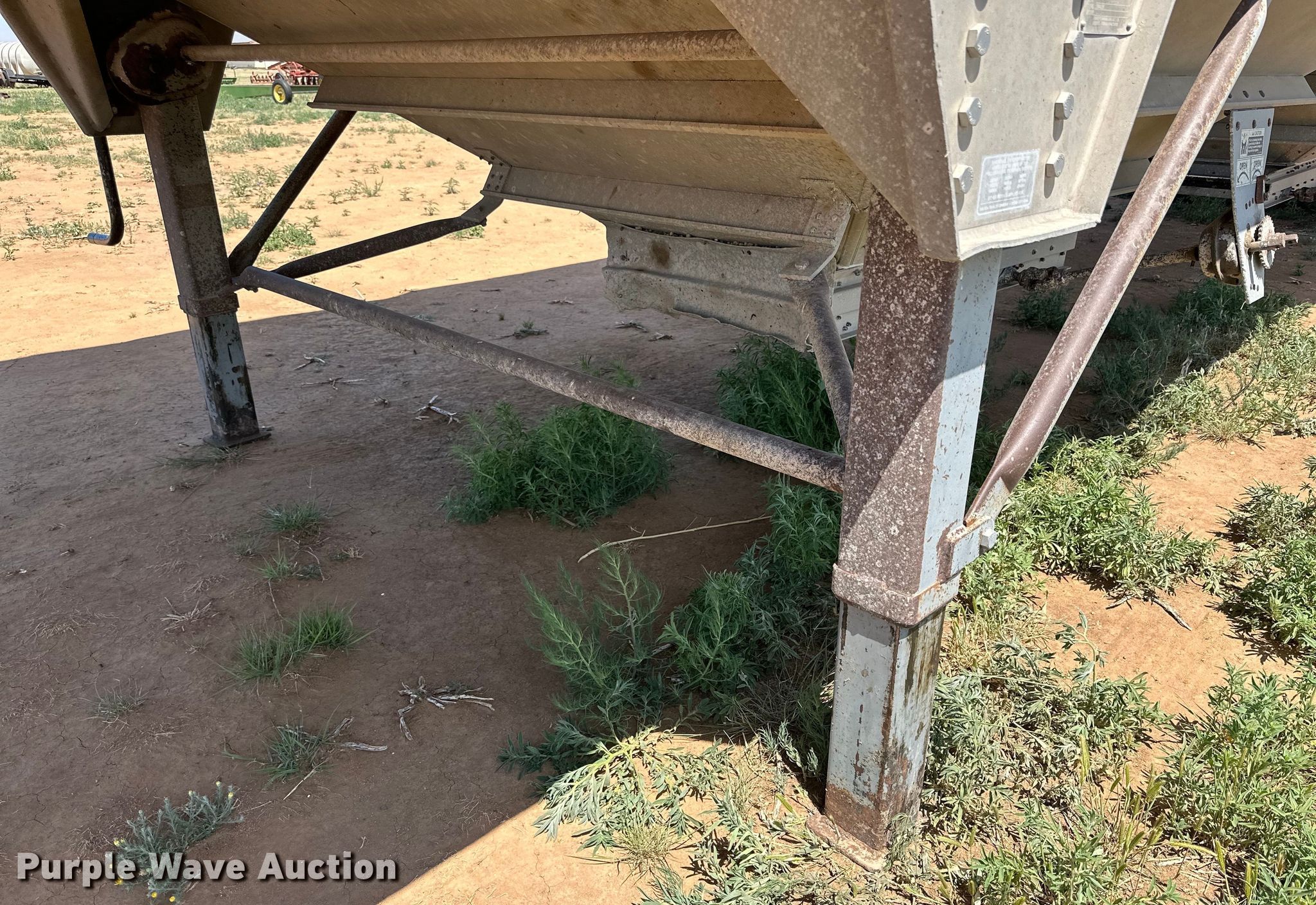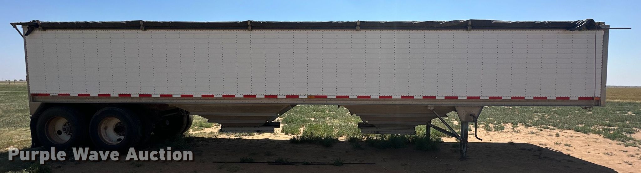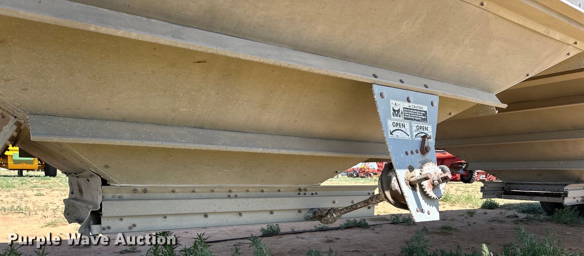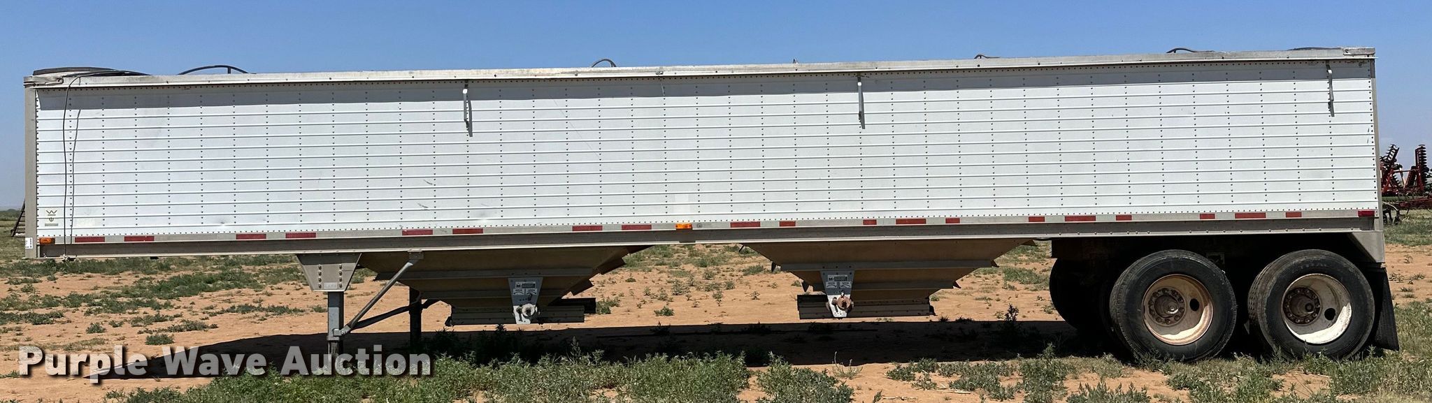 1993 Wilson DWH-200 grain trailer. VIN: 1W1MAF1D9PA216667. Dimensions Overall: 41' L x 102" W. Features Body type: Aluminum, Hoppers: Double Trap gates: Manual, Roll tarp. Chassis Landing gear: Dual, Suspension: Spring, Brakes: Air, Axles: Tandem, GVWR: 65,000 lbs, GAWR: 19,000 lbs. Tires Steel wheels, Size: 11R24.5. New Mexico title. Estate of Robert J. Podzemny. Sedan, NM 88436