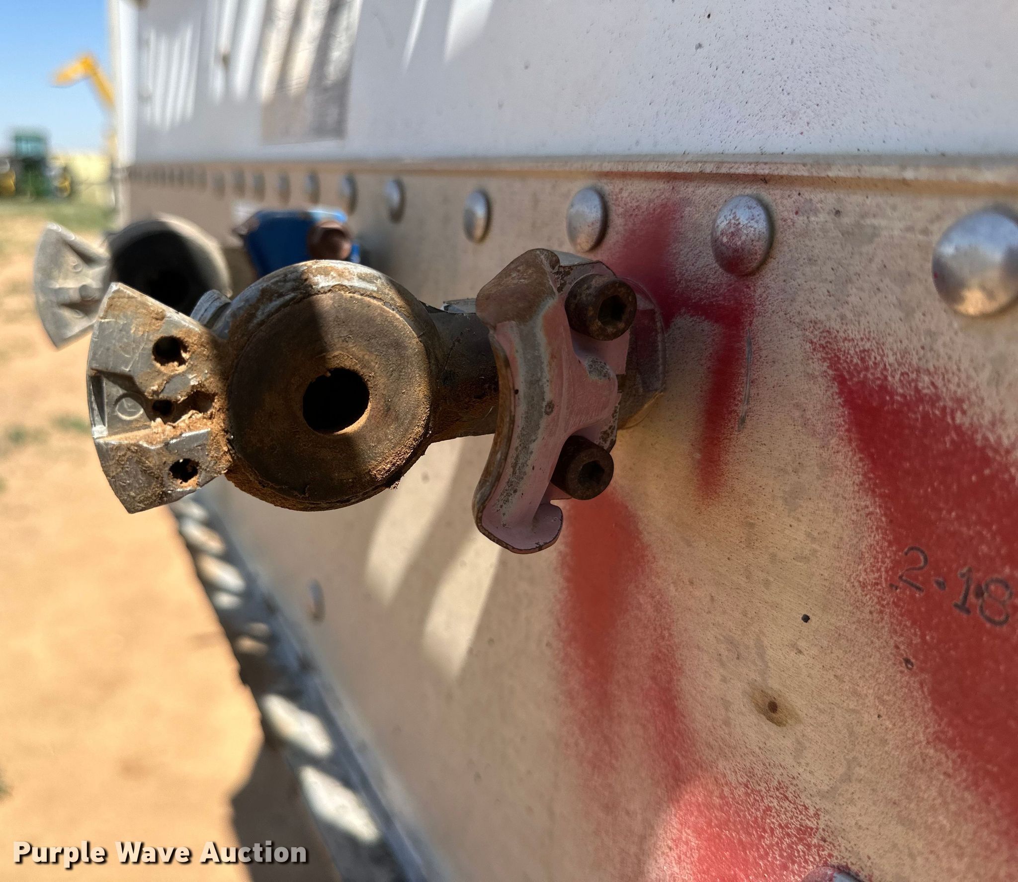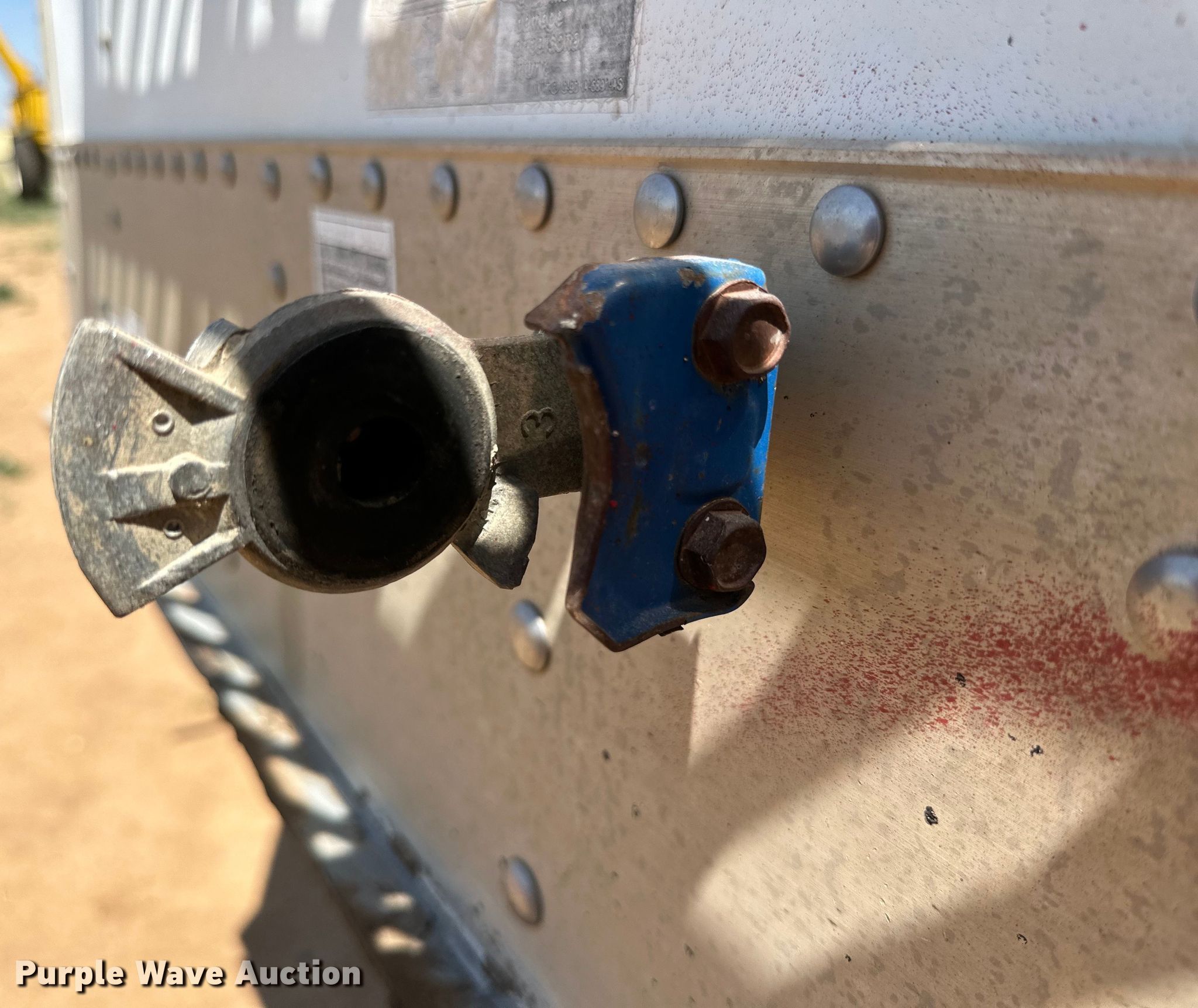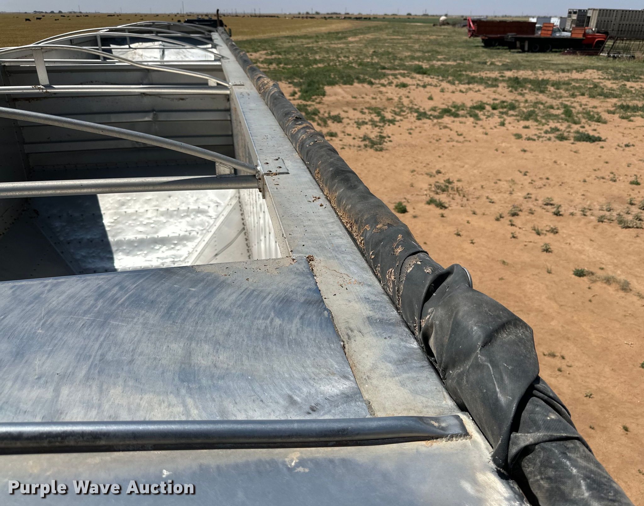 1993 Wilson DWH-200 grain trailer. VIN: 1W1MAF1D9PA216667. Dimensions Overall: 41' L x 102" W. Features Body type: Aluminum, Hoppers: Double Trap gates: Manual, Roll tarp. Chassis Landing gear: Dual, Suspension: Spring, Brakes: Air, Axles: Tandem, GVWR: 65,000 lbs, GAWR: 19,000 lbs. Tires Steel wheels, Size: 11R24.5. New Mexico title. Estate of Robert J. Podzemny. Sedan, NM 88436
