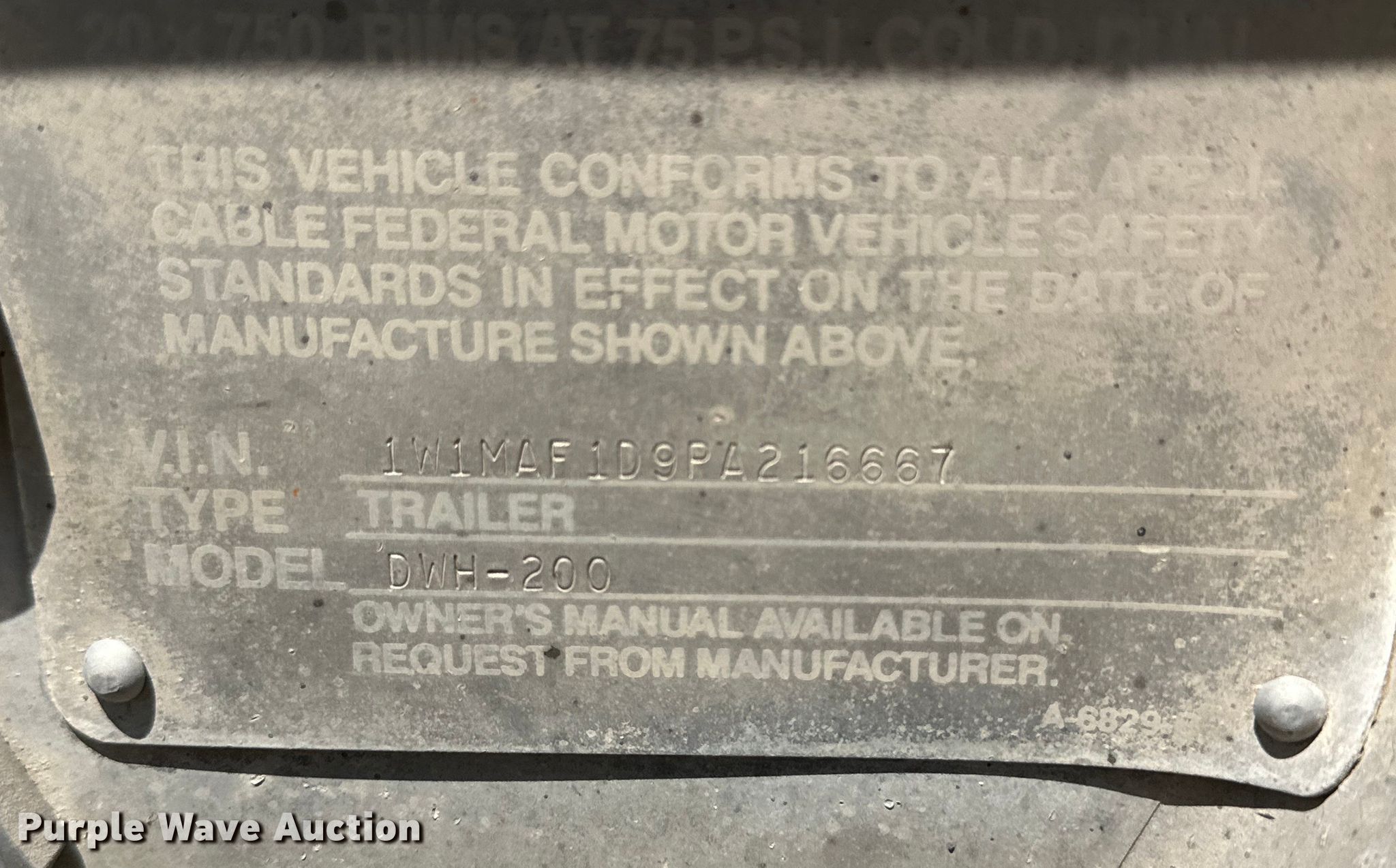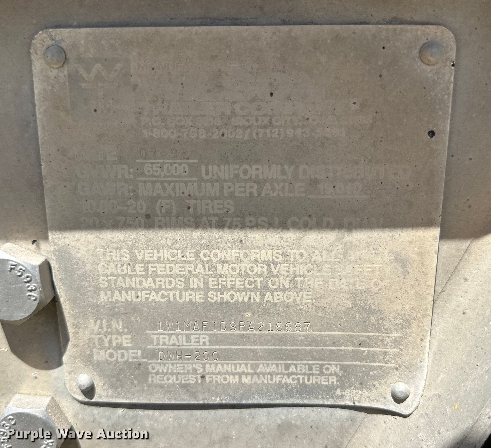 Purple Wave is selling a used Grain or Commodity Trailer in New Mexico. This item is a 1993 Wilson DWH-200 grain trailer with the following: VIN: 1W1MAF1D9PA216667