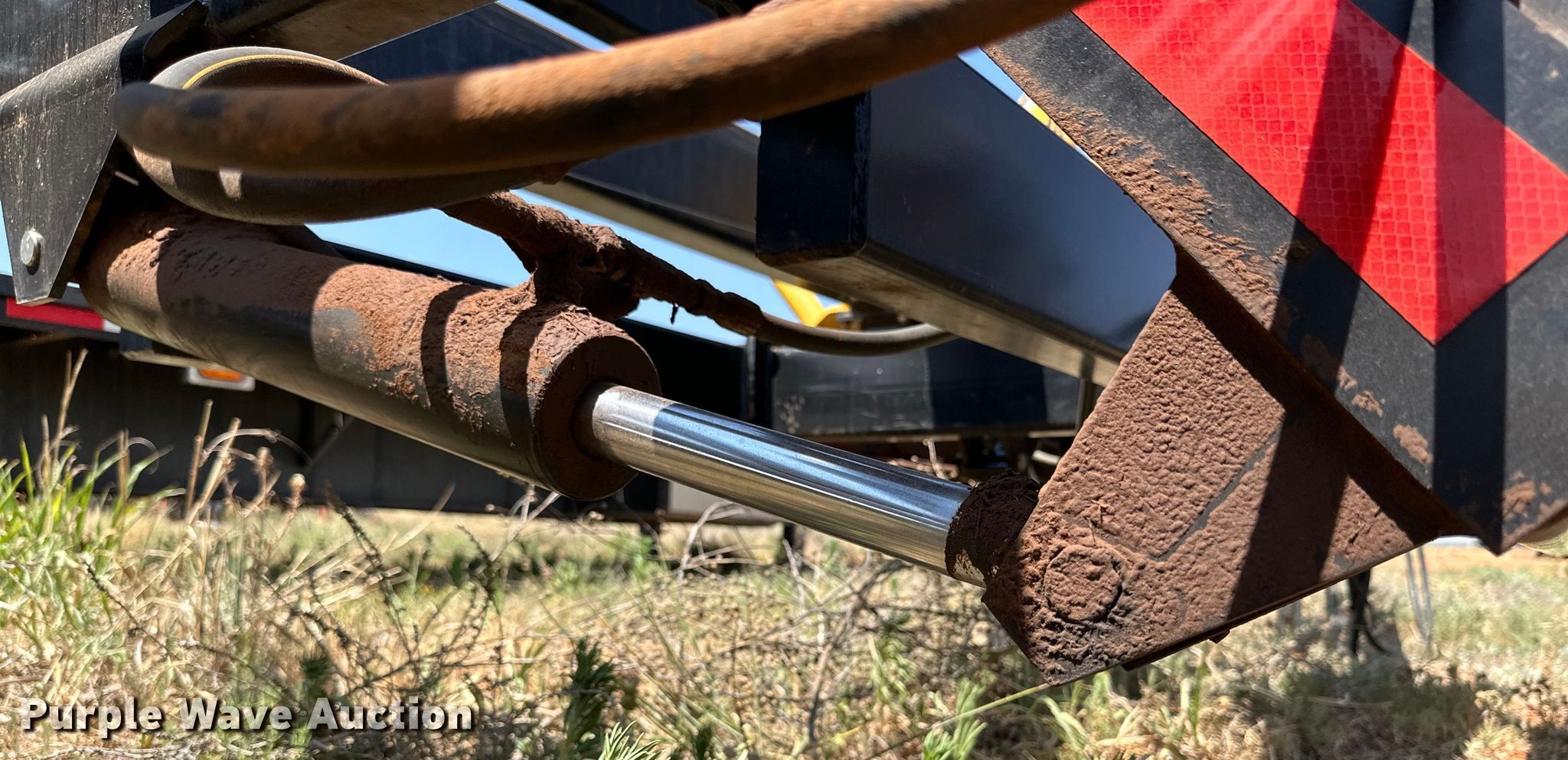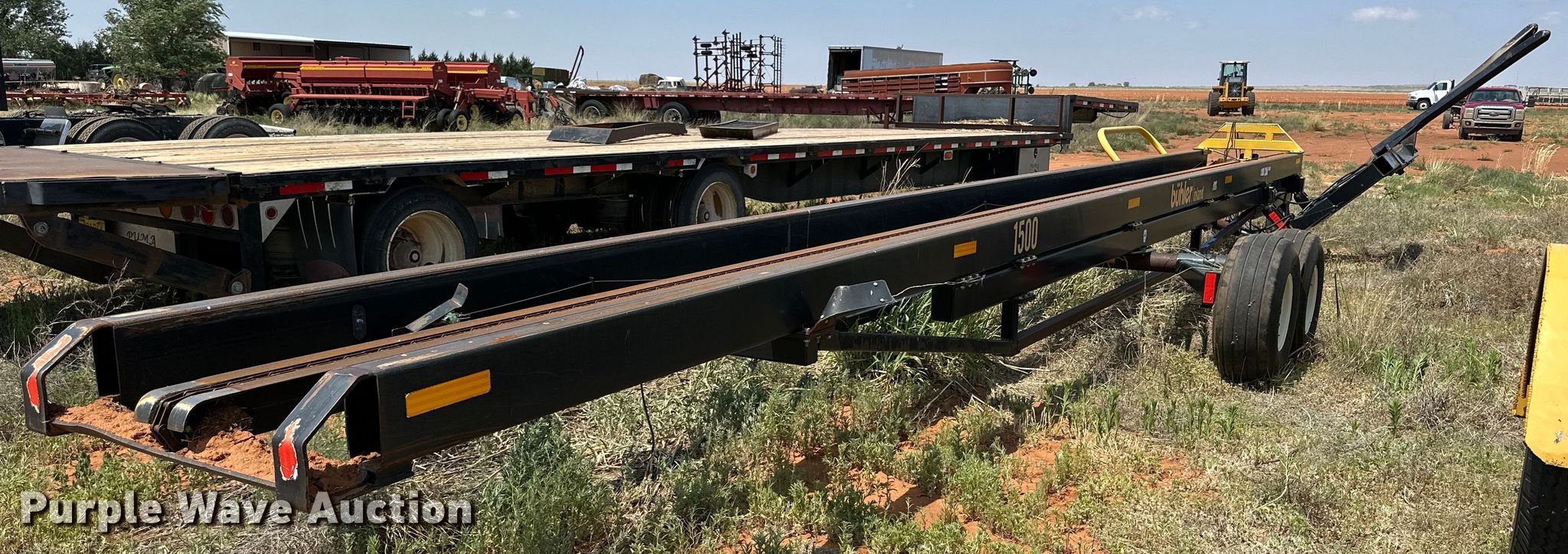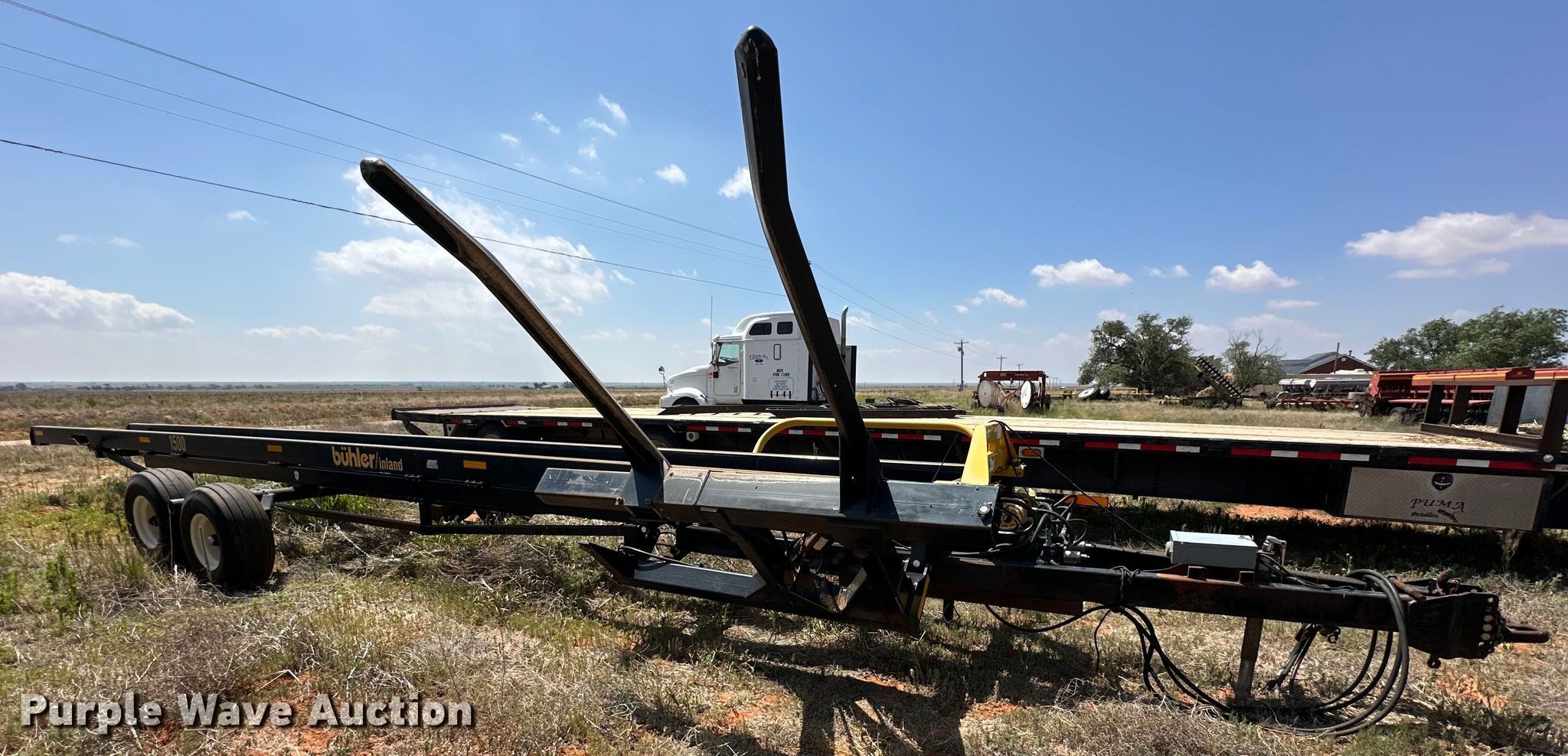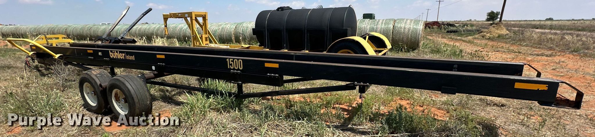 Buhler BM1500 bale mover. VIN: 09BM150028. Dimensions Overall: 45' L x 108" W, Body: 38' L x 40" W. Chassis Landing gear: Single, Suspension: Walking beam, Axles: Tandem, Hydraulic tilt deck unload, Hydraulic loading arm. Tires Steel wheels, Size: 12.5L-15F. Pursuant to New Mexico law, Purple Wave will not be collecting sales taxes on any of the purchases made in this business liquidation auction. J Essary Farms Retirement. Floyd, NM 88118