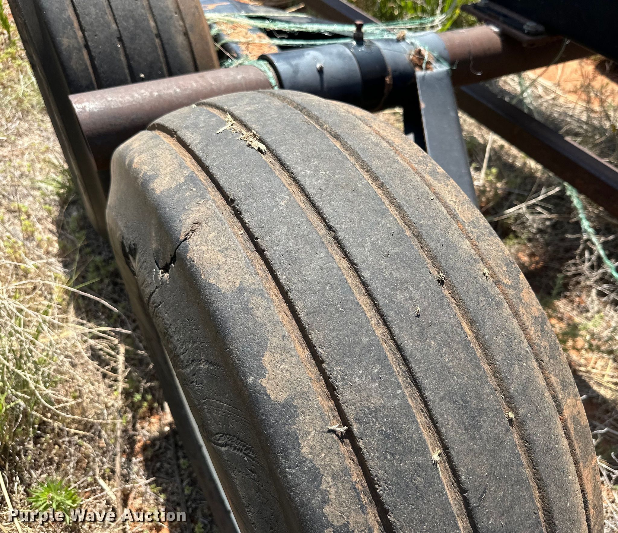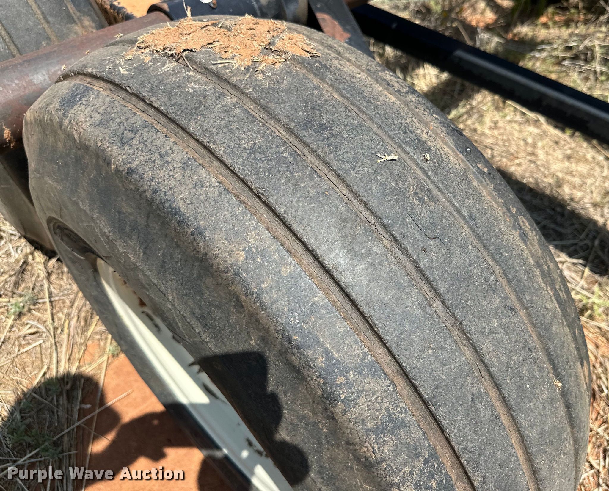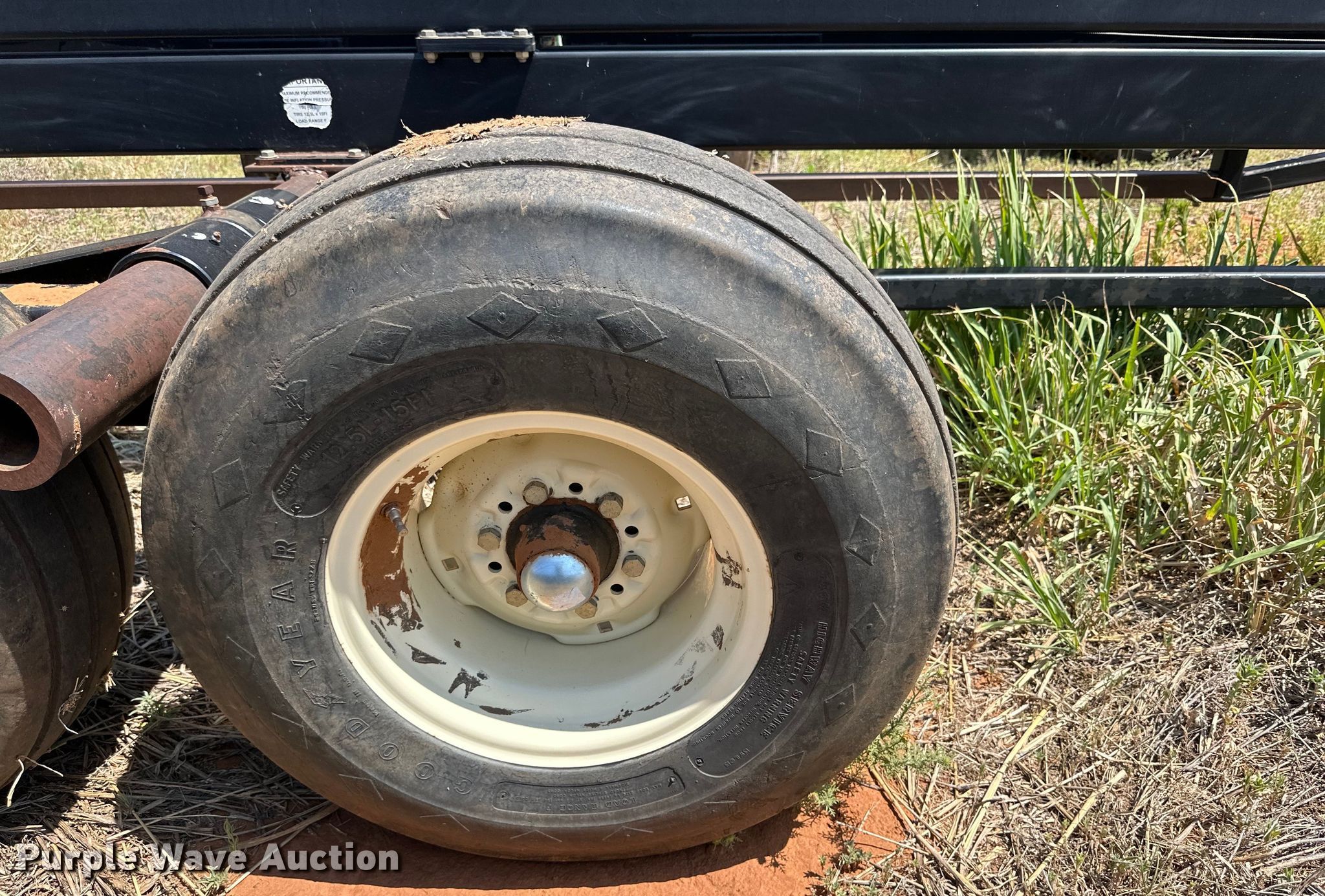 Buhler BM1500 bale mover. VIN: 09BM150028. Dimensions Overall: 45' L x 108" W, Body: 38' L x 40" W. Chassis Landing gear: Single, Suspension: Walking beam, Axles: Tandem, Hydraulic tilt deck unload, Hydraulic loading arm. Tires Steel wheels, Size: 12.5L-15F. Pursuant to New Mexico law, Purple Wave will not be collecting sales taxes on any of the purchases made in this business liquidation auction. J Essary Farms Retirement. Floyd, NM 88118