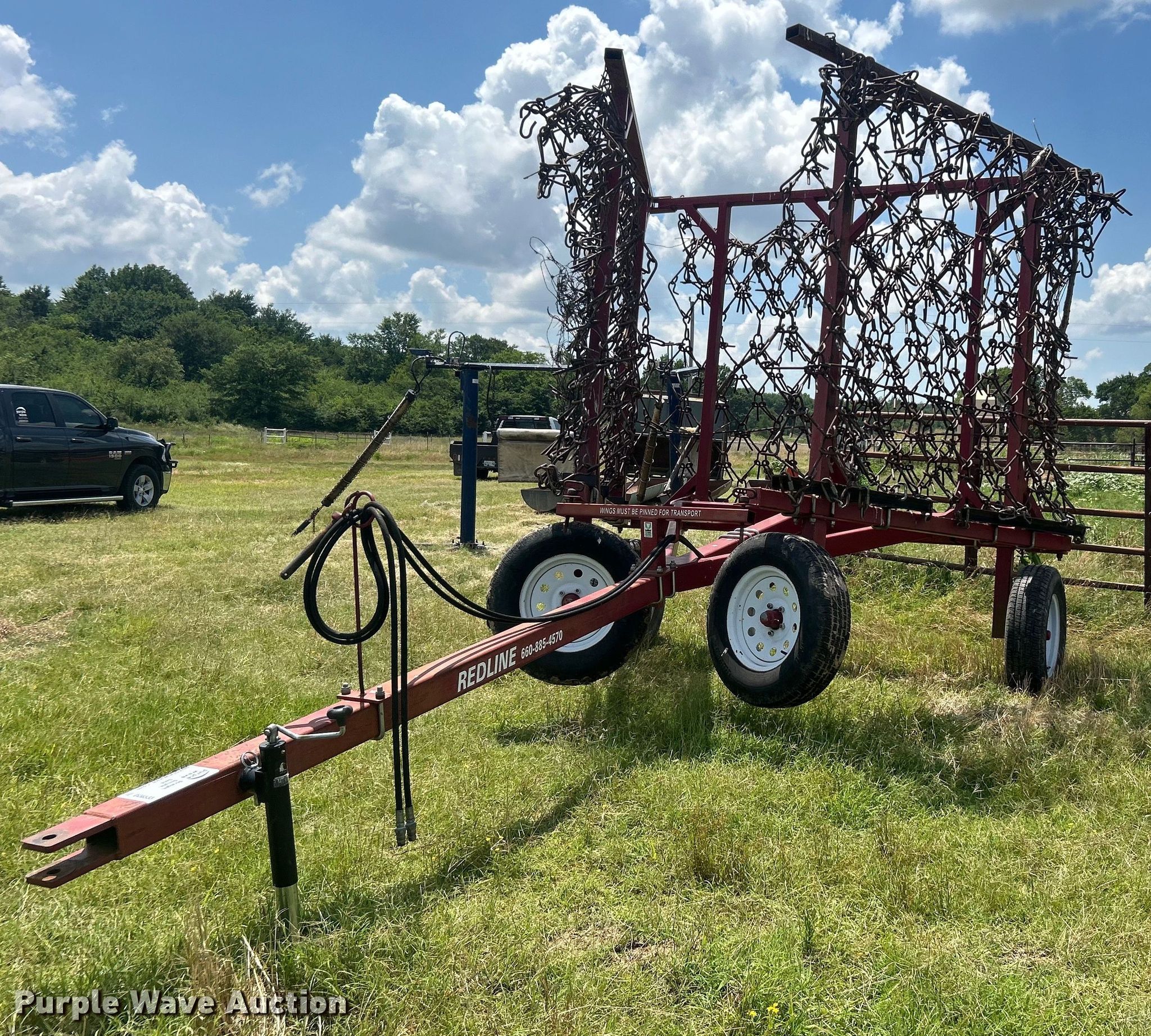 Purple Wave is selling a used Tillage Other in Oklahoma. This item is a Redline drag harrow with the following: Overall width: 8', Serial: 1200