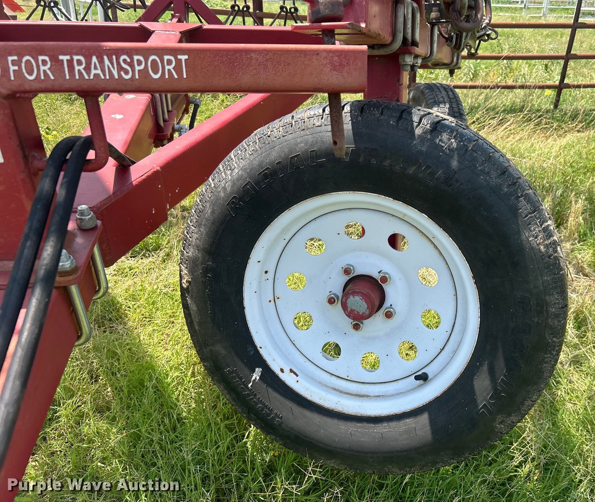 Redline drag harrow. Overall width: 8', Serial: 1200. Features Operation Hydraulic fold. Tires Tire size: ST205/75R15. Muskogee, OK 73101