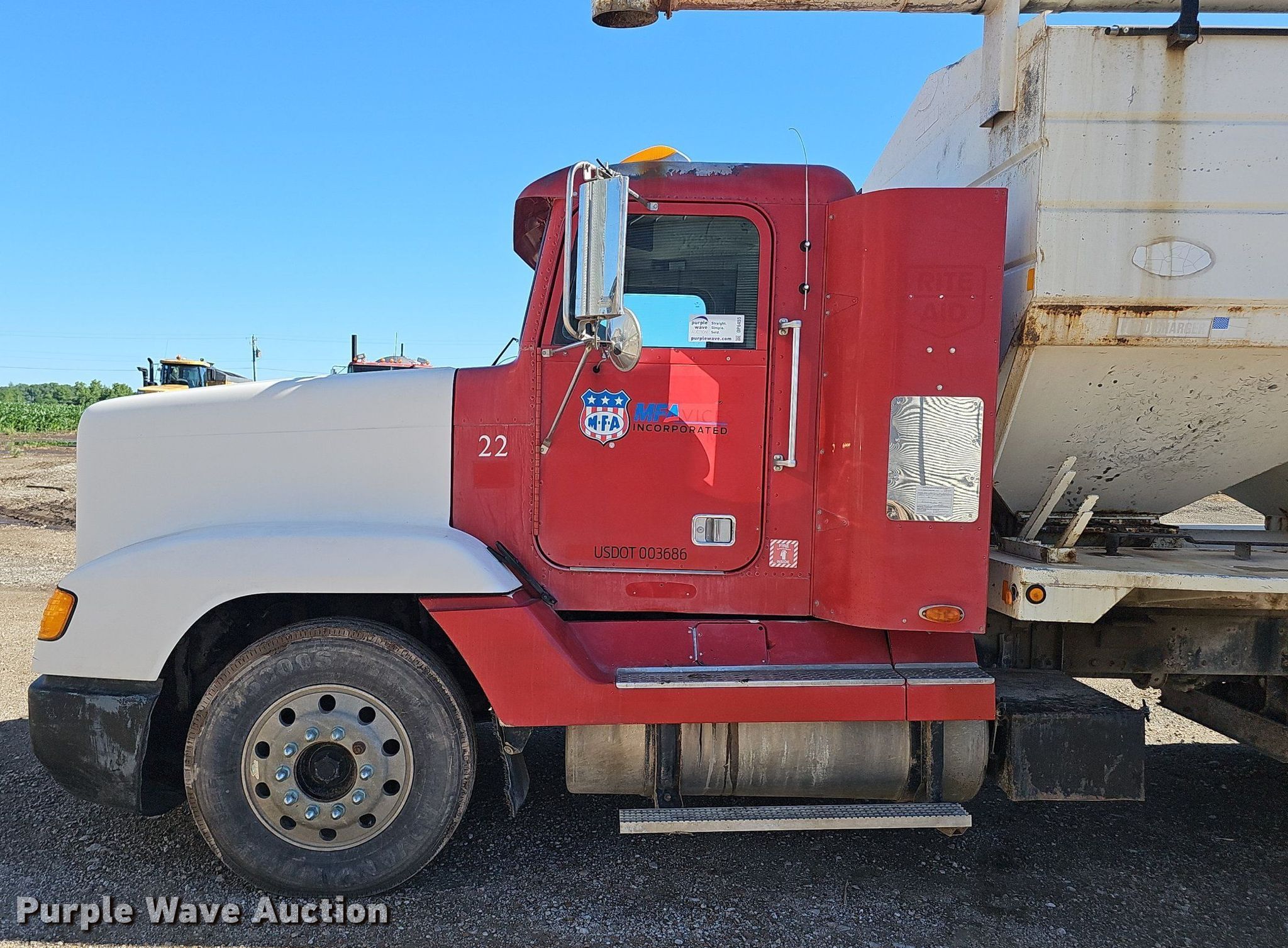 Purple Wave is selling a used Fertilizer or Feed Delivery Truck in Missouri. This item is a 2000 Freightliner FLD 120 seed tender truck with the following: Miles: 459,064 on odometer, VIN: 1FUYDDYB8YDF50275