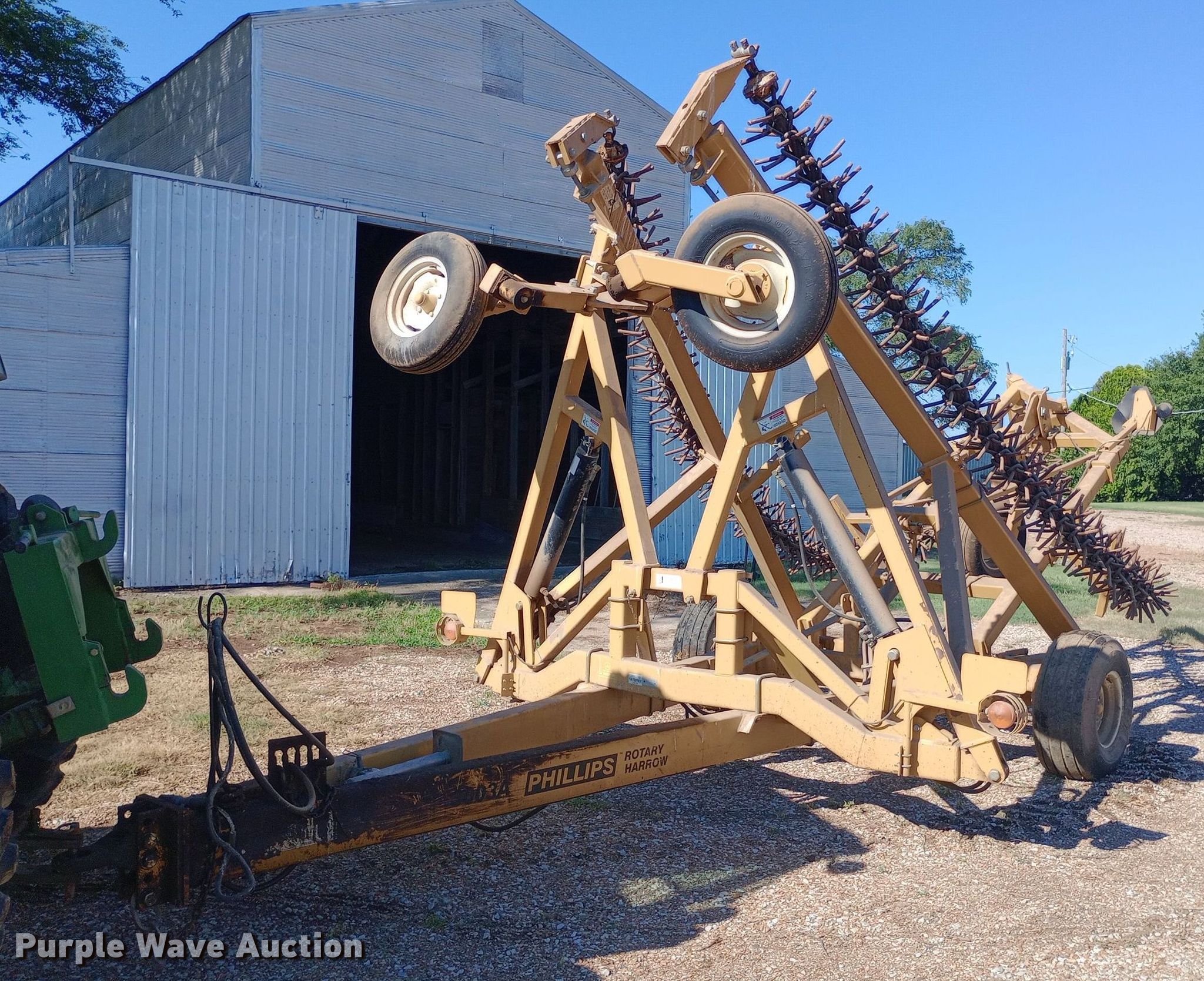 Purple Wave is selling a used Rotary Tillage in Kansas. This item is a Phillips 3003A rotary harrow with the following: Overall width: 30', Serial: 30TA-04087