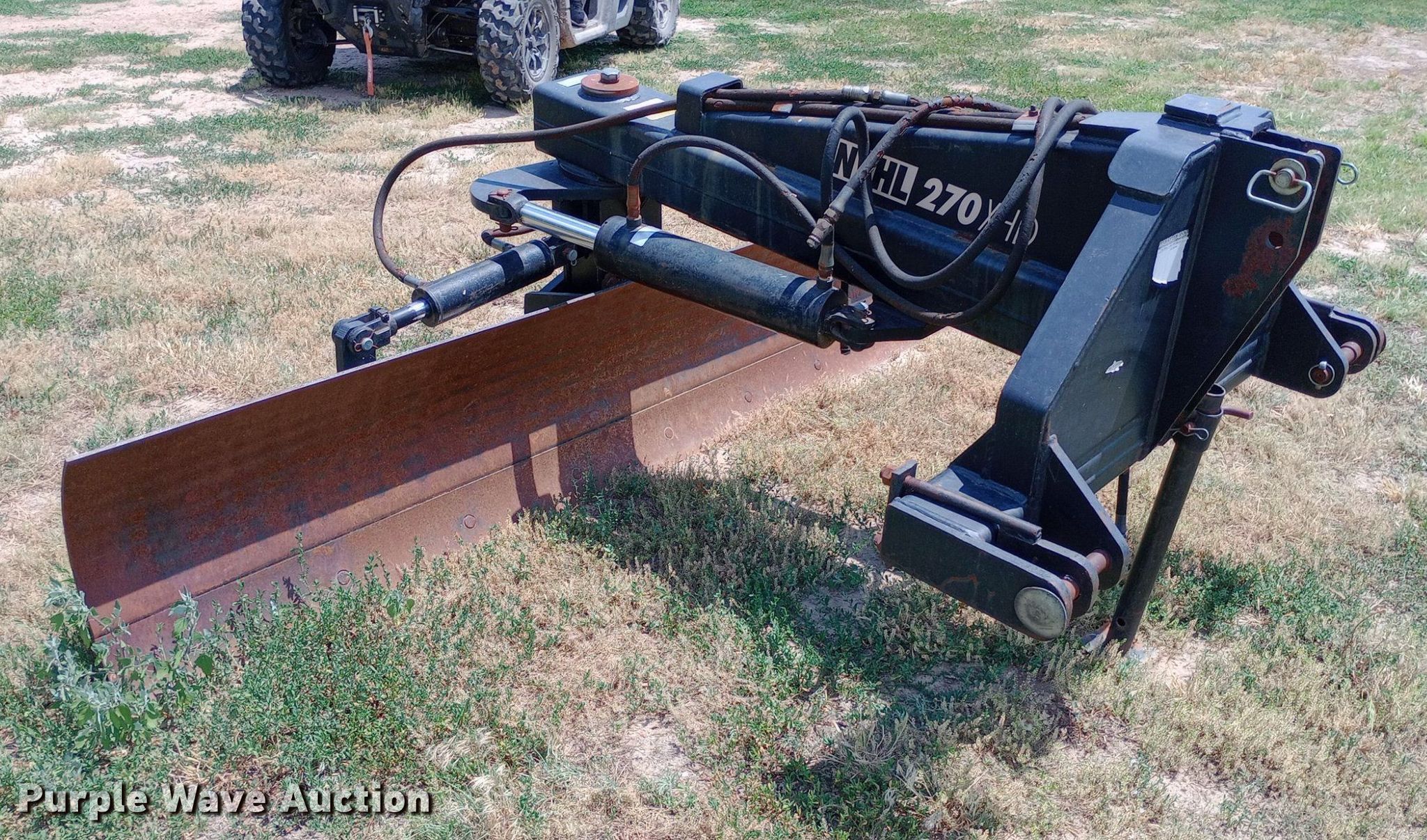Purple Wave is selling a used Ag Tractor Loader or Attach. in Kansas. This item is a Bison NVHL-270XDH 6-way blade with the following: Serial: 10-03-99-0007