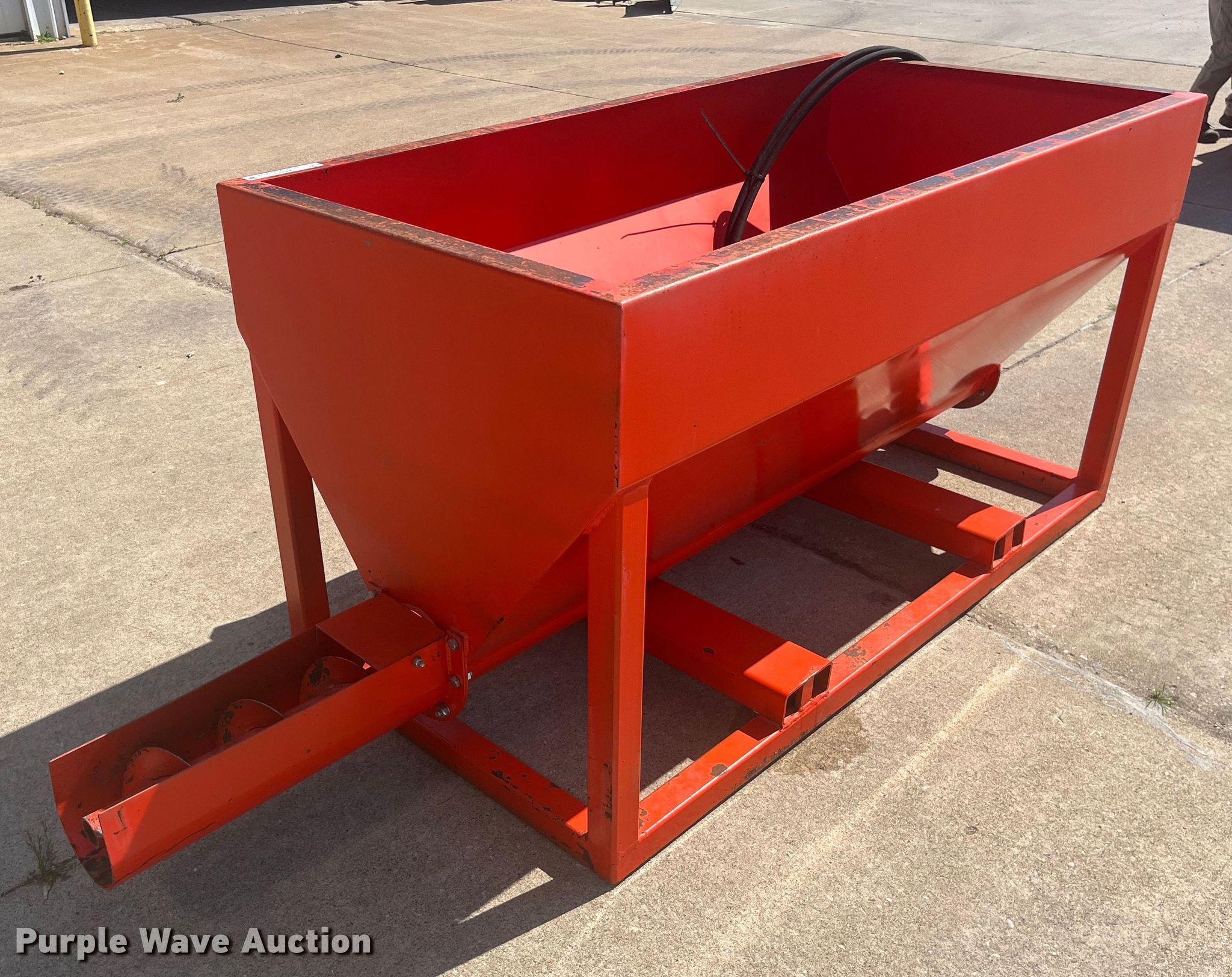 Skid steer feeder. 6' L x 3' W, Discharge: Side, Skid steer not included. Mount Pleasant, IA 52641