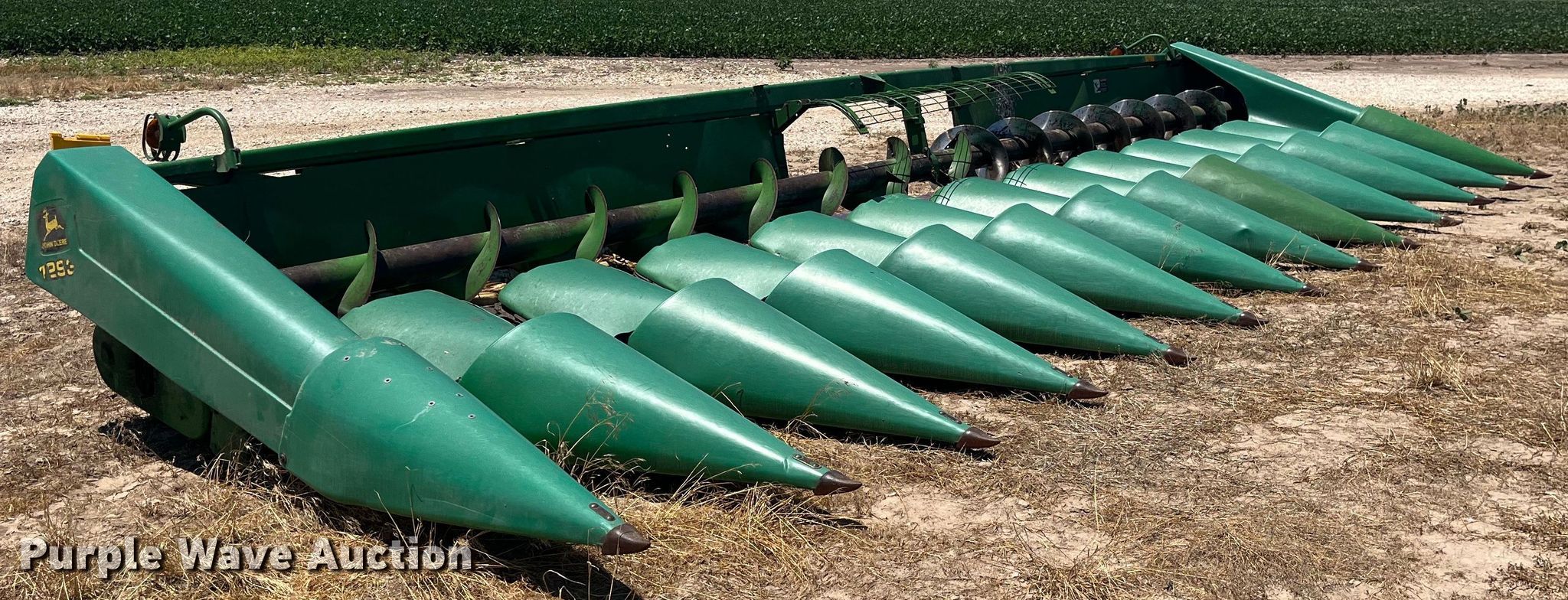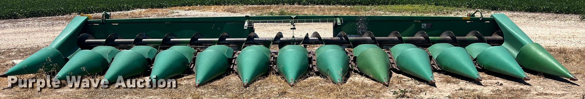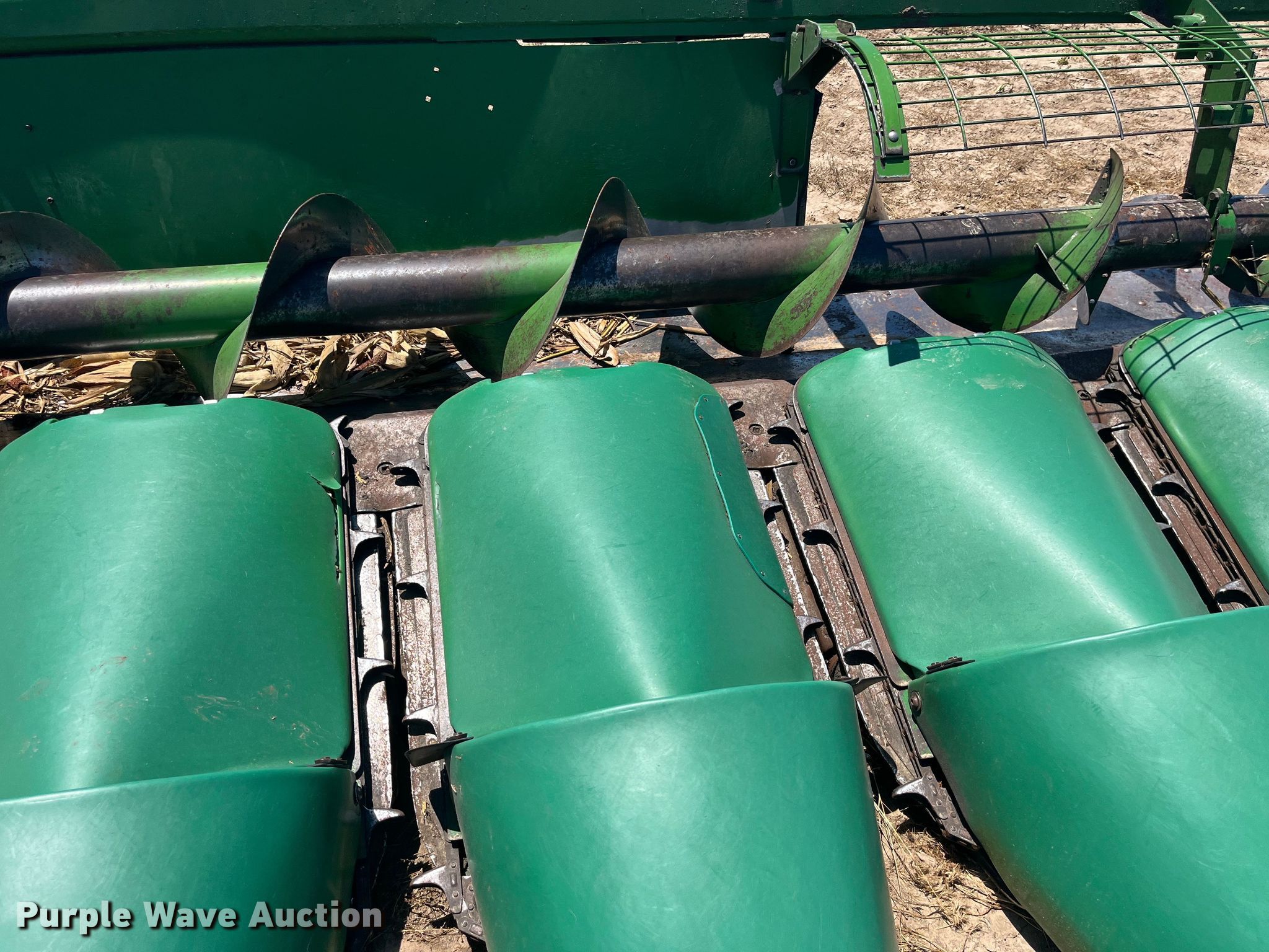 Purple Wave is selling a used Corn or Row Head in Missouri. This item is a John Deere 1293 corn head with the following: Rows: 12, Row spacing: 30", Hydraulic deck plates, Single point coupler, Drivelines: Dual