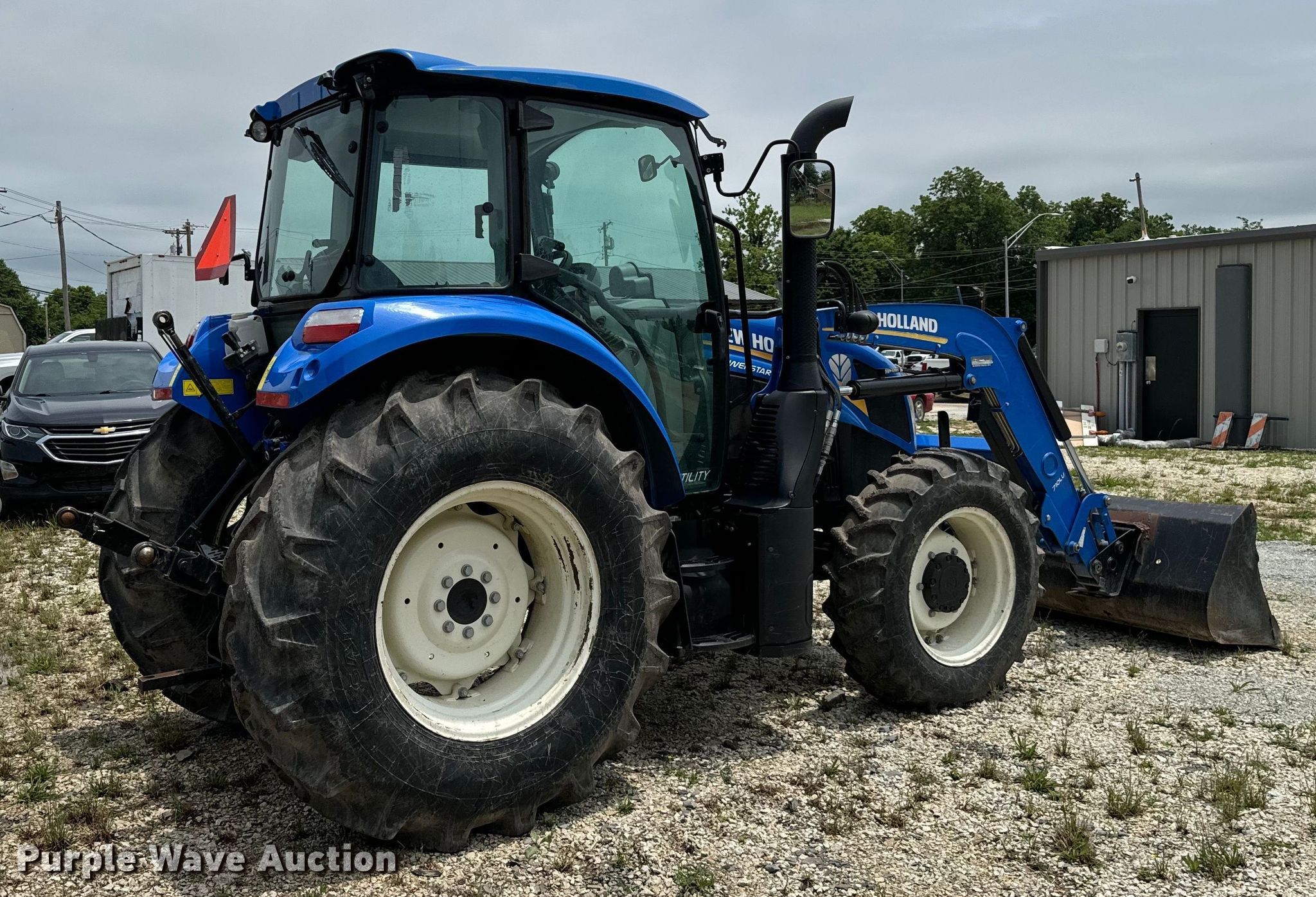 2019 New Holland Powerstar 100 MFWD tractor. Hours: 1,355 on meter, Serial: ELRT5100AKLE51211. Engine New Holland, Serial: F5GFL413H, Cylinders: 4, Fuel type: Diesel. Transmission Synchro, Left-hand reverser, Differential lock. Operators station AC, Heat. Features PTO: 540, Three point Top link, Seven pin outlet, Hydraulic remote sets Rear: 2, Loader New Holland 710LU, Quick attach, Controls: Joystick, Bucket Width: 82".. Tires Front: 320/85R24, Rear: 18.4-30. Ada, OK 74820