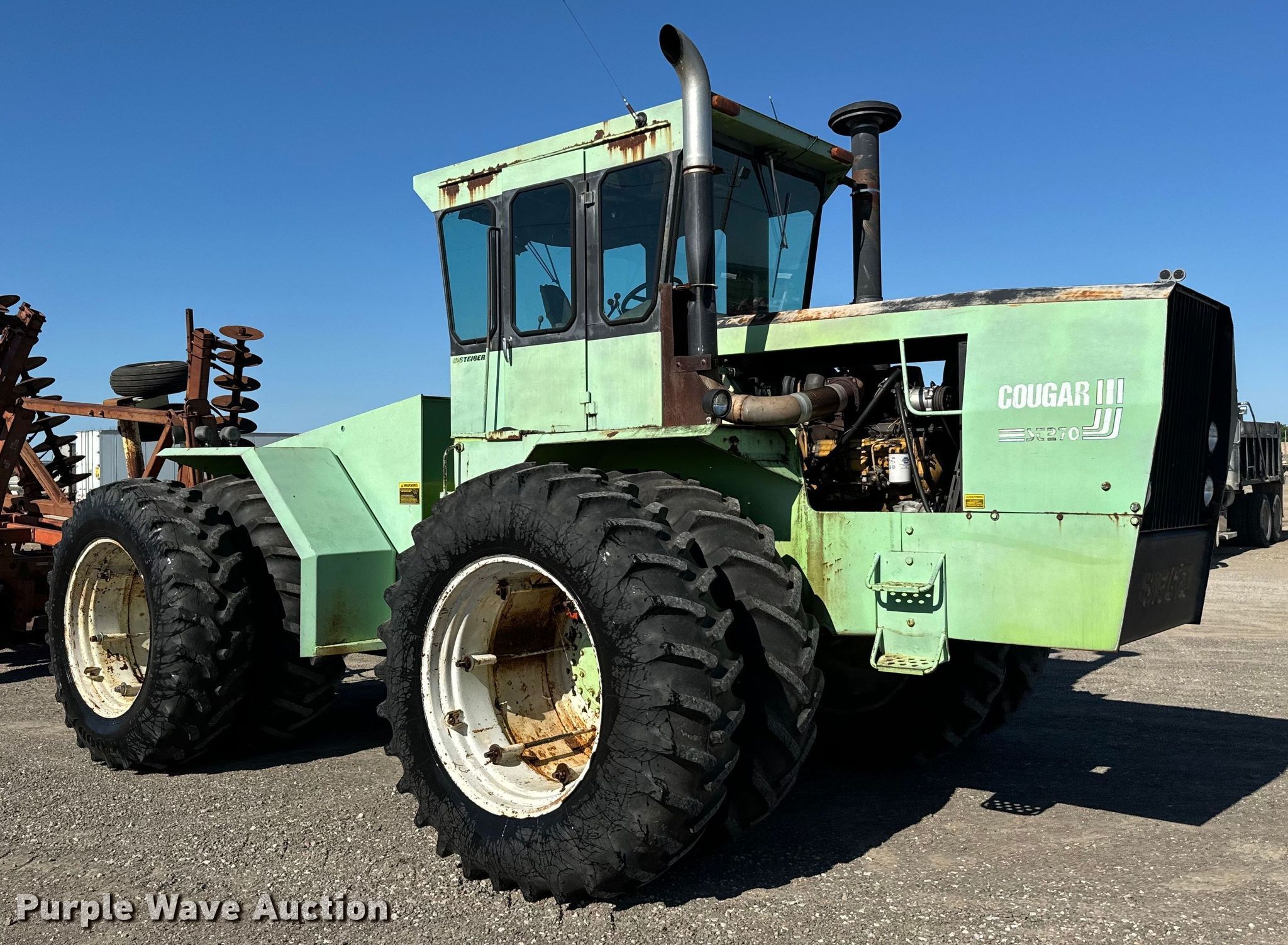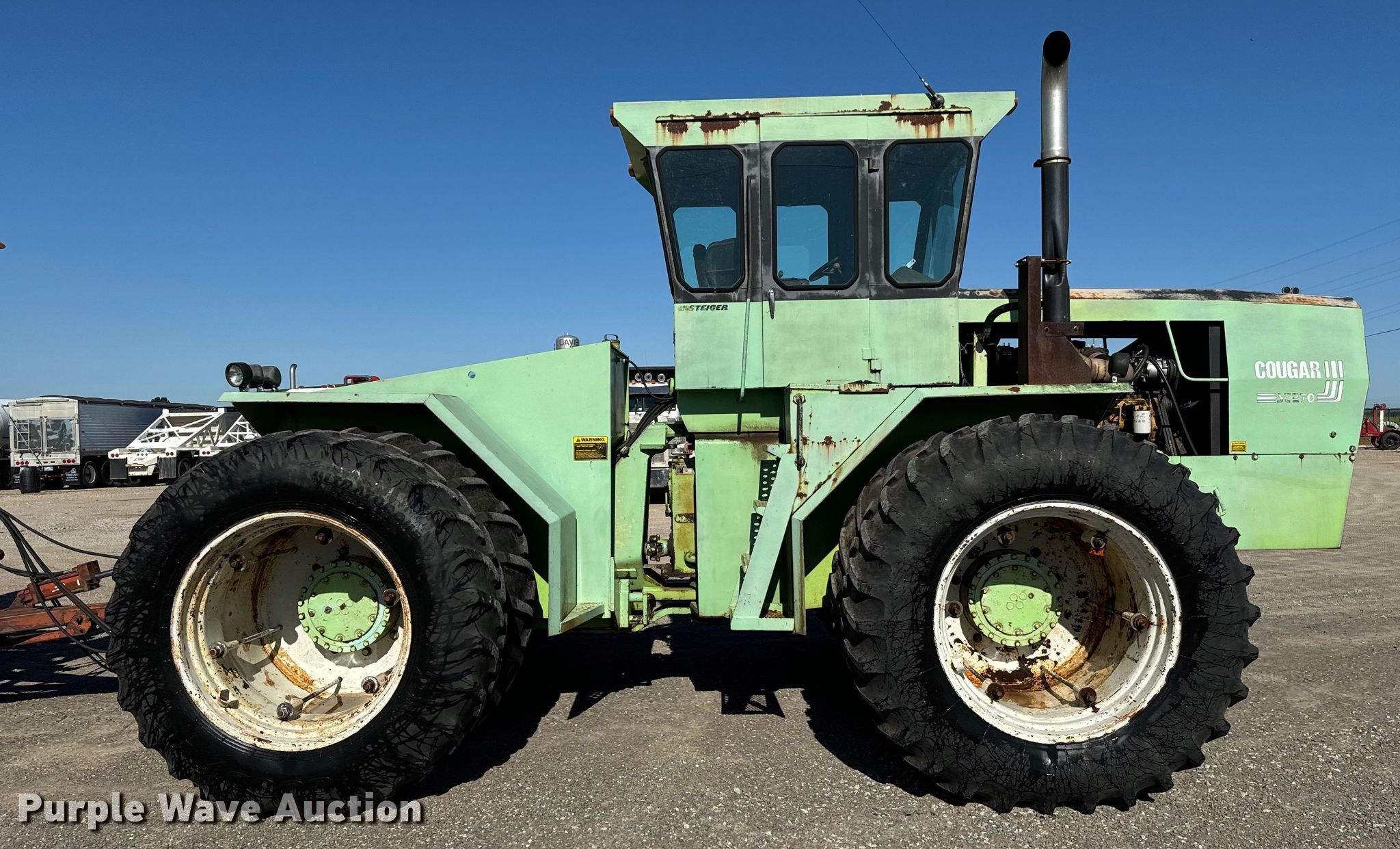 Steiger Cougar III ST270 4WD tractor. Hours: 8,777 on meter, Serial: C-1779. Engine Caterpillar 3306, Serial: 63710757, Cylinders: 6, Fuel type: Diesel. Transmission Manual, 20F - 4R. Operators station AC, Heat. Features Hydraulic remote sets Rear: 3. Tires Size: 480/80R38, Duals. Notes AC compressor issues, needs replaced. C & C Contracting Services, Inc.. Davis, OK 73030