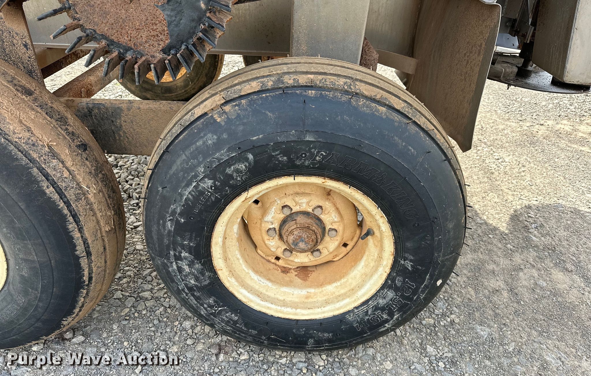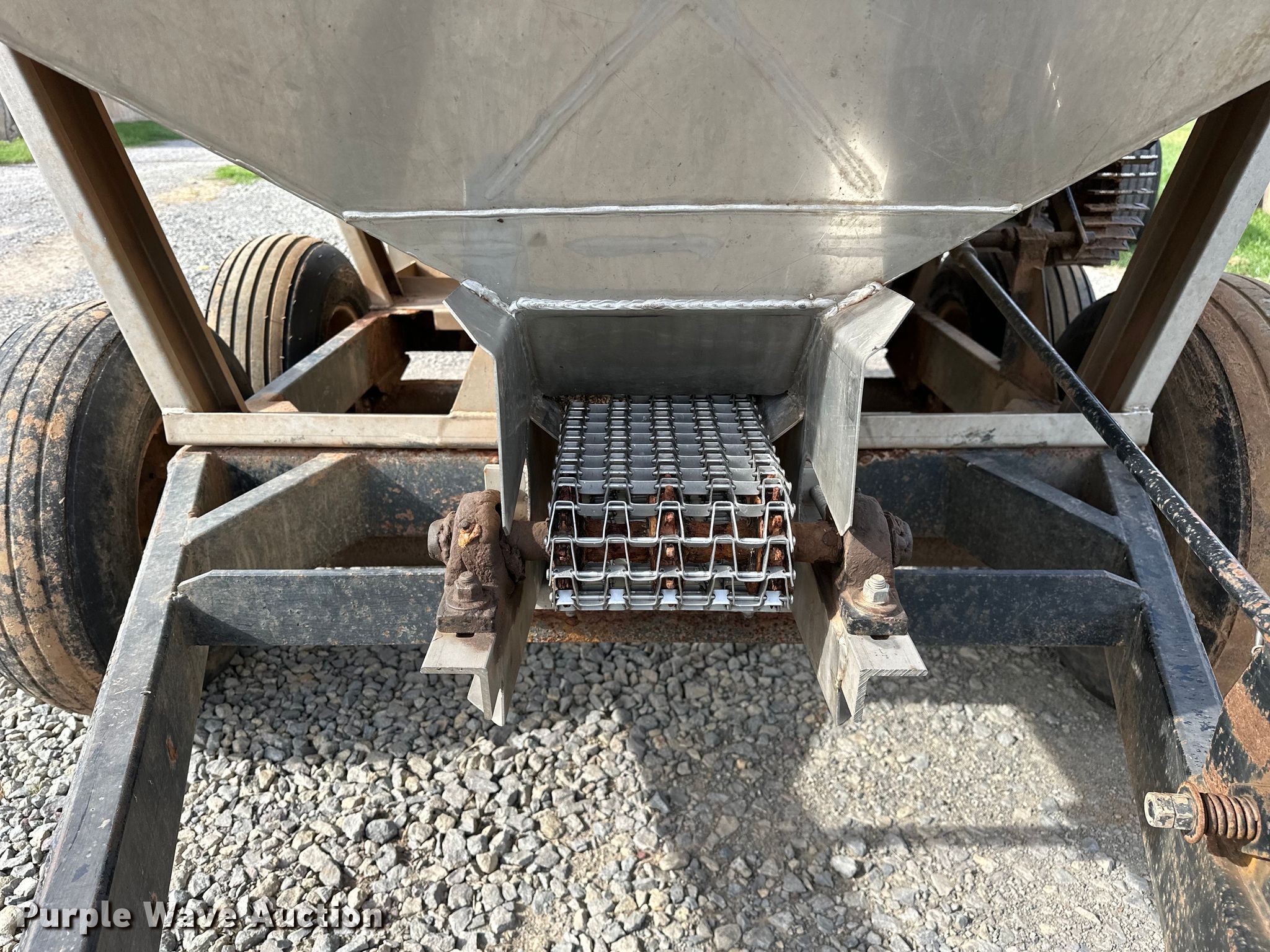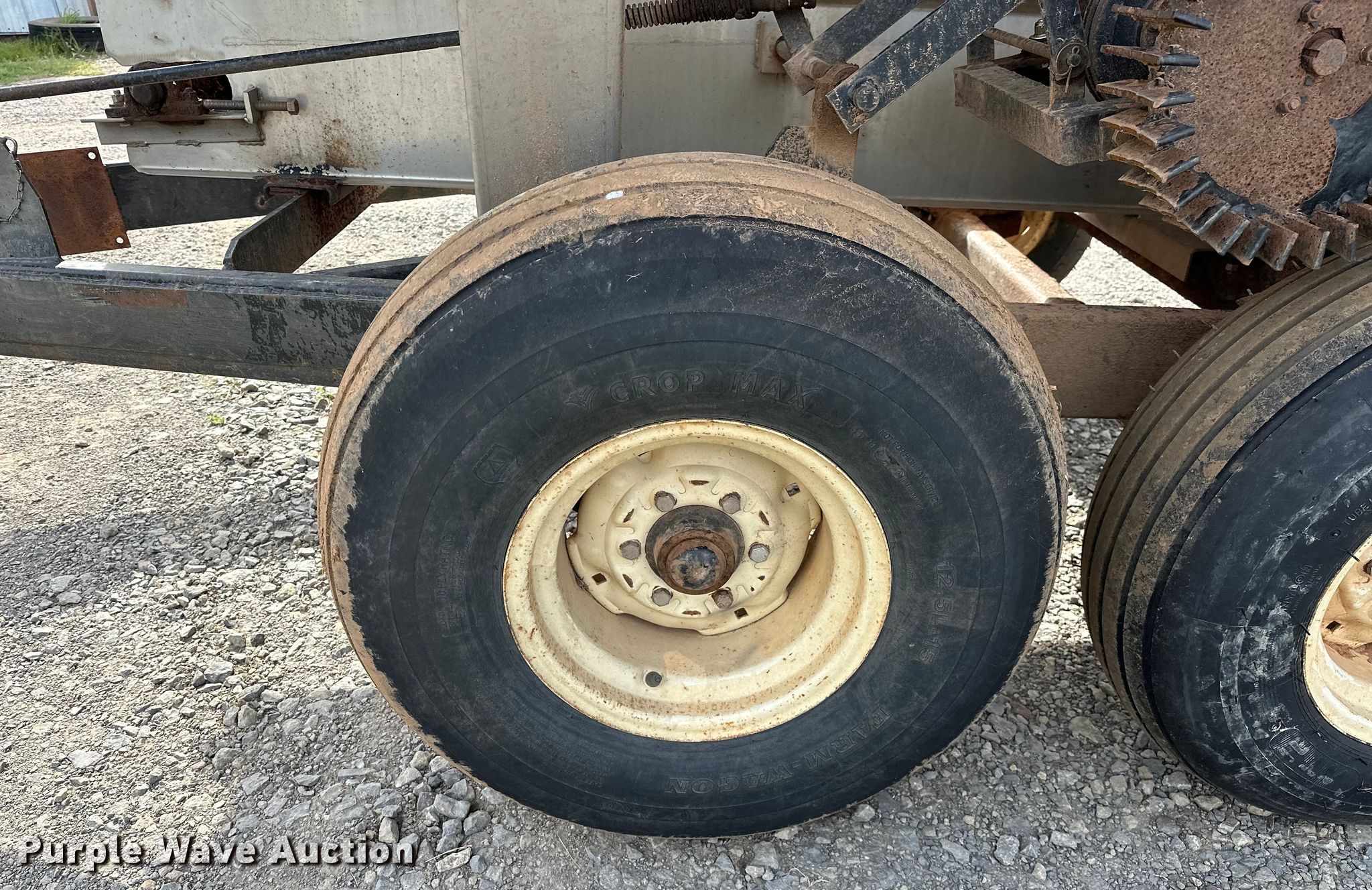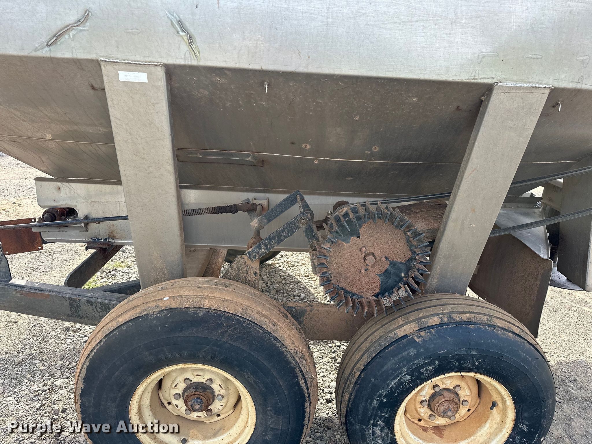 Adams spreader. Serial: 14331. Features Dry fertilizer spreader Tons capacity: 4, Stainless steel, Dual spinners, Ground driven, Conveyor belt Width: 8".. Tires Size: 12.5L-15. Cimarron Valley Coop Inc.. Perkins, OK 74059