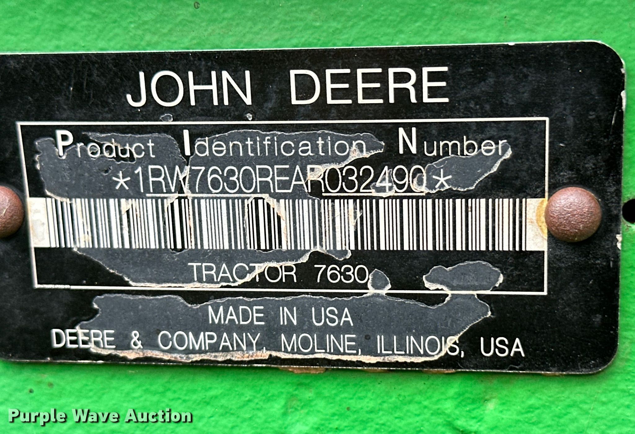 Purple Wave is selling a used Tractor in Kansas. This item is a 2010 John Deere 7630 MFWD tractor with the following: Hours: 11,779 on meter, Serial: 1RW7630REAR032490
