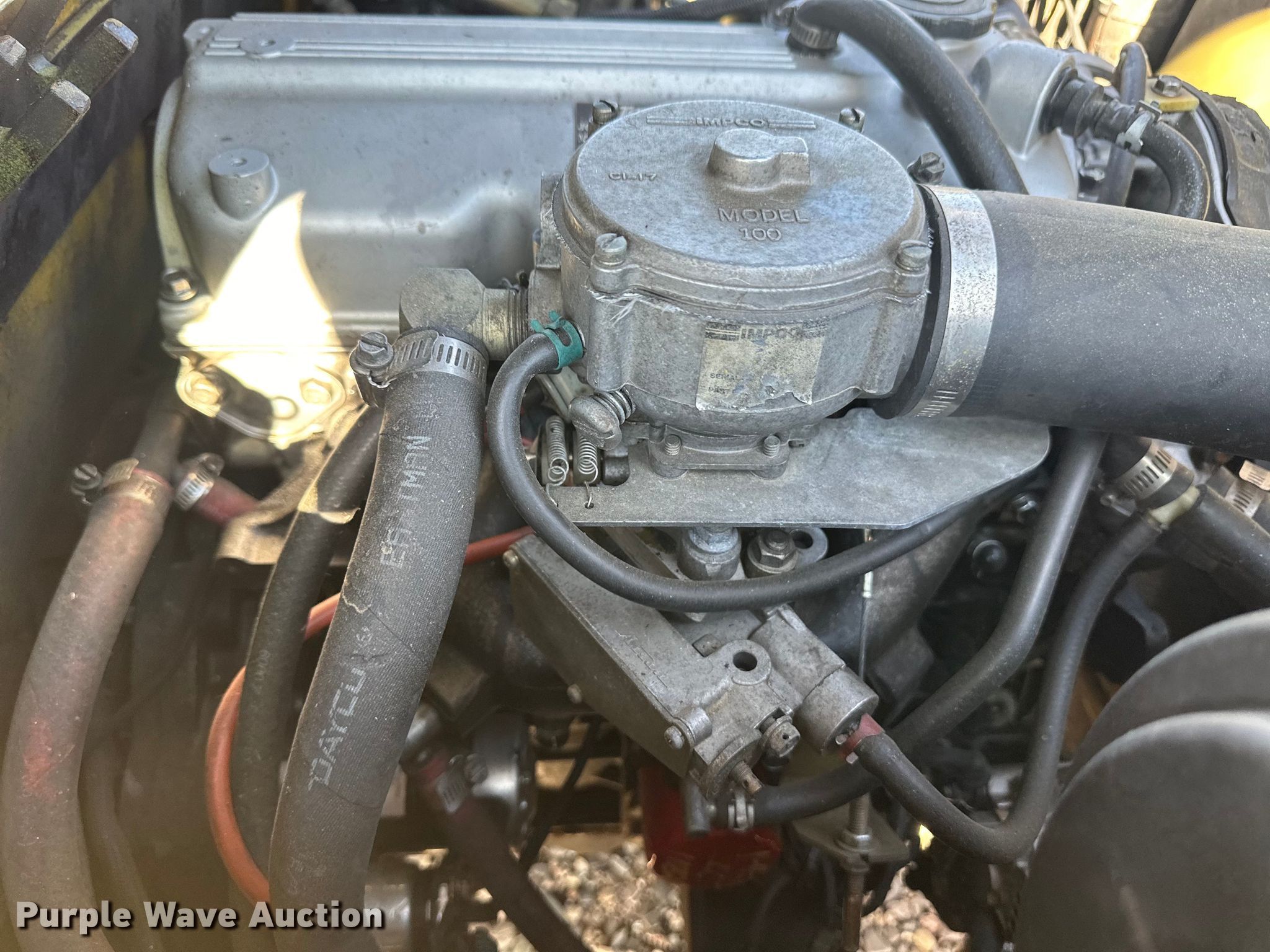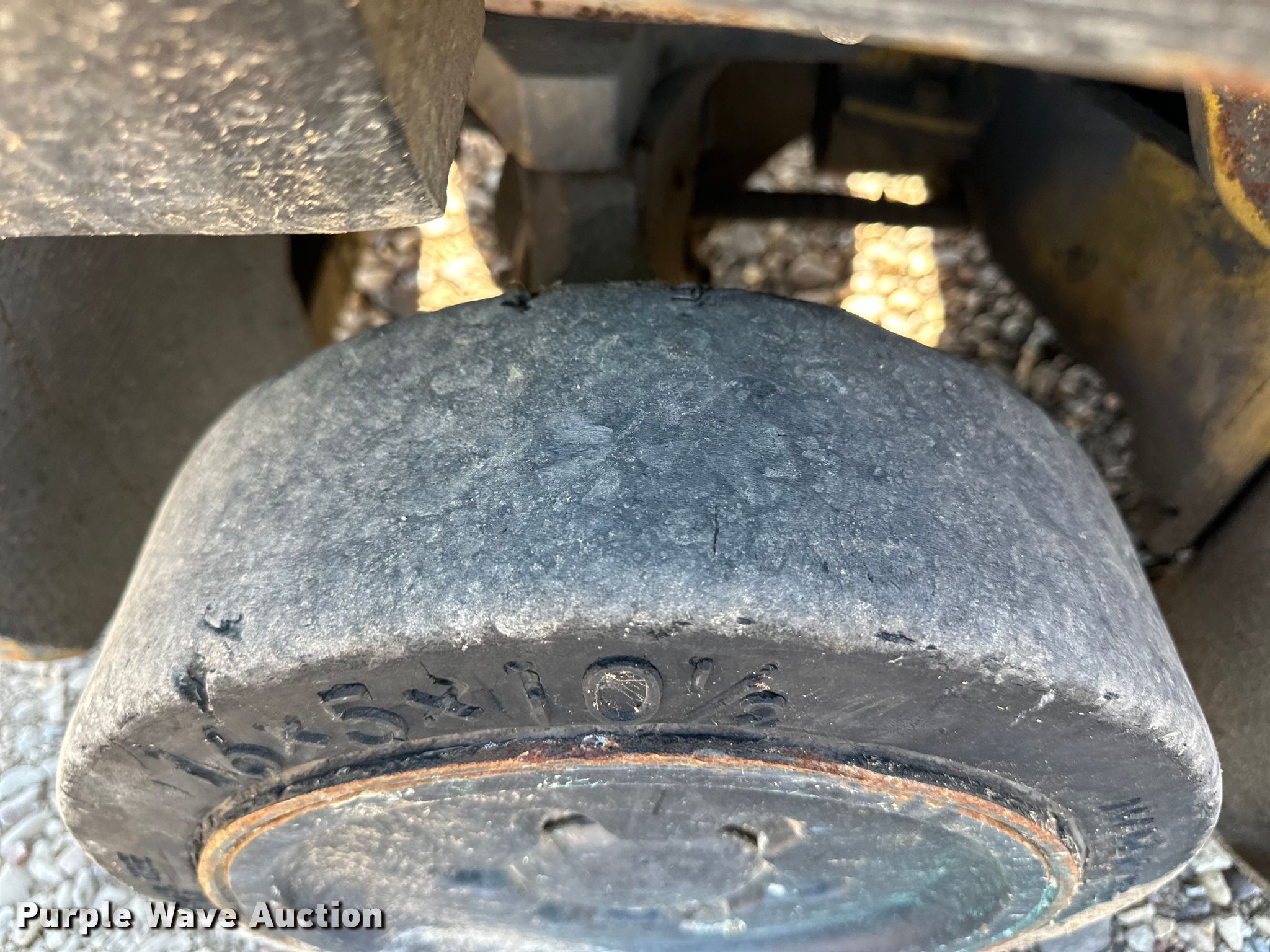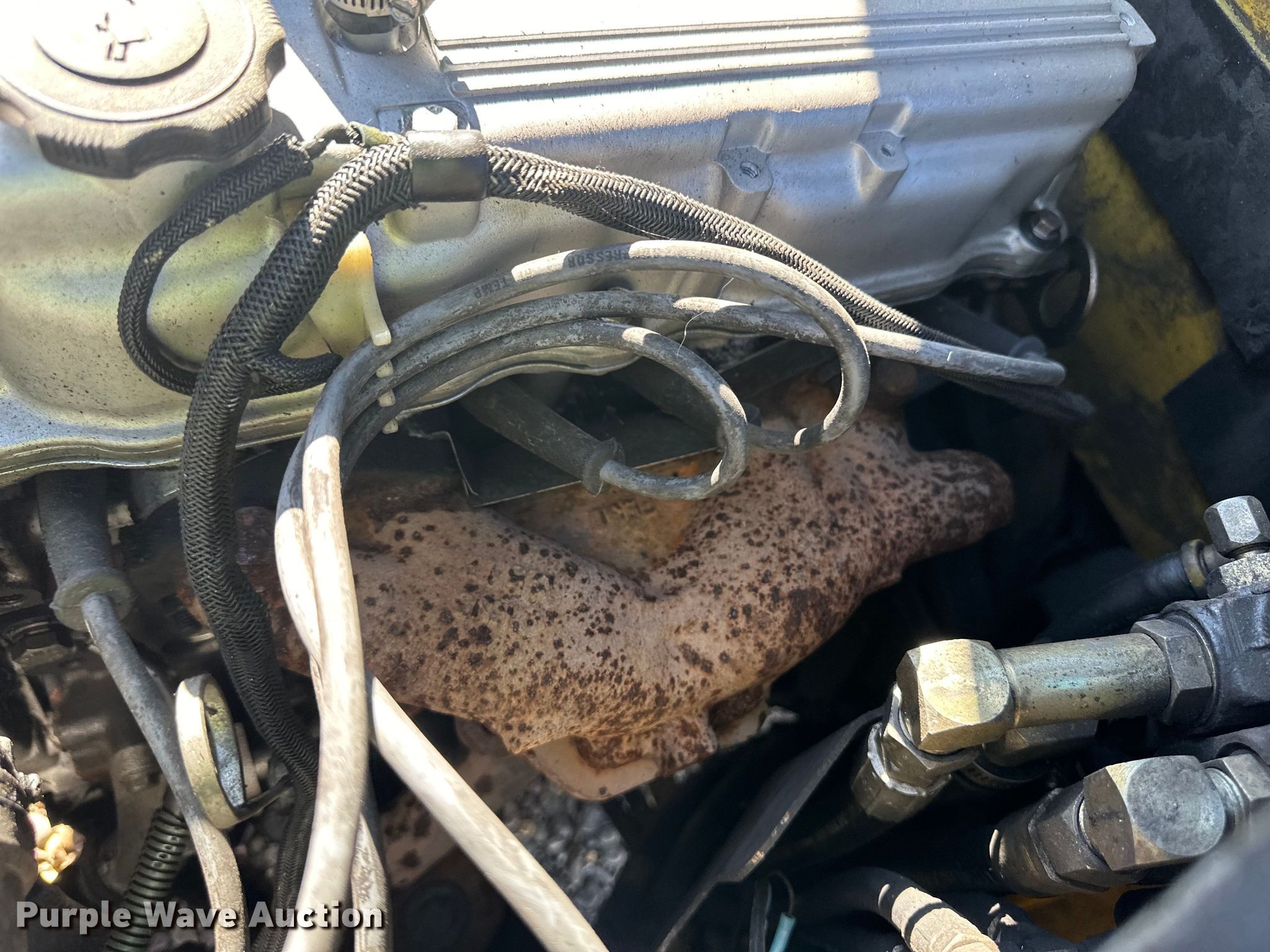 Yale GLC050TGNUAE084 forklift. Hours: Unknown, Serial: E187V07805V. Engine Mazda F2, Serial: 9572, Cylinders: 4, Fuel type: LPG LP bottle: Not included. Transmission Powershift. Operators station Canopy. Features Maximum lift capacity: 4,650 lbs, Maximum lift height: 195", Mast stages: 3, Mast tilt, Fork length: 42". Tires Front: 21x7x15, Rear: 16x5x10.5, Solid. Notes Non-operational hour meter. Peter Teichroeb. Sublette, KS 67877