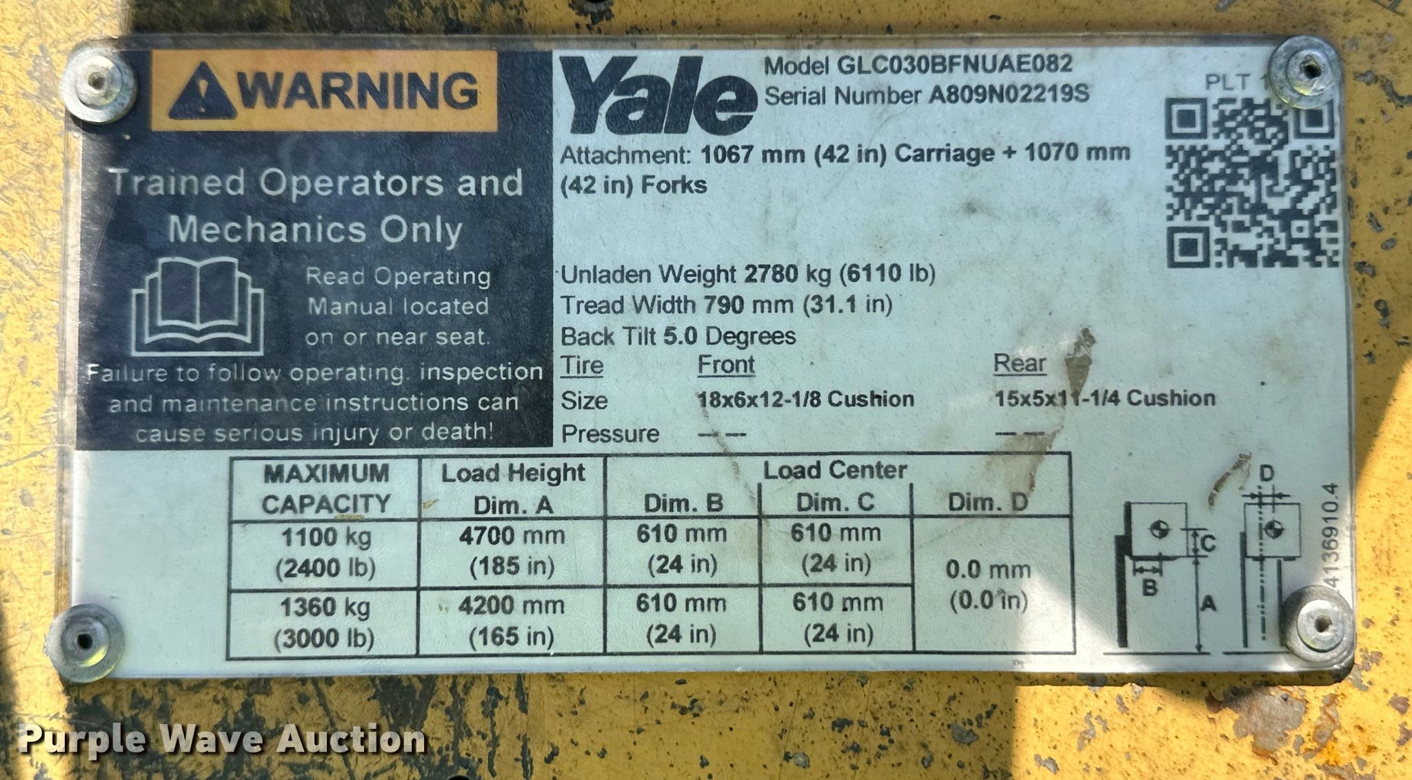 Purple Wave is selling a used Warehouse Forklift in Kansas. This item is a Yale GLC030BFNUAE082 forklift with the following: Hours: 6,180 on meter, Serial: A809N02219S