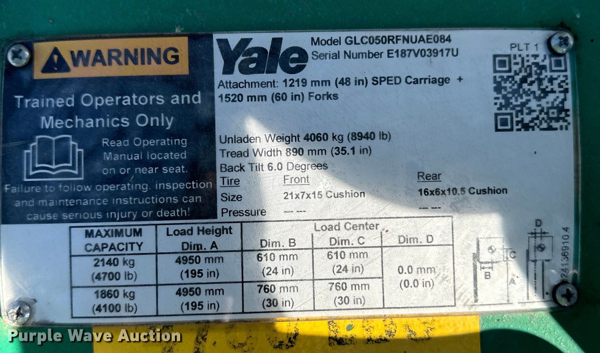 Yale GLC050RFNUAE084 forklift | SOLD! July 17 Ag Equipment Auction