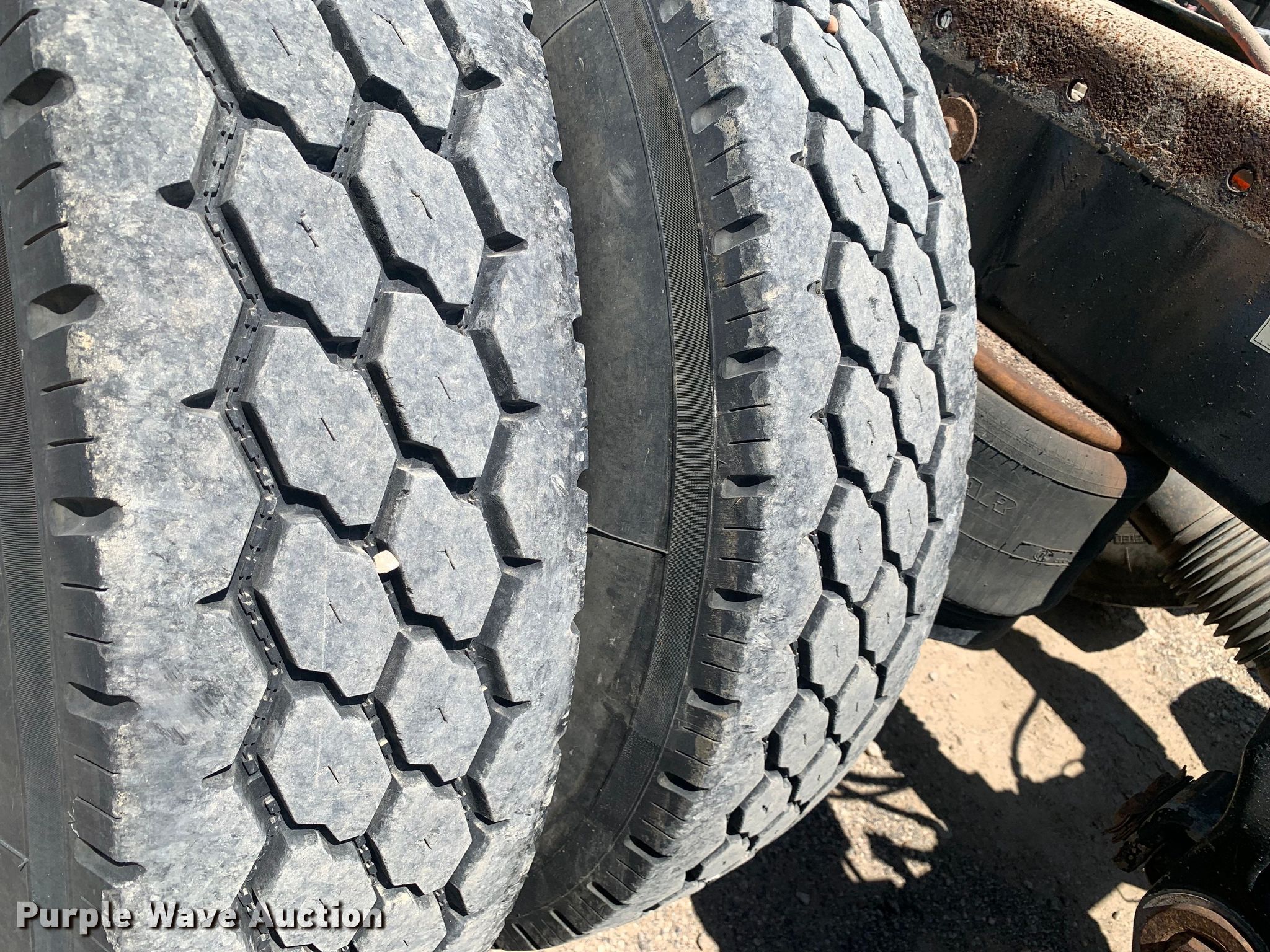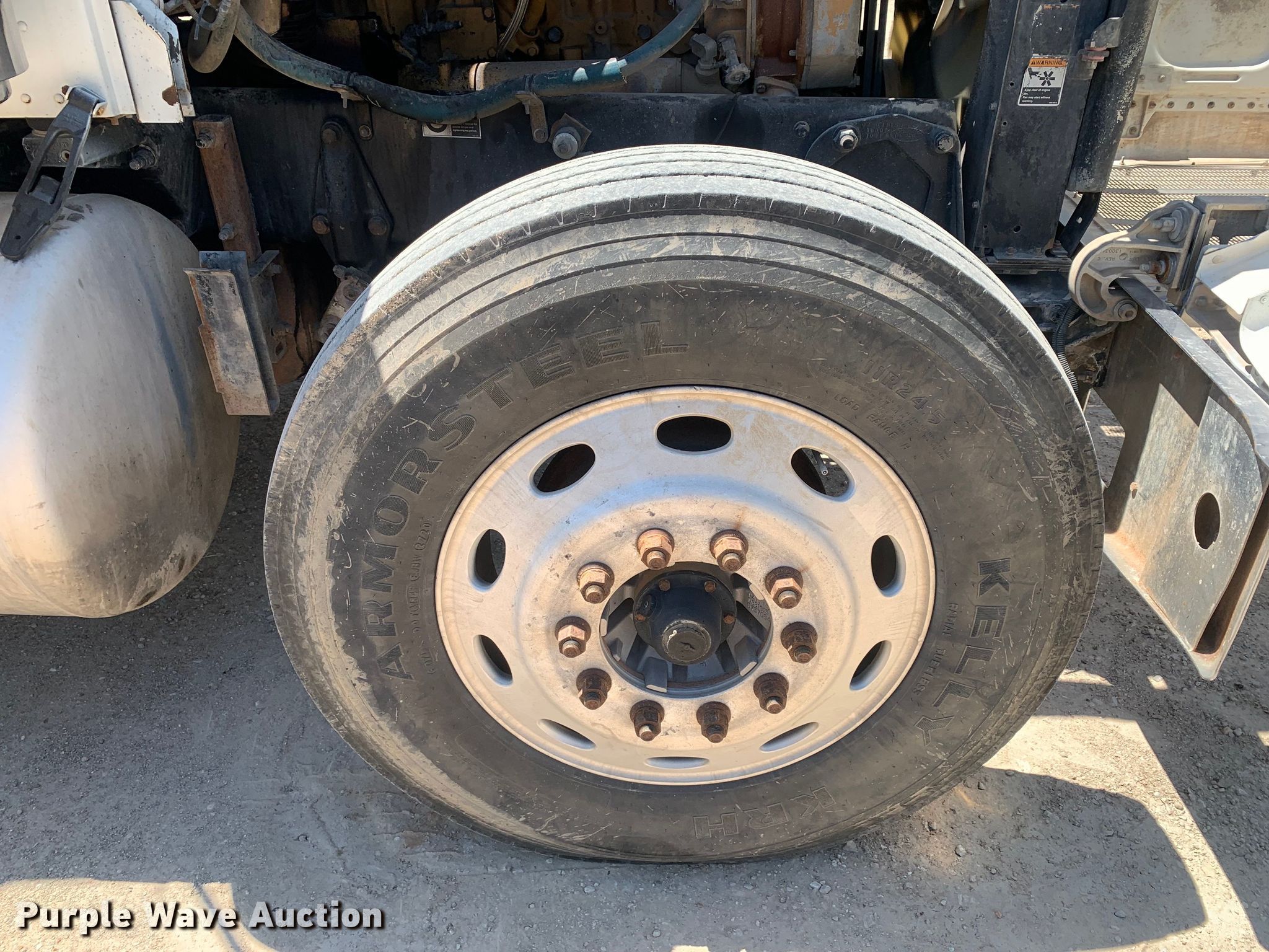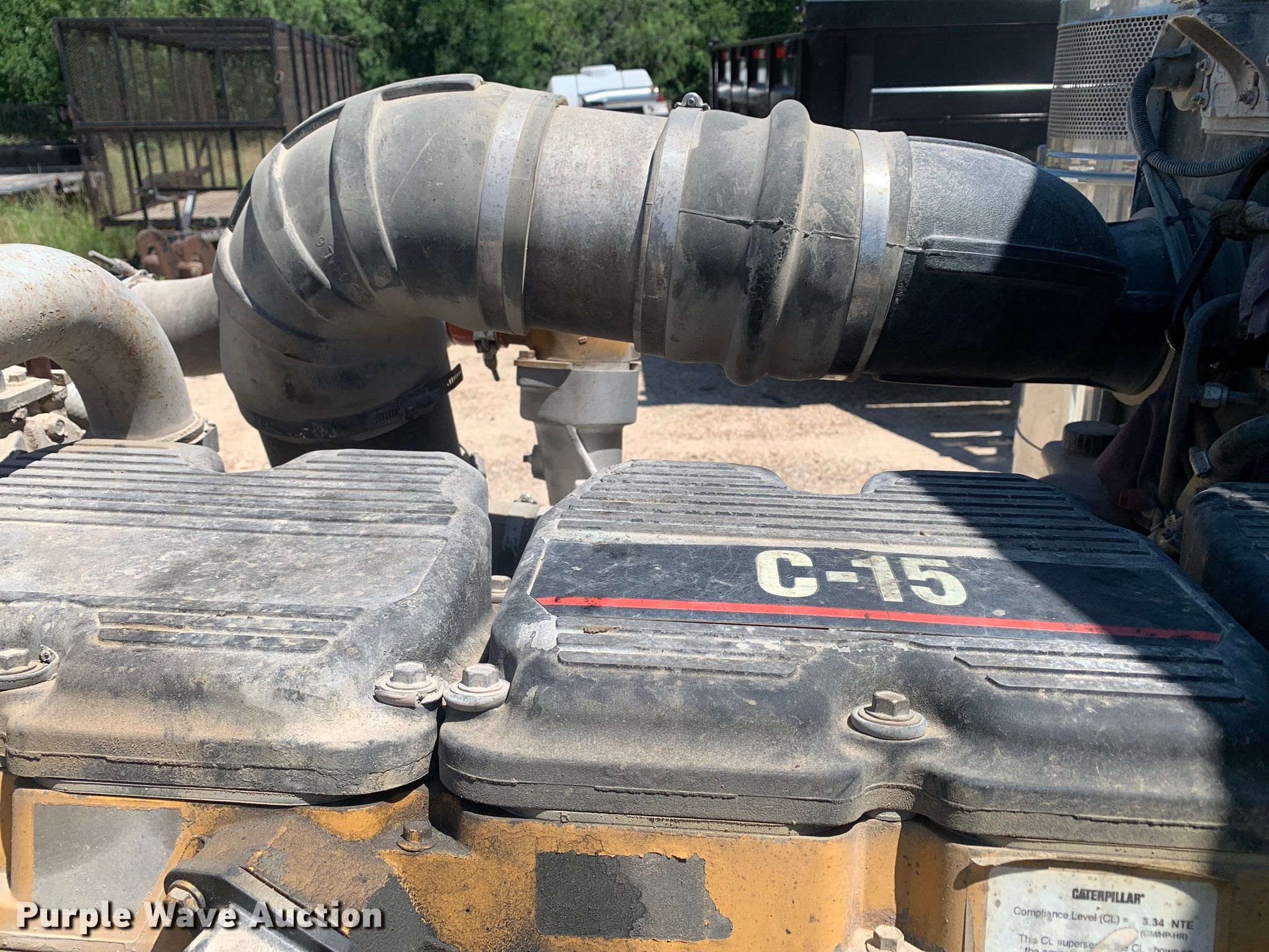 2004 Peterbilt 379 semi truck. Miles: 168,351 on odometer, VIN: 1XP5DB9X44D814266, Unit #: L2055. Engine Caterpillar C15, Displacement: 14.6L, Cylinders: 6, Fuel type: Diesel, Engine brake. Transmission Eaton Fuller, Manual, Speed: 10. Chassis Axles: Tandem, Suspension: Air Dump valves, Brakes: Air, PTO, Wet kit, Truck chassis: 12', GVWR: 50,000 lbs FAWR: 12,000 lbs, IAWR: 19,000 lbs, RAWR: 19,000 lbs. Interior AC, Heat, Heated mirrors, Cruise control, Air ride cab, Sleeper Unibilt, Sleeper length: 5' 8", Beds: Single. Features Deck plate: Aluminum, Fuel tank: Dual. Tires Size: 11R24.5. Notes Engine oil leak, Fifth wheel hitch missing. Texas title. ROC Service. Cleburne, TX 76033
