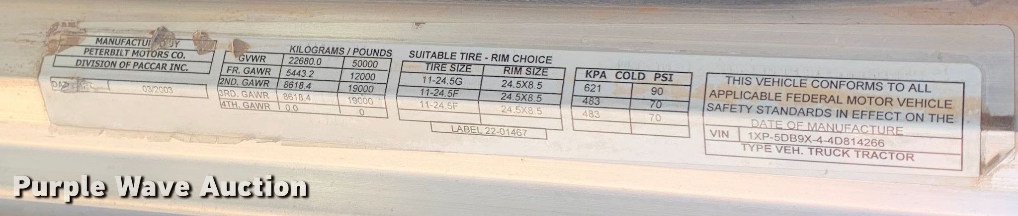 Purple Wave is selling a used Truck Tractor in Texas. This item is a 2004 Peterbilt 379 semi truck with the following: Miles: 168,351 on odometer, VIN: 1XP5DB9X44D814266, Unit #: L2055