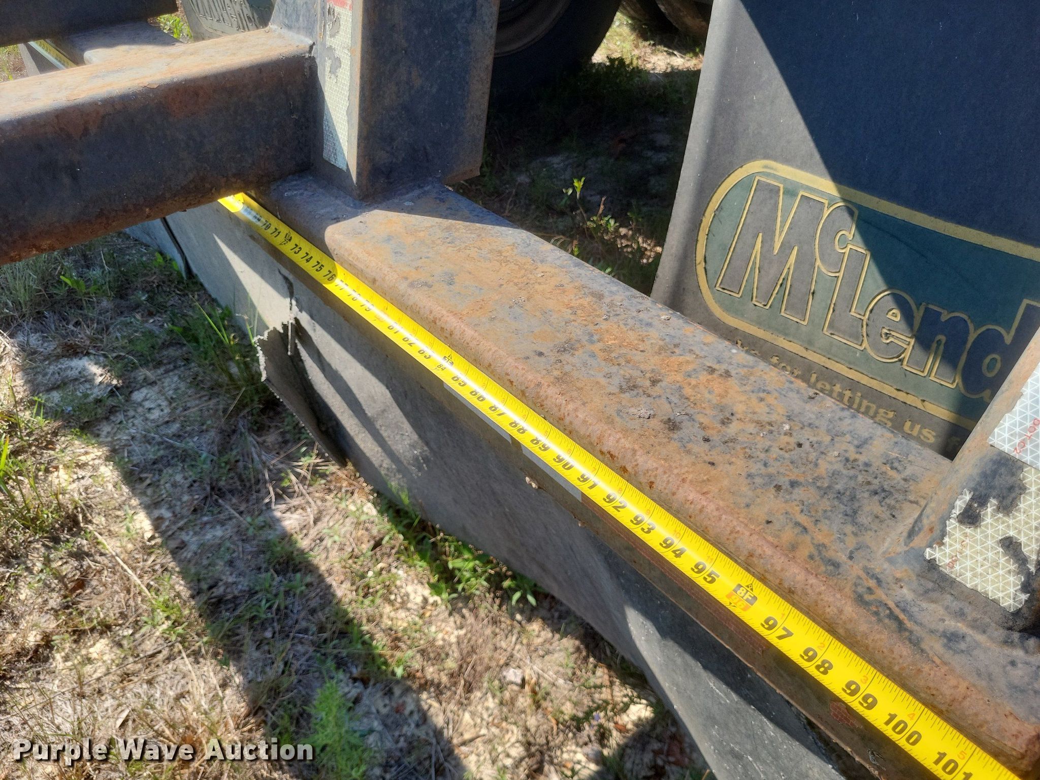 2011 McLendon log trailer. VIN: 1M9FT4022BA776098, Unit #: CC26. Dimensions Overall: 44' 4" L x 102" W, Upright height: 7'. Features Deck type: Steel. Chassis Landing gear: Dual, Suspension: Spring, Brakes: Air, Axles: Tandem, GVWR: 60,000 lbs, GAWR: 25,000 lbs. Tires Steel wheels, Size: 11R24.5. Notes 7' stake, Tire damage. Florida title. Title distribution may be delayed up to 14 days from verification of funds. Cedar Creek Logging. Northwest Odell Owens Road. Bristol, FL 32321