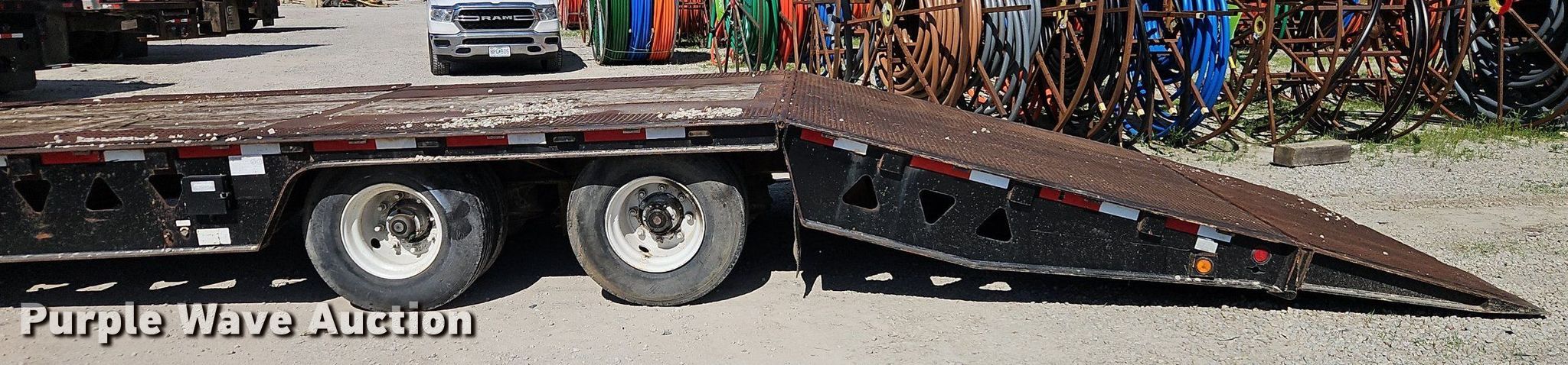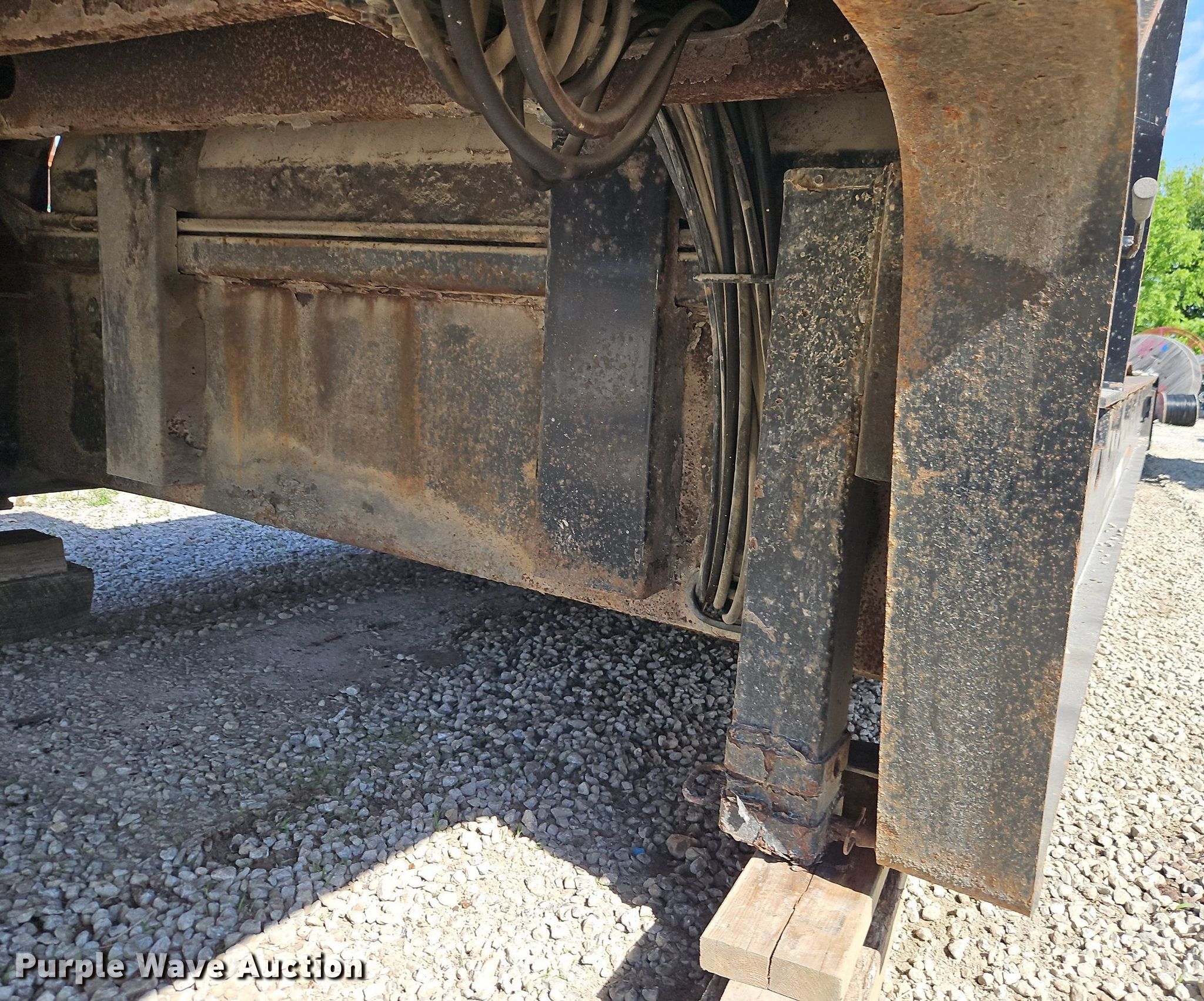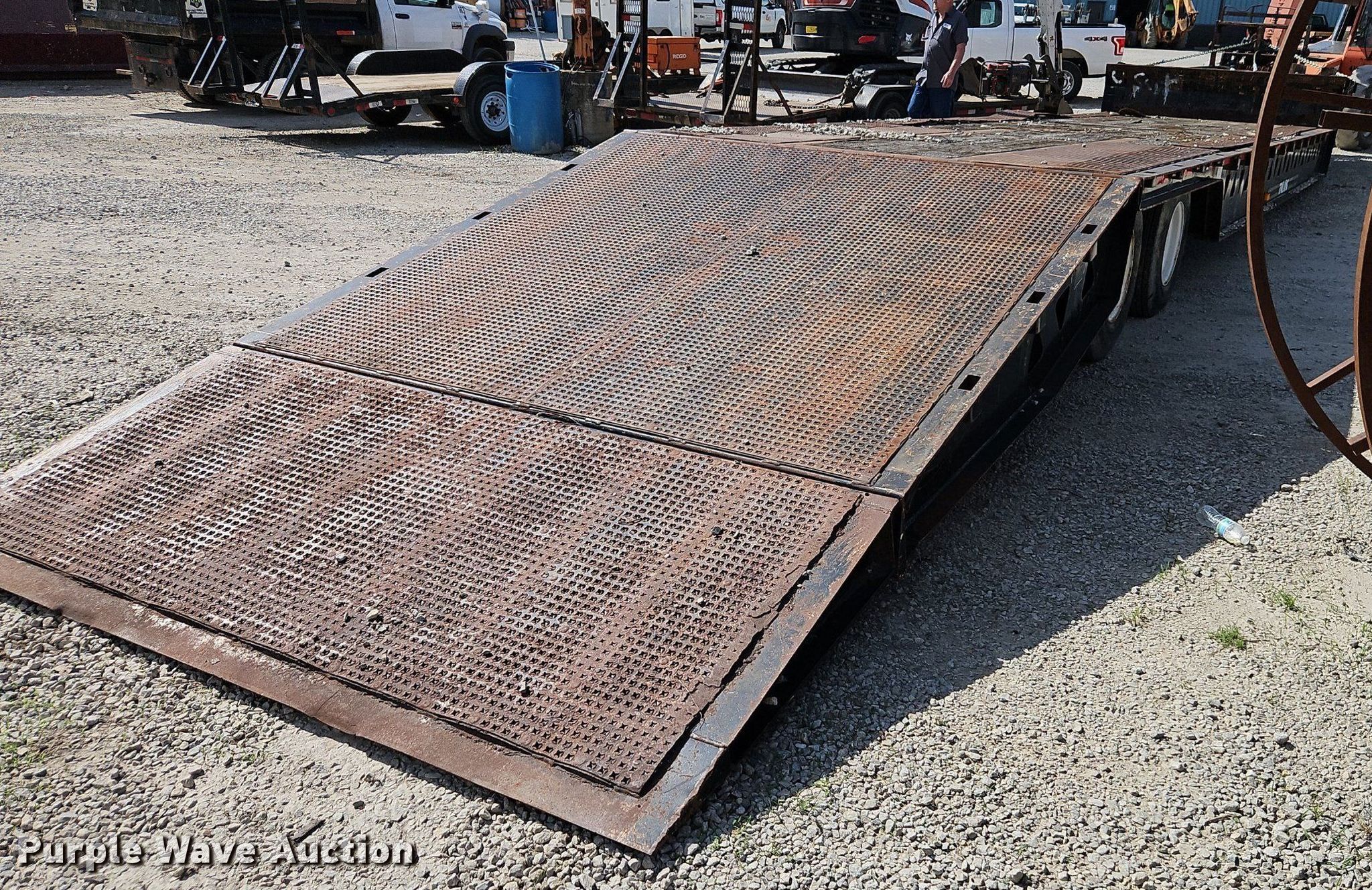 2004 Trail King TK70HT 482 drop deck equipment trailer. VIN: 1TKA048224M046647, Unit #: 215. Dimensions Overall: 52' L x 102" W, Deck: 31' L x 102" W, Top deck length: 9', Hydratail length: 12'. Features Deck type: Steel, Wood, Scales Right Weigh, Winch Braden AHU7-14, Hydraulic controls: Manual. Chassis Landing gear: Dual, Suspension: Air, Brakes: Air, Axles: Tandem, GVWR: 86,640 lbs, GAWR: 17,640 lbs. Tires Steel wheels, Size: 10R17.5. Notes Unknown operating condition of hydraulics, Possible brake issues. Kansas title. Title distribution may be delayed up to 14 days from verification of funds. K&W Underground Inc.. Olathe, KS 66062