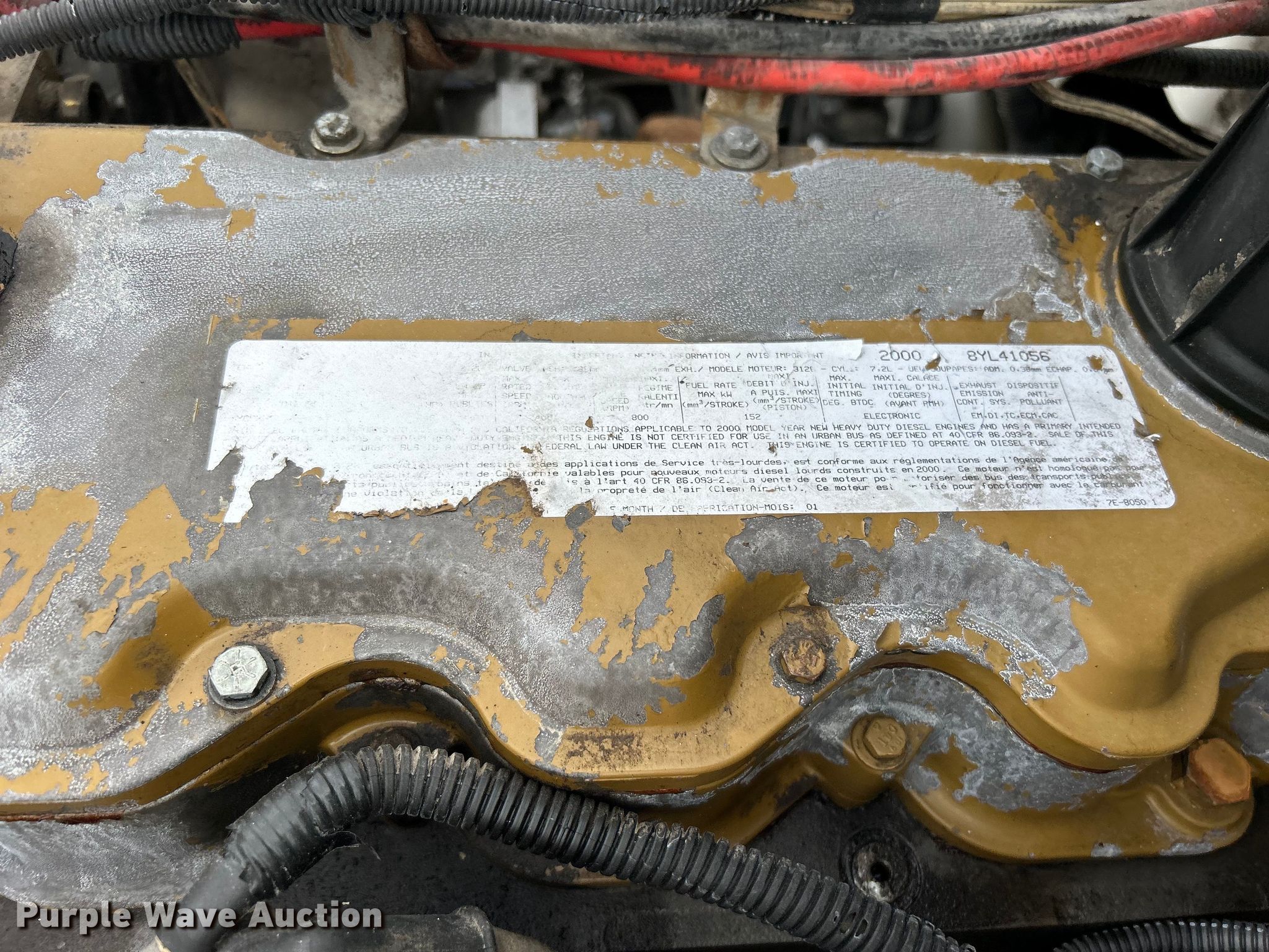 2000 Freightliner FL80 semi truck. Miles: 380,076 on odometer, Hours: 20,271 on meter, VIN: 1FUWJJCB8YHB85384. Engine Caterpillar 3128, Serial: 8YL41056, Displacement: 7.2L, Cylinders: 6, Fuel type: Diesel. Transmission Eaton Fuller, Manual, Speed: 9. Chassis Axles: Single, Suspension: Spring, Brakes: Air, GVWR: 34,700 lbs FAWR: 12,000 lbs, RAWR: 22,700 lbs. Interior AC, Heat, Heated mirrors, Cruise control, Air ride cab. Features Deck plate: Aluminum, Fifth wheel type: Fixed, Fuel tank: Dual. Tires Size: 295/75R22.5. Notes Dash warning indicator: Check engine. Oklahoma title. 15107 North 137th East Avenue. Collinsville, OK 74021