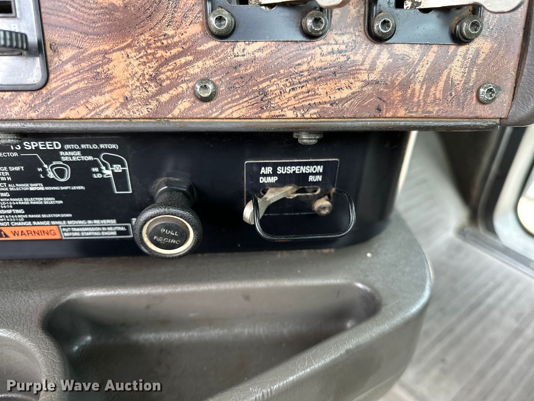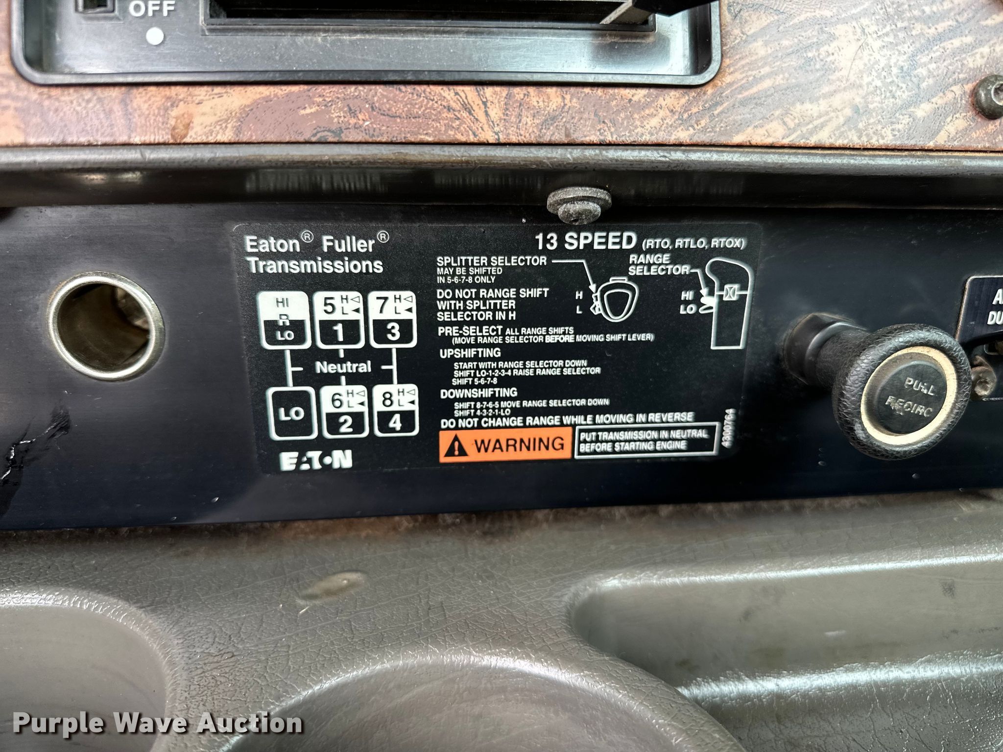 1999 International 9200 semi truck. Miles: 908,408 on odometer, Hours: 22,678 on meter, VIN: 2HSFMAXR1XC066141. Engine Caterpillar C12, Displacement: 12.0L, Cylinders: 6, Fuel type: Diesel. Transmission Eaton Fuller, Manual, Speed: 13. Chassis Axles: Tandem, Differential lock: Inter-axle, Suspension: Air Dump valves, Brakes: Air, PTO, Wet kit, GVWR: 52,000 lbs FAWR: 12,000 lbs, RAWR: 20,000 lbs. Interior AC, Heat, Heated mirrors, Power windows, Cruise control. Features Deck plate: Aluminum, Fifth wheel type: Air operated, Sliding, Fuel tank: Dual. Tires Size: 285/75R24.5. Notes Windshield chipped or cracked. Oklahoma title. Collinsville, OK 74021