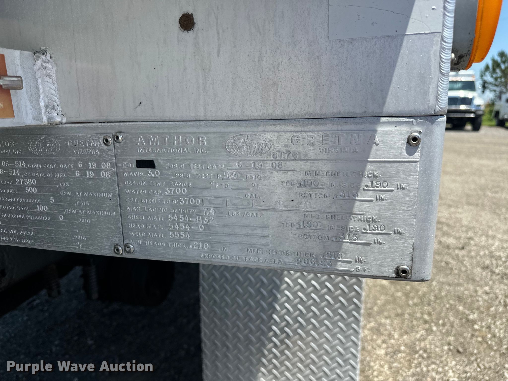2009 Peterbilt 340 tank truck. Miles: 208,590 on odometer, Hours: 3,009 on meter, VIN: 2NPRLN9X59M778573. Engine Paccar PX-8, Serial: 46880460, Displacement: 8.3L, Cylinders: 6, Fuel type: Diesel, HP: 330. Transmission Eaton Fuller, Manual, Speed: 10. Chassis Axles: Tandem, Differential lock: Full, Suspension: Air Dump valves, Brakes: Air, PTO, GVWR: 56,000 lbs. Interior AC, Heat, Heated mirrors, Power windows, Cruise control. Features Bed / tank Amthor 8T70, Capacity: 3,700 gallons, 17' 6" L x 96" W, Rear drain: 5". Tires Front: 315/80R22.5, Rear: 11R22.5. Notes Windshield chipped or cracked. Oklahoma title. 15107 North 137th East Avenue. Collinsville, OK 74021