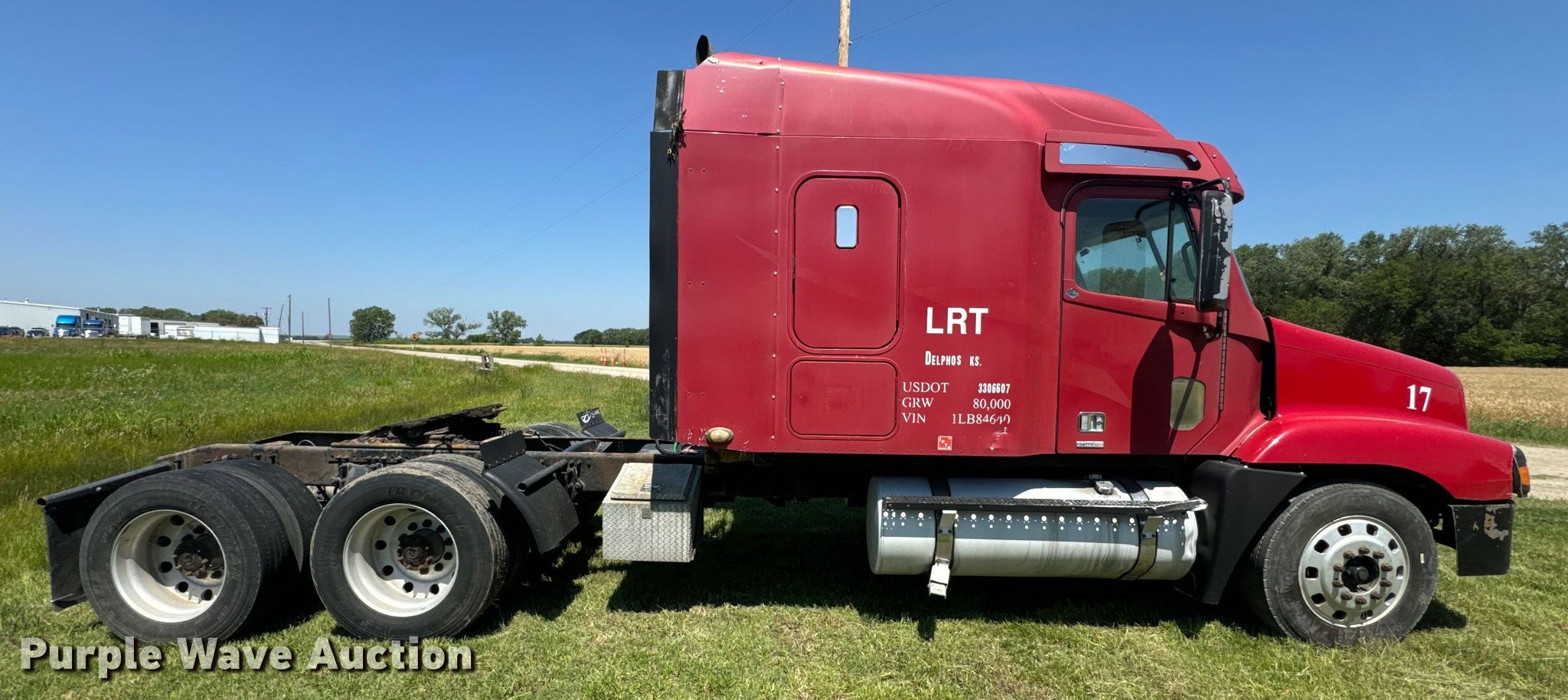 Purple Wave is selling a used Truck Tractor in Kansas. This item is a 2001 Freightliner CST120 semi truck with the following: Miles: 1,602,131 on odometer, Hours: 55,179 on meter, VIN: 1FUY0SZB11LB84640