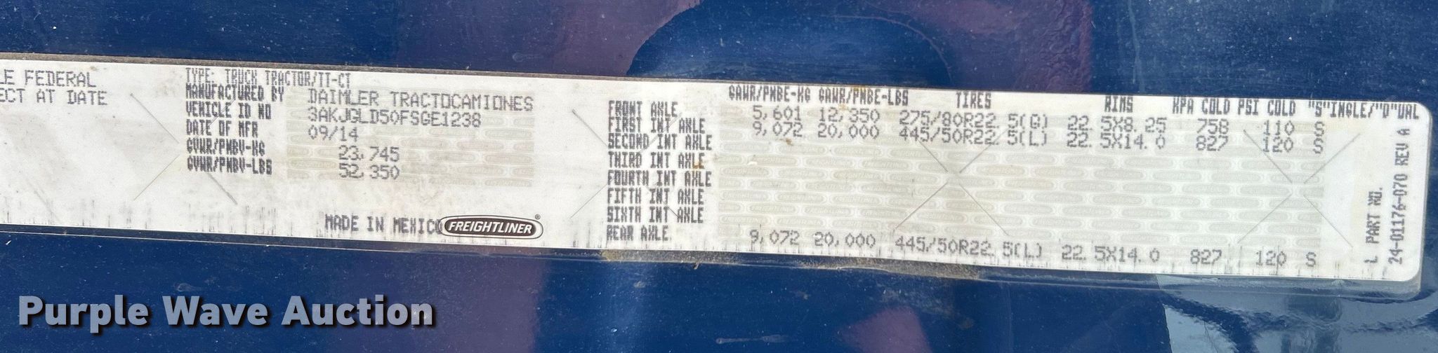 - VIN: 3AKJGLD50FSGE1238