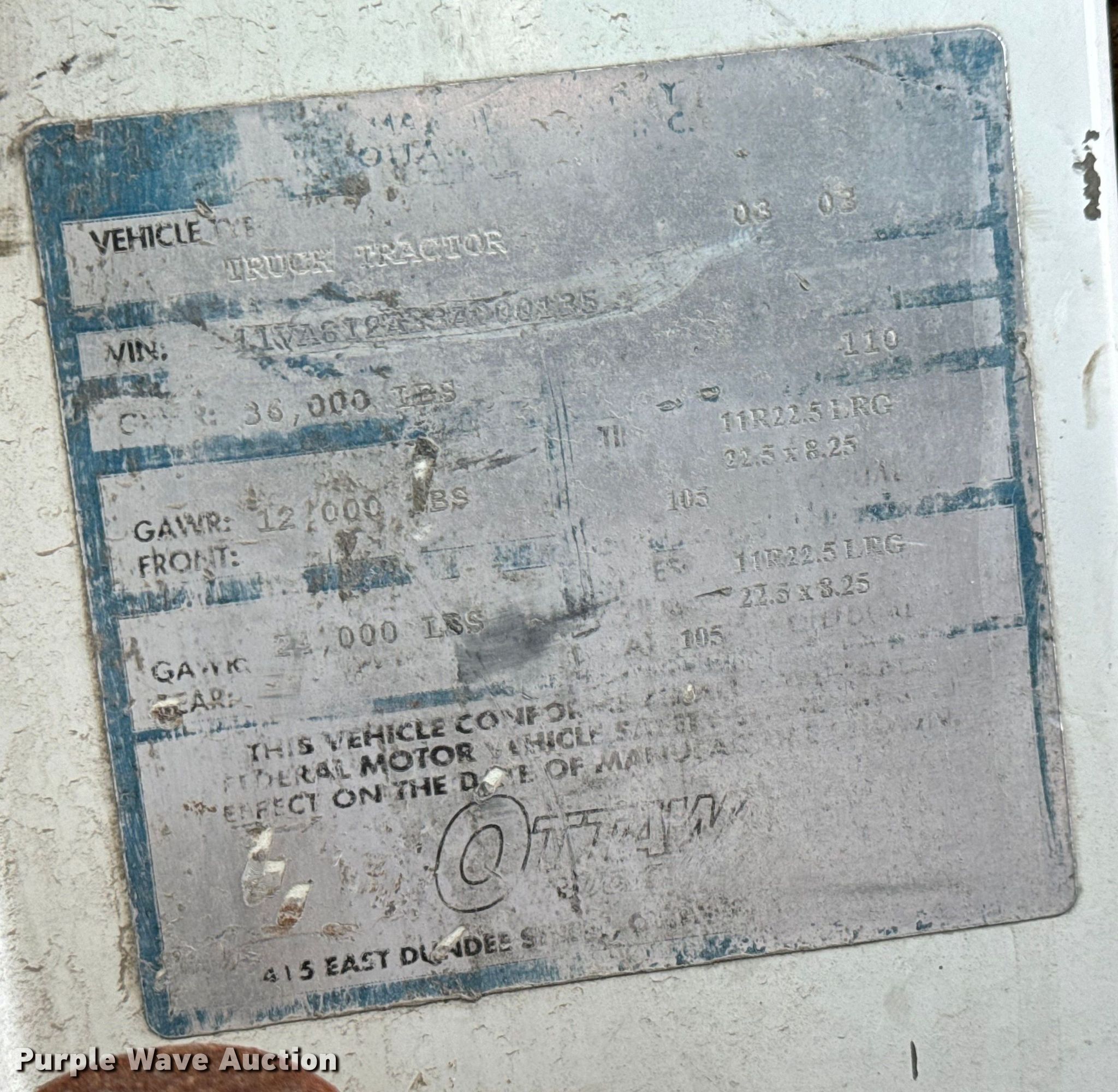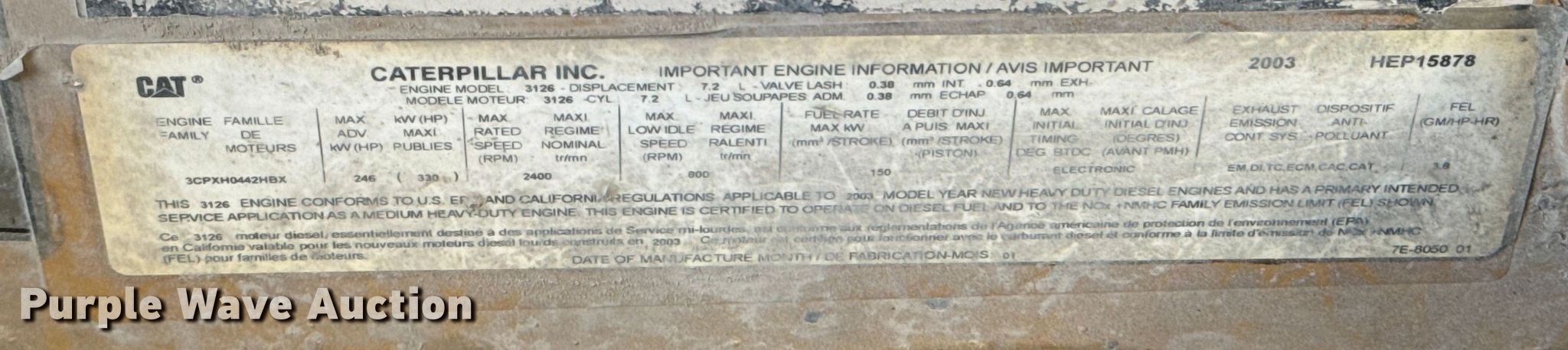 2003 Ottawa Truck 30 yard truck. Miles: 136,772 on odometer, Hours: 9,250 on meter. Engine Caterpillar 3126, Displacement: 7.2L, Cylinders: 6, Fuel type: Diesel. Transmission Automatic. Chassis Axles: Single, Brakes: Air, GVWR: 36,000 lbs FAWR: 12,000 lbs, RAWR: 24,000 lbs. Interior Heat. Features Deck plate: Steel, Fifth wheel type: Hydraulic lift. Tires Size: 11R22.5. Kansas title. Blackrock Logistics & Support. 8515 North Hesston Road. Hesston, KS 67062