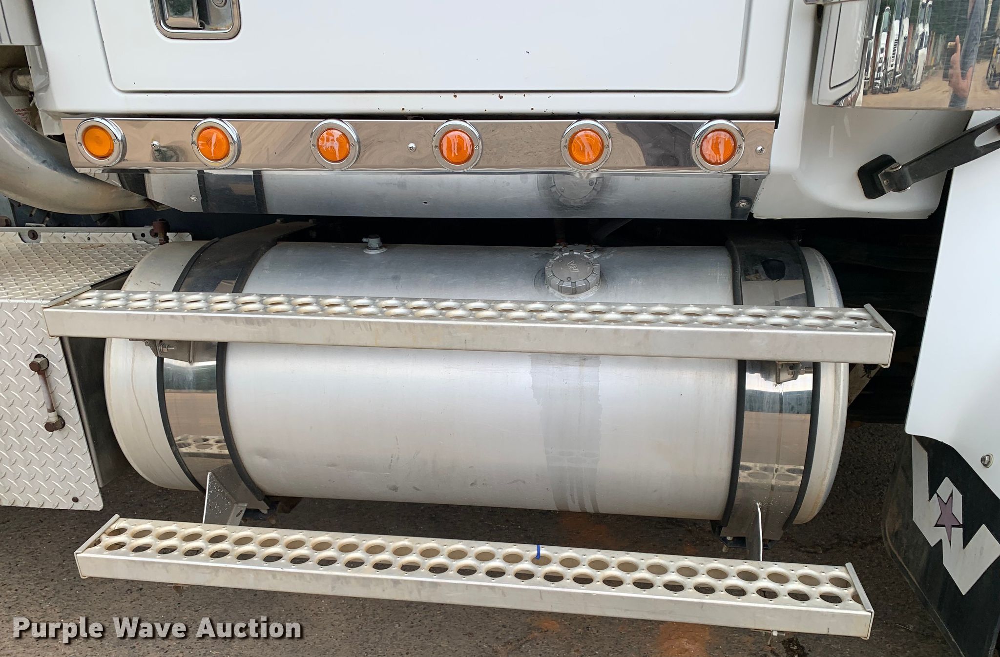 2004 Western Star 4900FA semi truck. Miles: 401,120 on odometer, Hours: 19,131 on meter, VIN: 5KJNAEAV14PM89941, Unit #: 295. Engine Caterpillar C15, Displacement: 15.L, Cylinders: 6, Fuel type: Diesel. Transmission Eaton Fuller, Manual, Speed: 18. Chassis Axles: Triple, Pusher axle, Differential lock: Full, Suspension: Air Dump valves, Brakes: Air, PTO, Wet kit, GVWR: 71,210 lbs FAWR: 12,860 lbs, IAWR: 23,000 lbs, RAWR: 23,000 lbs, Lift axle GAWR: 12,350 lbs. Interior AC, Heat, Heated mirrors, Power windows, Power locks, Cruise control, Air ride cab. Features Deck plate: Aluminum, Fifth wheel type: Air operated, Sliding, Fuel tank: Dual. Tires Size: 11R24.5, Lift axle: 295/75R22.5. Notes Windshield chipped or cracked. Texas title. Title distribution may be delayed up to 14 days from verification of funds. Tatum Excavating Company. Texarkana, TX 75501