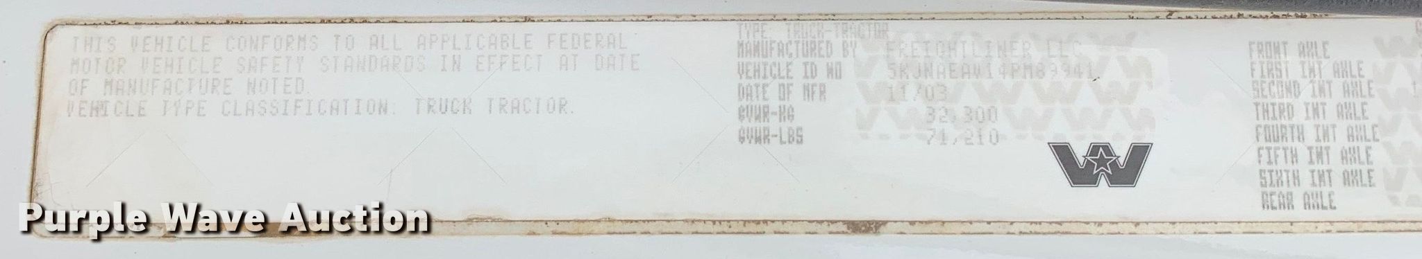 Purple Wave is selling a used Truck Tractor in Texas. This item is a 2004 Western Star 4900FA semi truck with the following: Miles: 401,120 on odometer, Hours: 19,131 on meter, VIN: 5KJNAEAV14PM89941, Unit #: 295