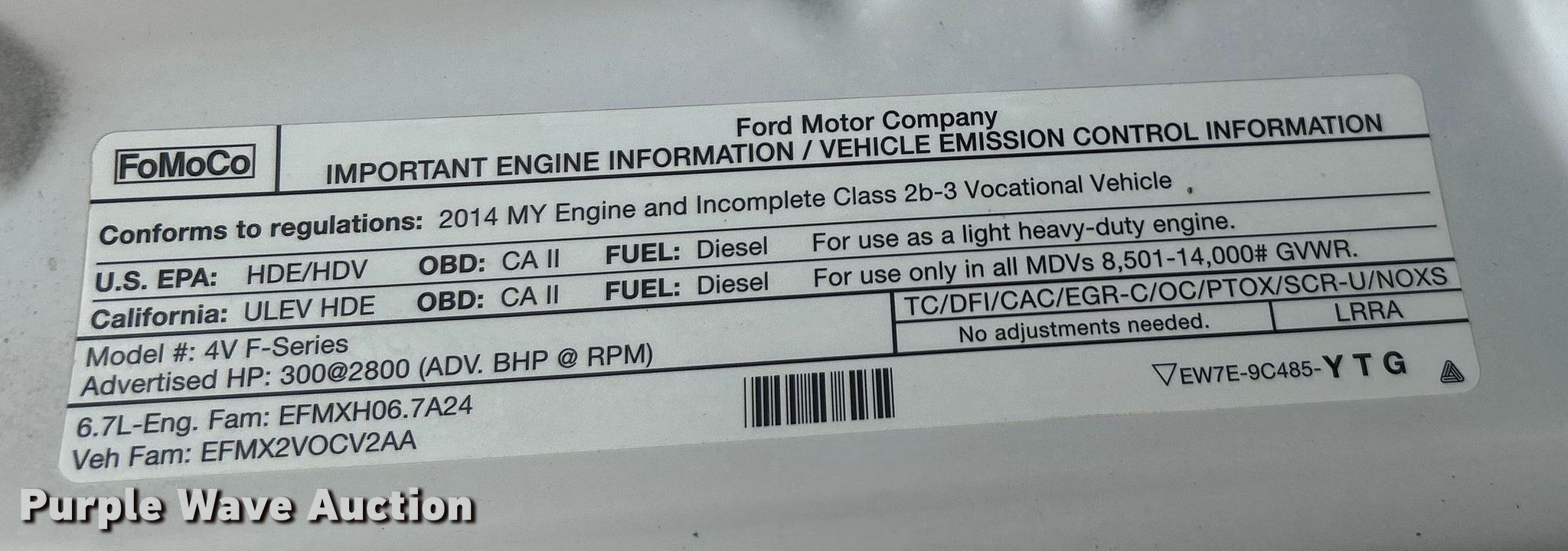 - VIN: 1FD7W3FT1EEB27037
