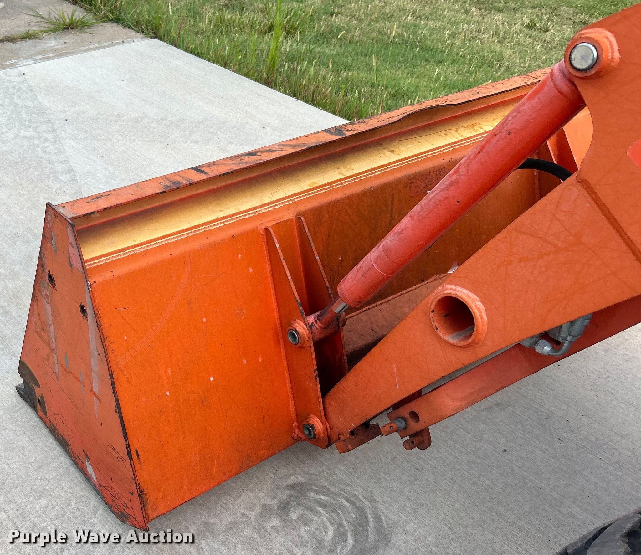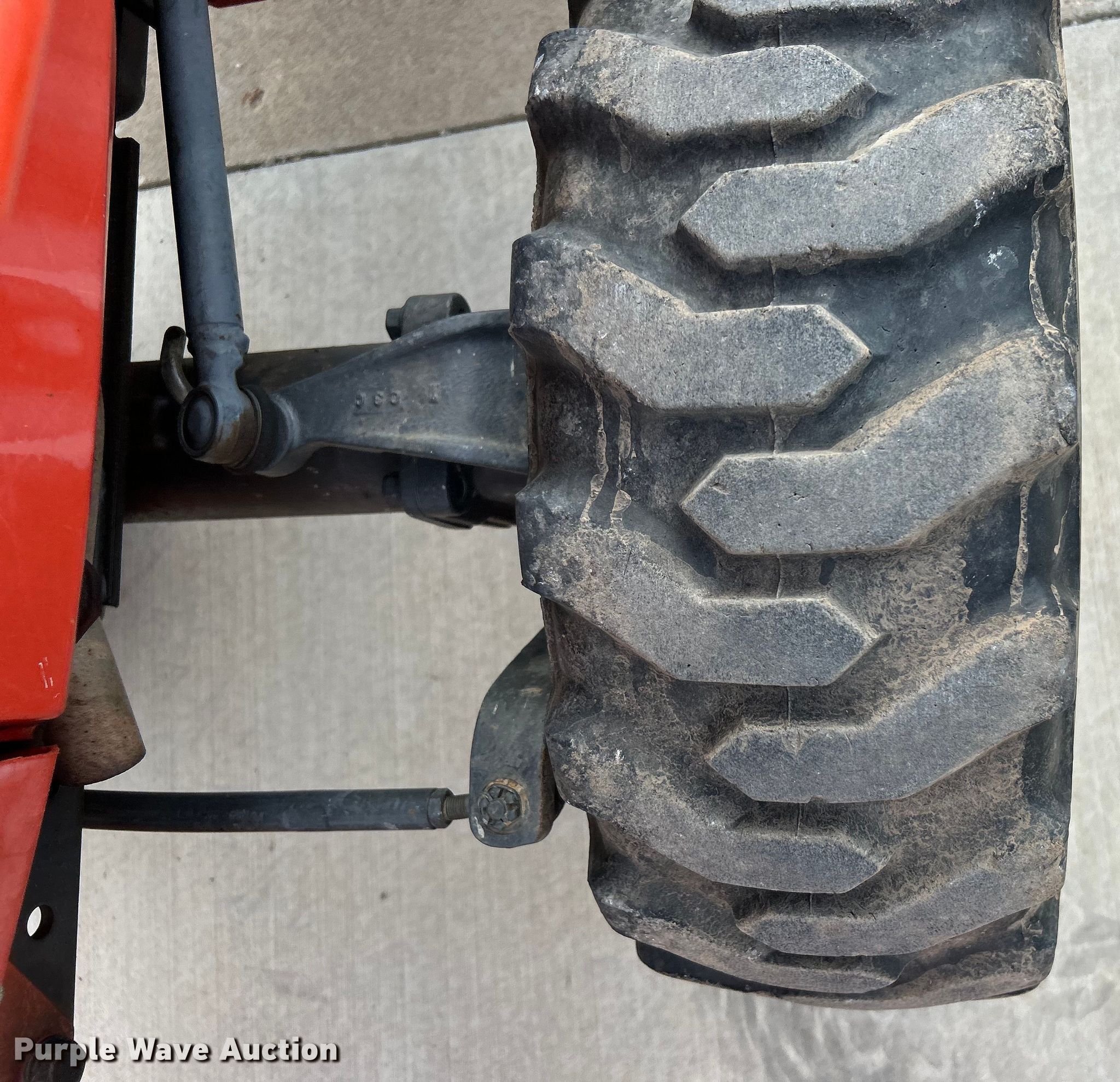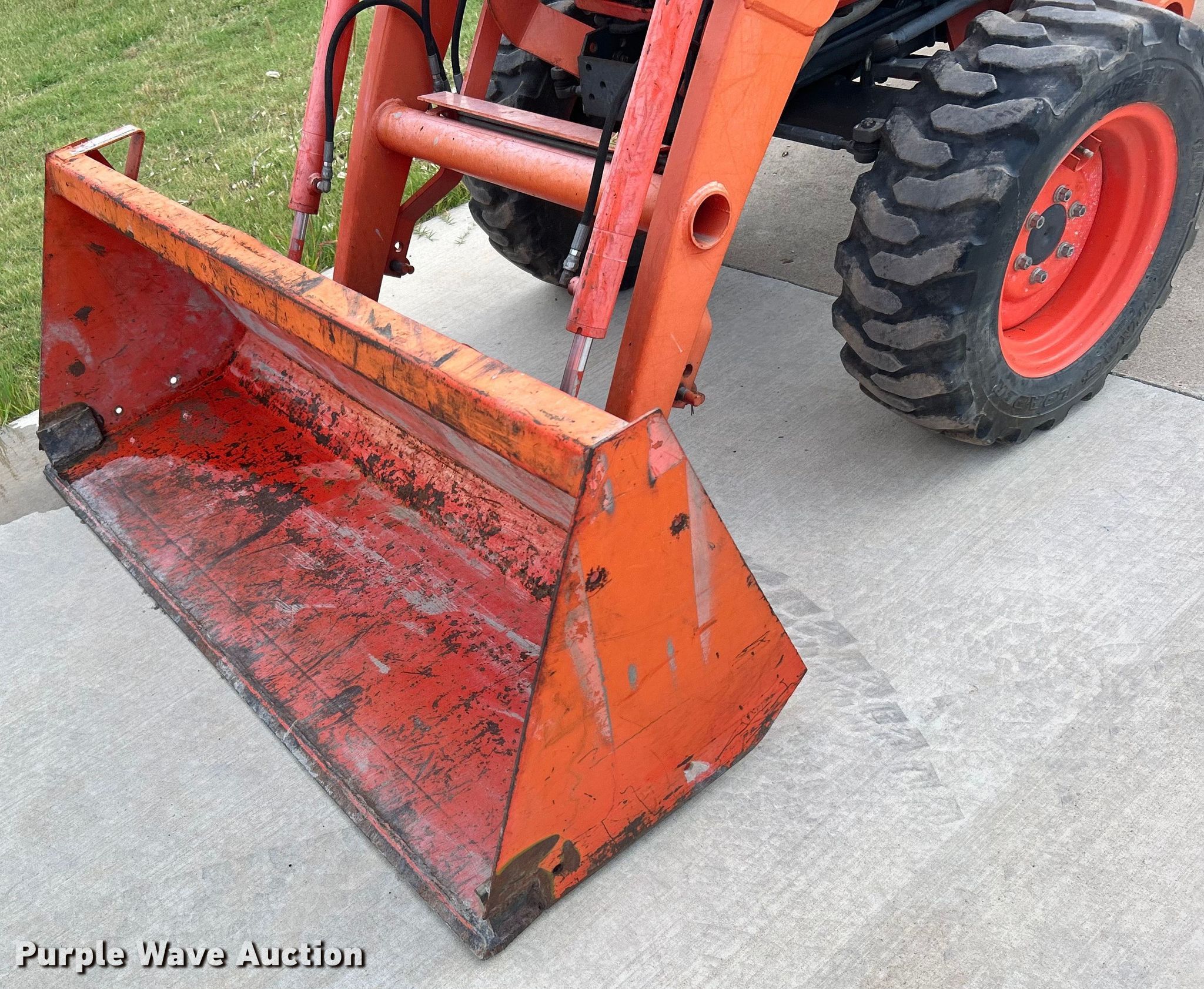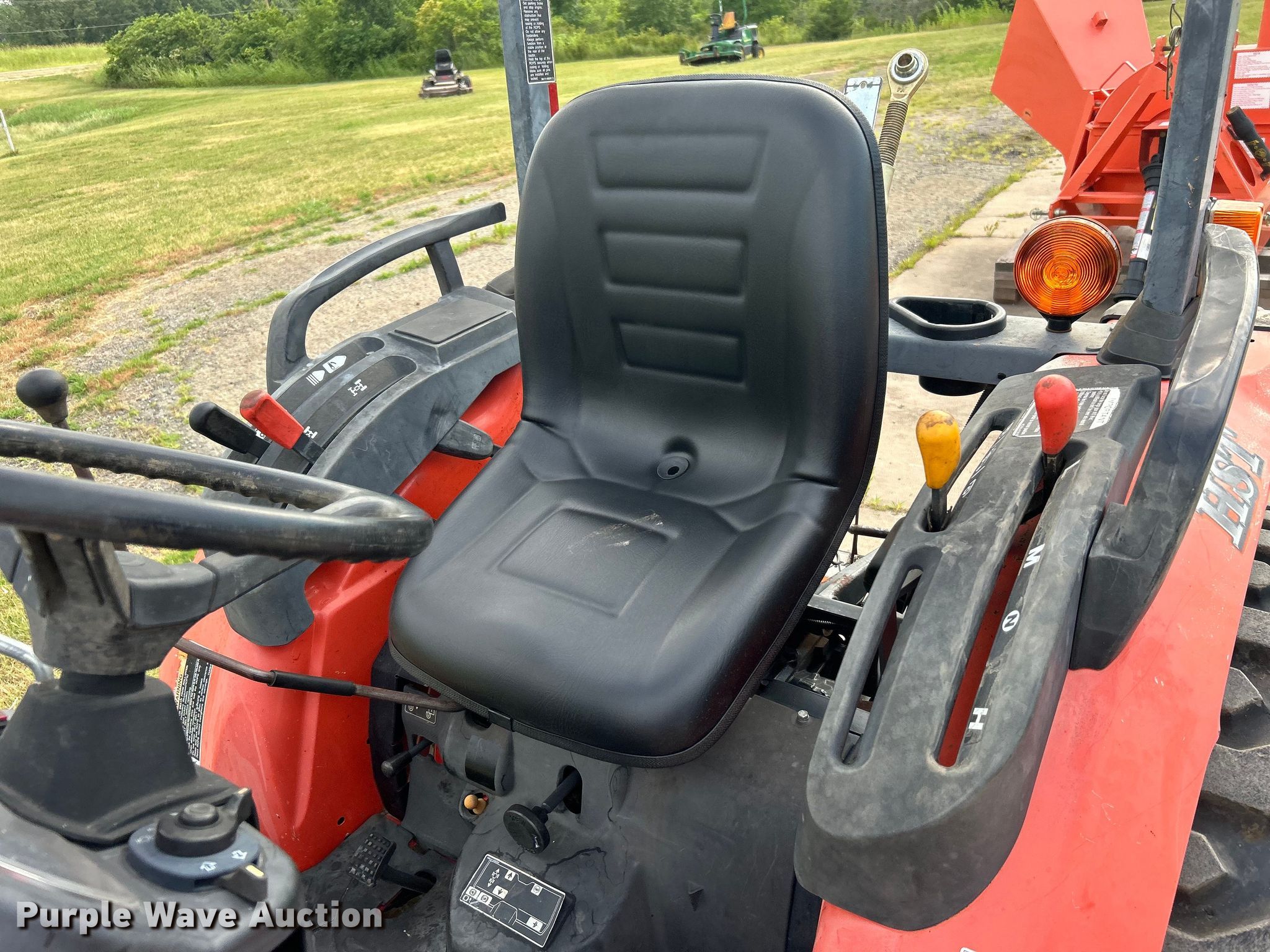 2011 Kubota B3300SU MFWD tractor. Hours: 348 on meter, Serial: 51598. Engine Cylinders: 4, Fuel type: Diesel. Transmission Hydrostatic, Differential lock. Features PTO: 540, Three point Top link, Loader Kubota LA504, Controls: Joystick, Bucket Width: 59".. Tires Front: 25x8.50-14 NHS, Rear: 15x19.5 NHS. Flint Equipment LLC. Drumright, OK 74030