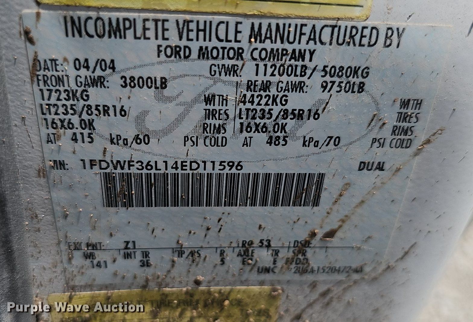 - VIN: 1FDWF36L14ED11596