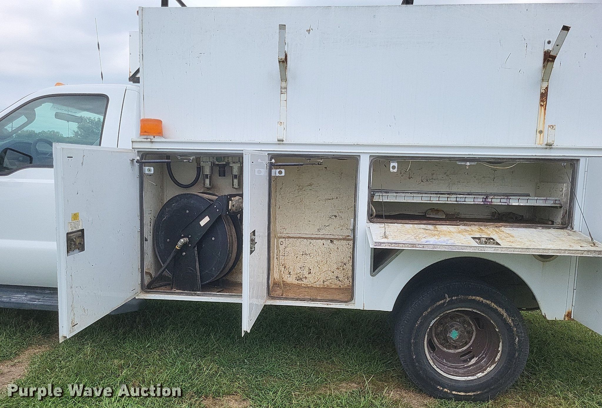This 2009 Ford F350 Super Duty XL utility bed pickup truck will sell to the highest bidder regardless of price.