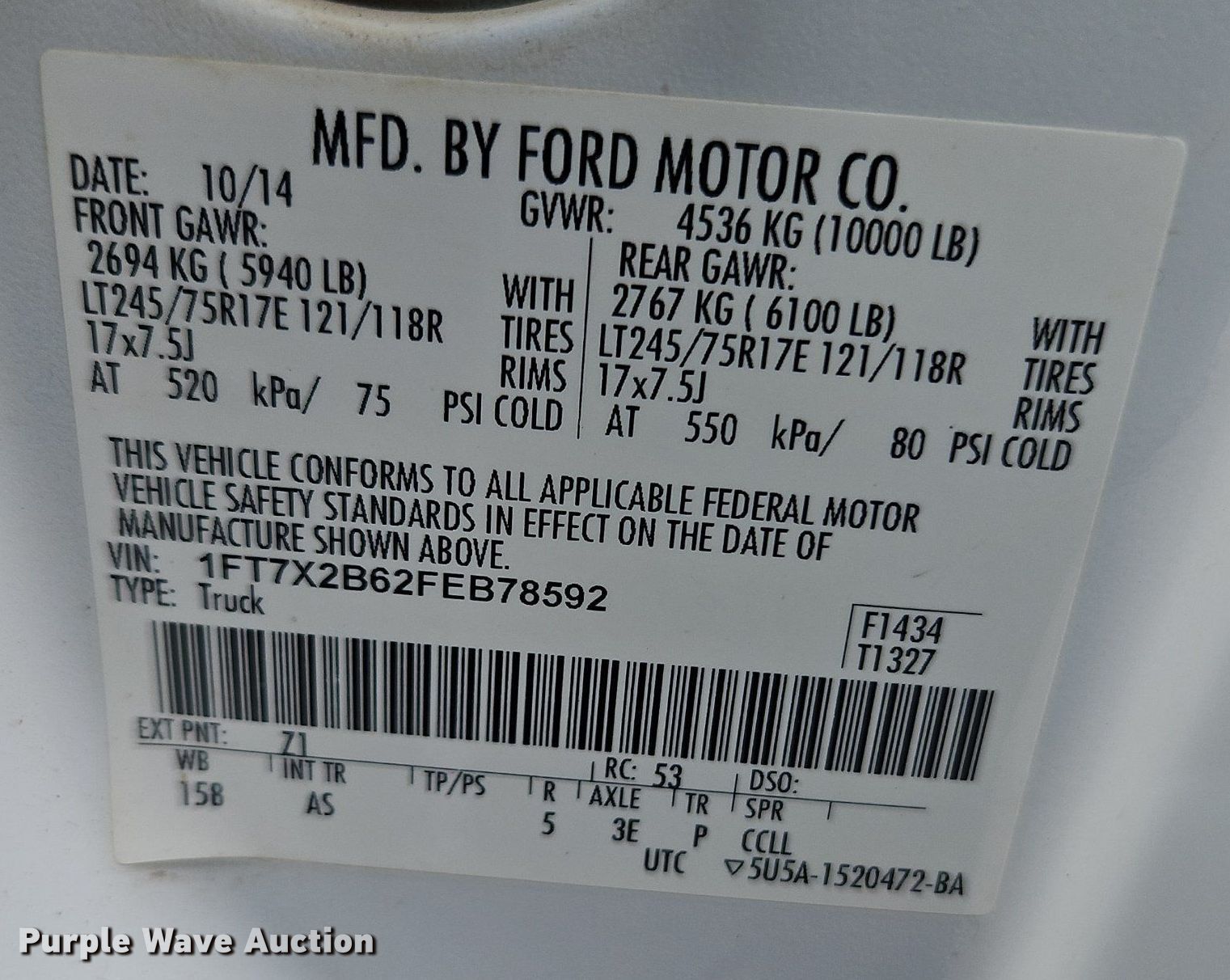 - VIN: 1FT7X2B62FEB78592