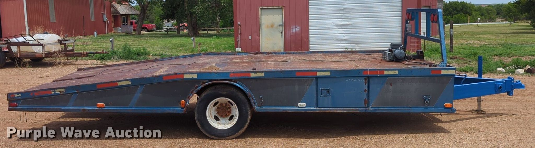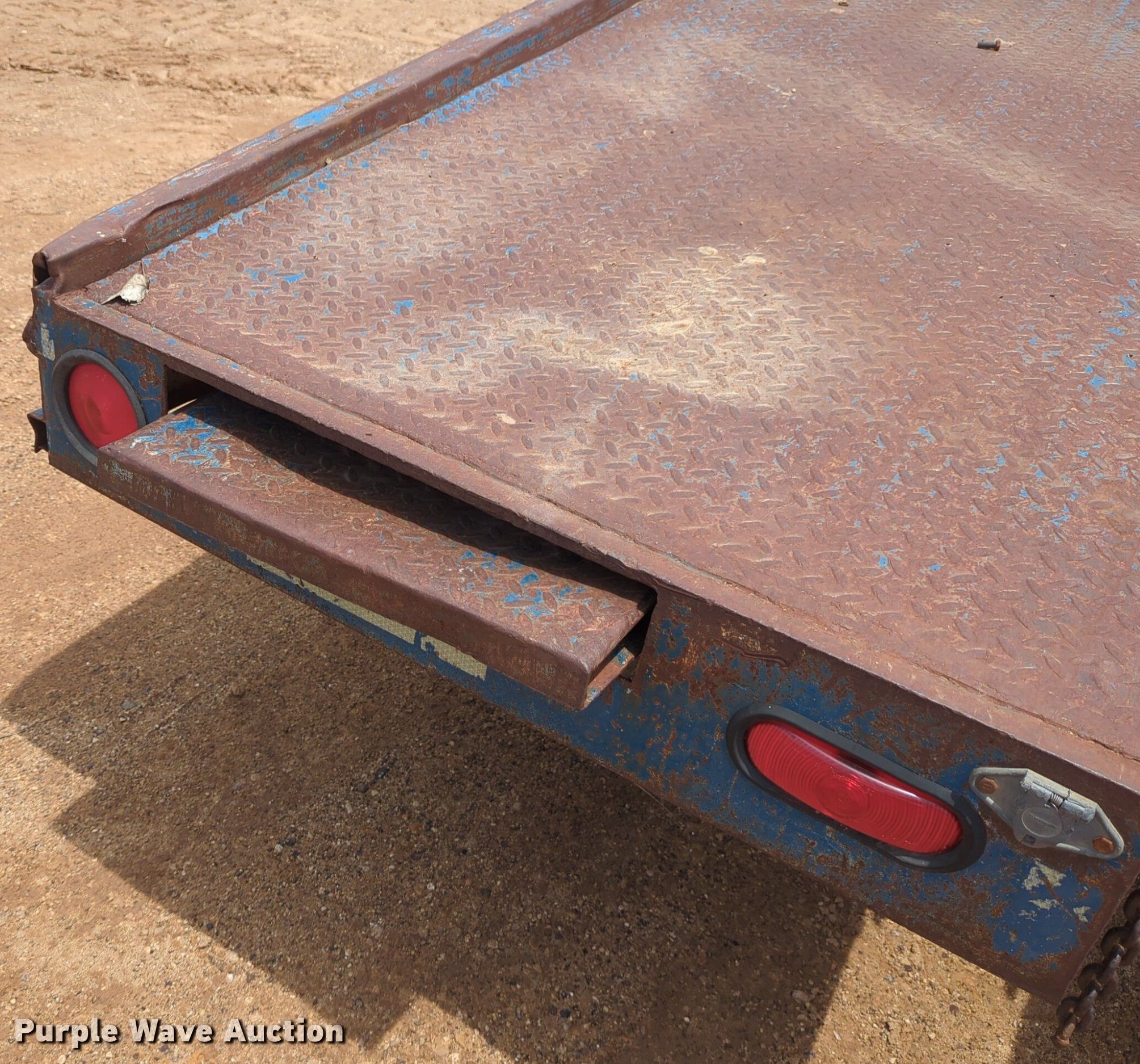 Purple Wave is selling a used Equip. Trailer in Oklahoma. This item is a Shop built equipment trailer with the following: Overall: 25' L x 96" W, Deck: 20' L x 96" W, Tail length: 7' 6", Ramps: Manual, Length: 6'