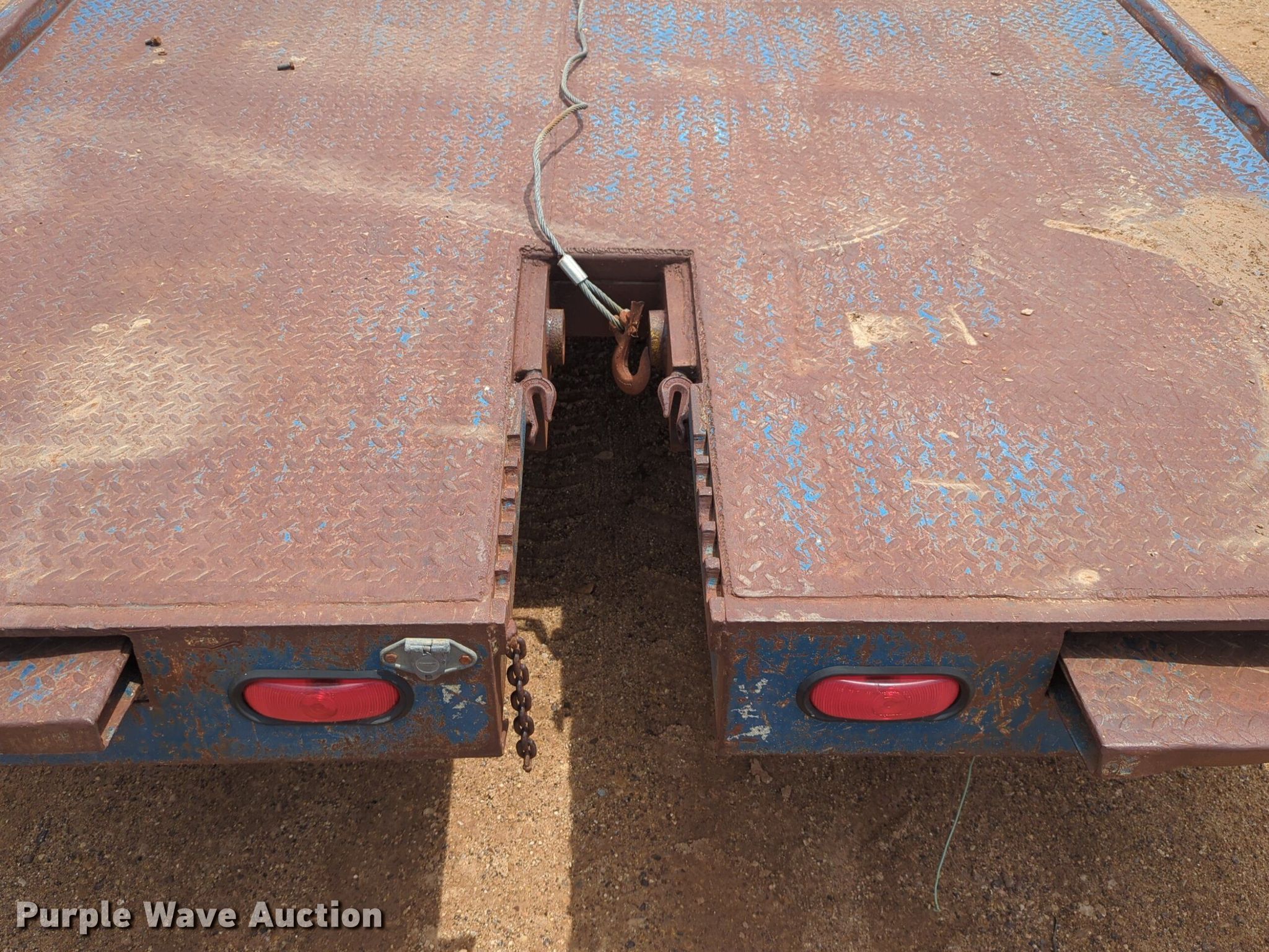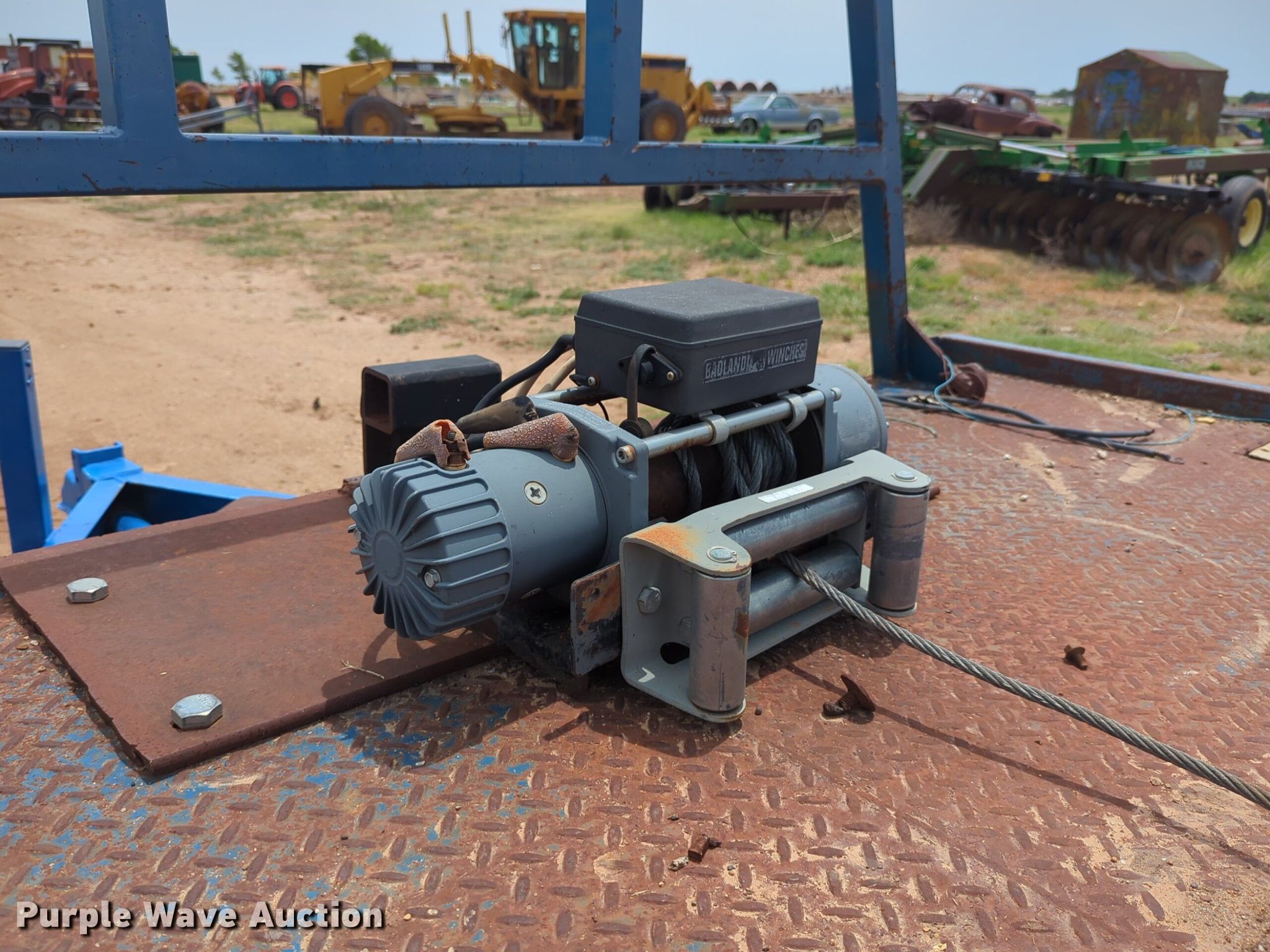 Shop built equipment trailer. Dimensions. Overall: 25' L x 96" W, Deck: 20' L x 96" W, Tail length: 7' 6", Ramps: Manual Length: 6'. Features Deck type: Steel, Winch Badland. Chassis Ball hitch: 2 5/16", Landing gear: Single, Suspension: Spring. Tires Steel wheels, Size: ST235/80R16. Transfer of ownership documentation will be a bill of sale. Beaver, OK 73932
