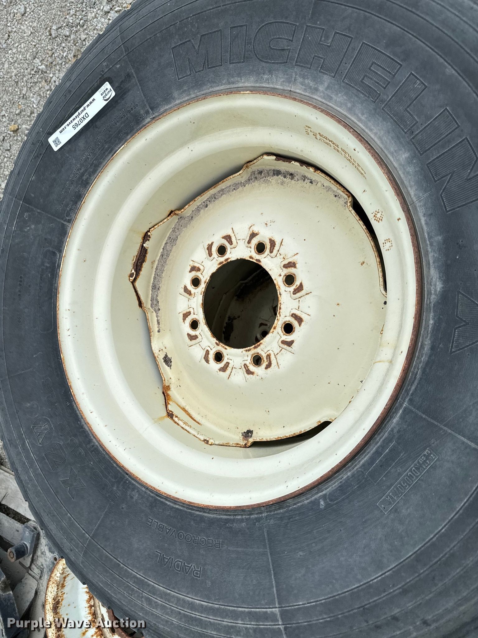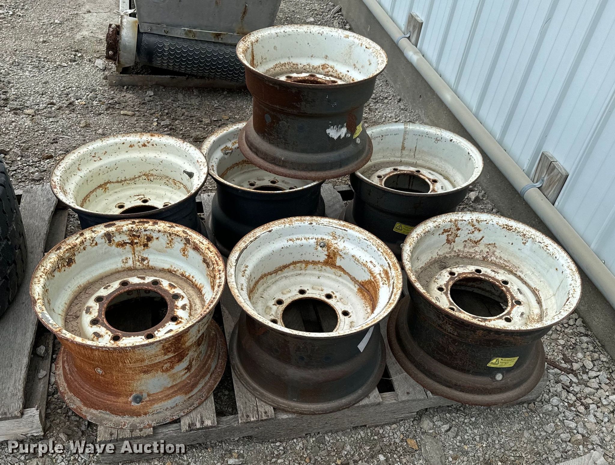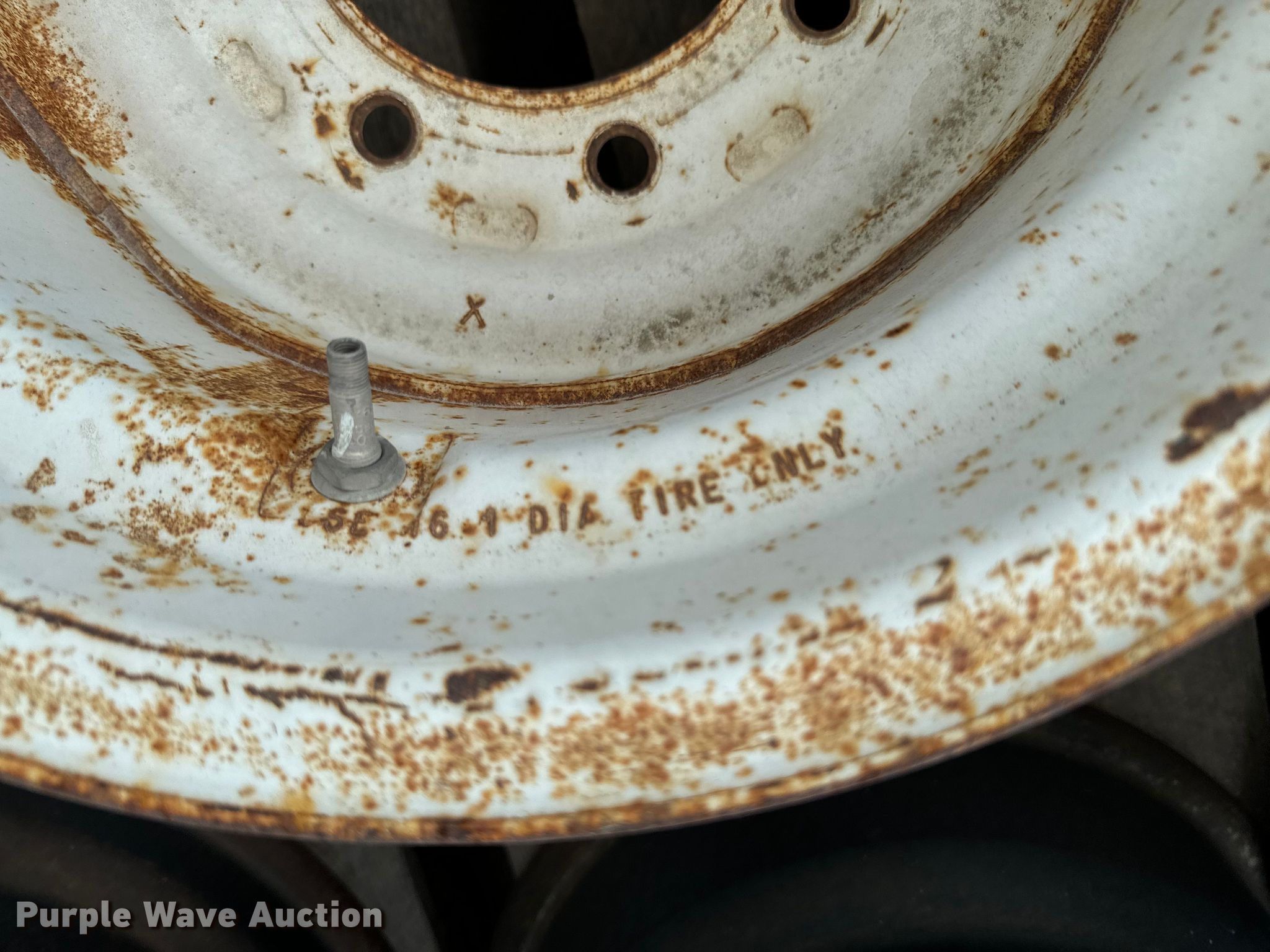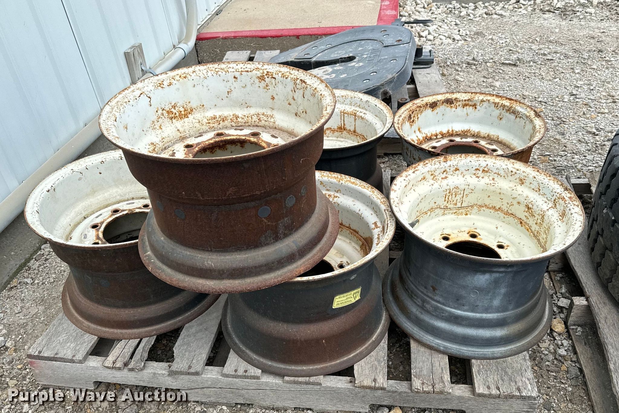 Purple Wave is selling a used Truck Part and Attach. in Kansas. This item is a Truck parts with the following: (7) 16" wheels, (2) 385/65R22.5 tires and wheels, Jost fifth wheel plate, Width: 40"