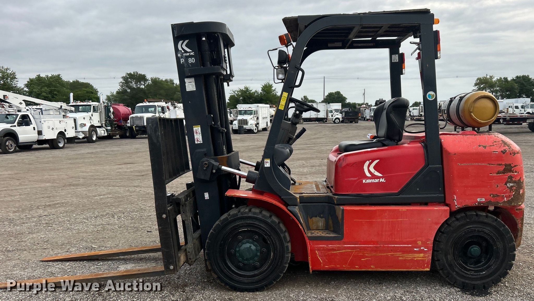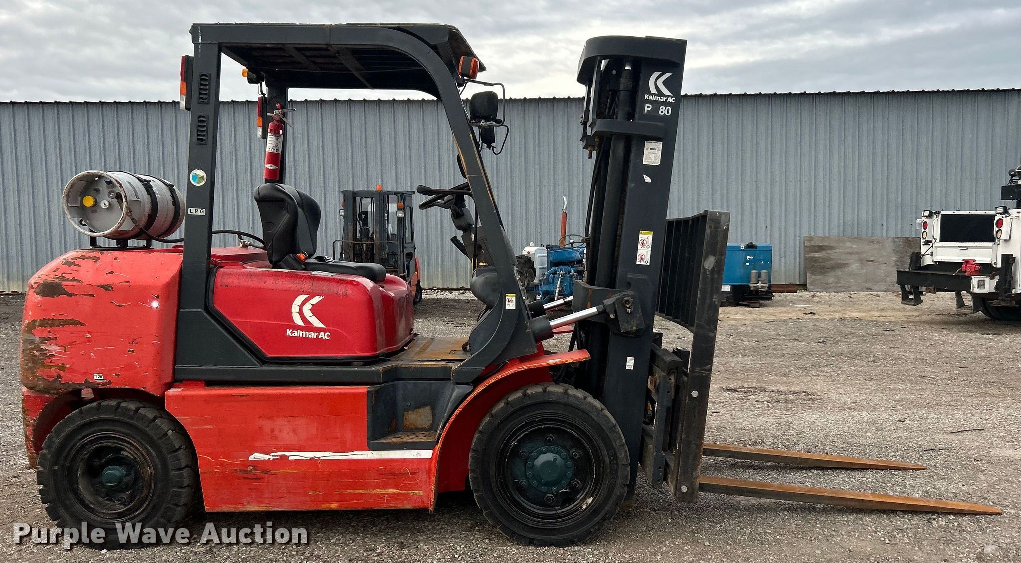 Purple Wave is selling a used Cushion Tire or Pneumatic Forklift in Oklahoma. This item is a 2004 Kalmar-AC, Inc. P80CX PS forklift with the following: Hours: 6,484 on meter, Serial: 130351A
