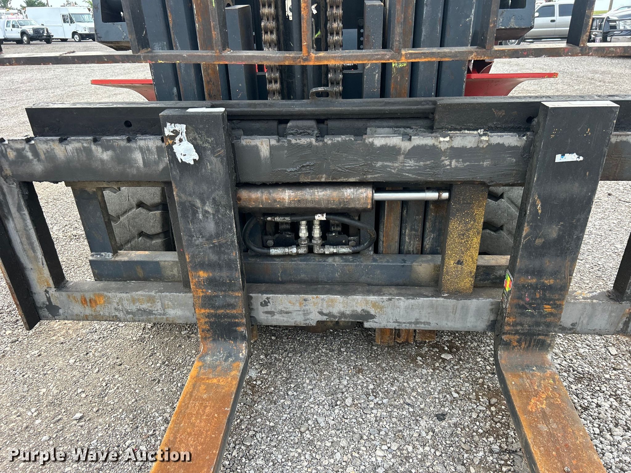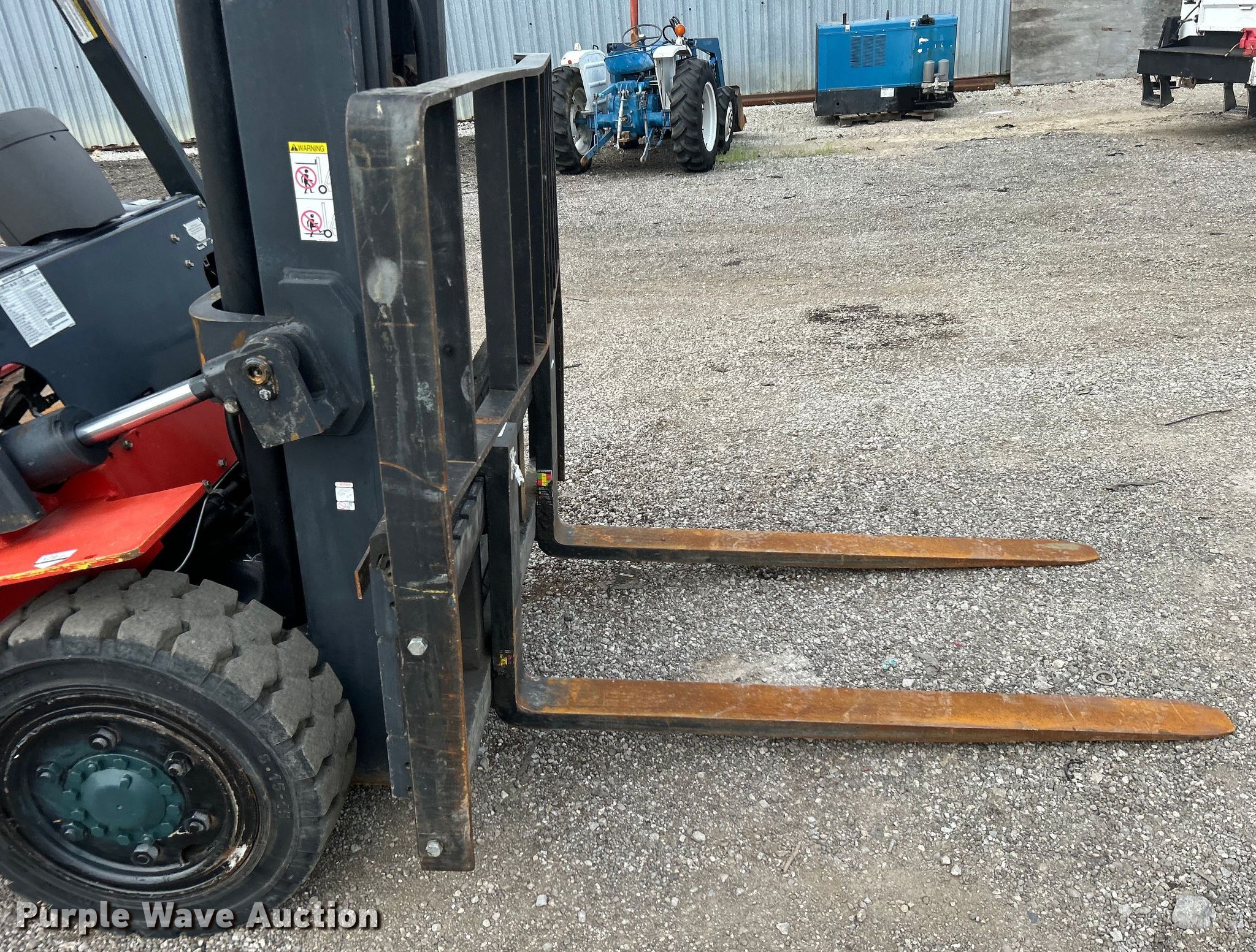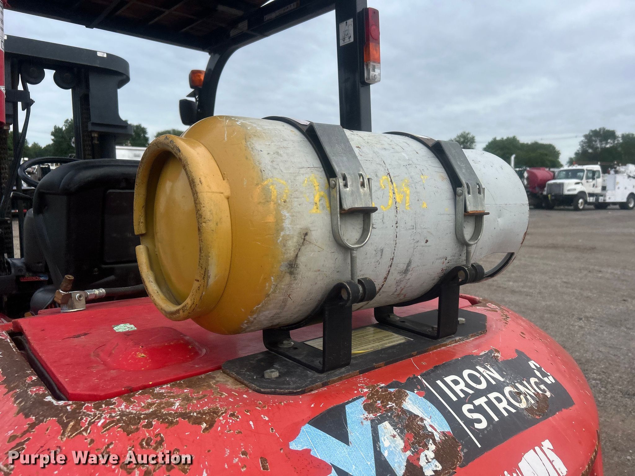2004 Kalmar-AC, Inc. P80CX PS forklift. Hours: 6,484 on meter, Serial: 130351A. Engine Nissan 4NSXB04.546C, Displacement: 4.5L, Cylinders: 6, Fuel type: LPG LP bottle: Included. Transmission Powershift. Operators station Canopy. Features Maximum lift capacity: 6,910 lbs, Maximum lift height: 185", Mast stages: 3, Side shift, Mast tilt, Fork length: 60". Tires Front: 8.15-15, Rear: 7.00-12, Solid. 15107 North 137th East Avenue. Collinsville, OK 74021