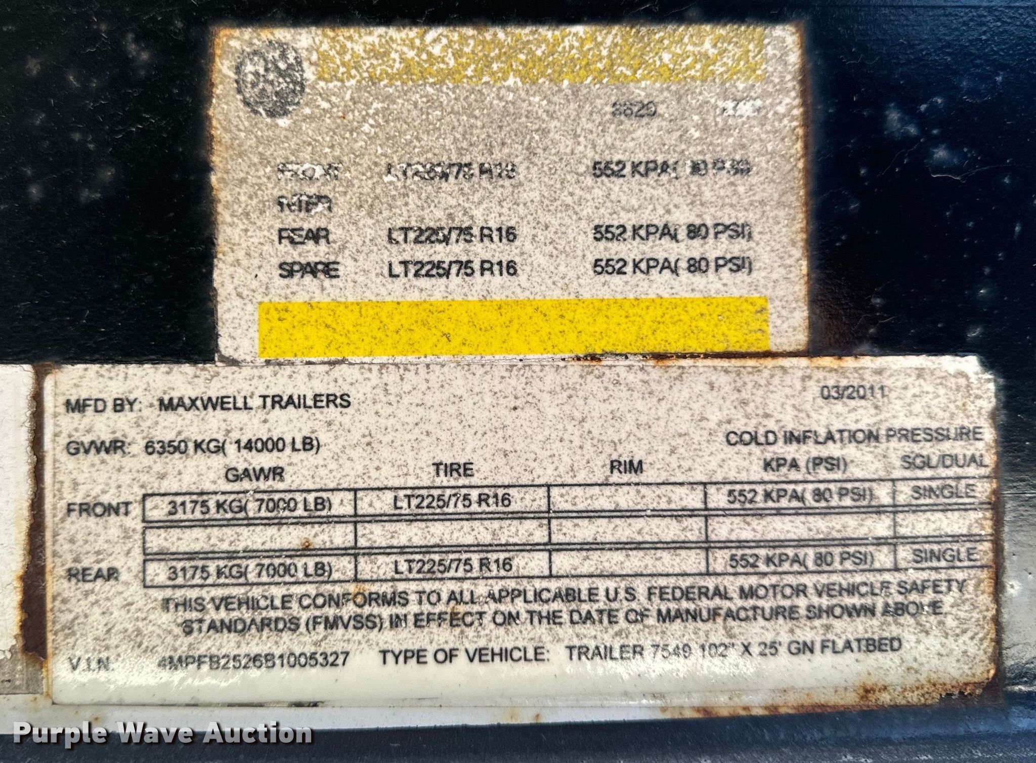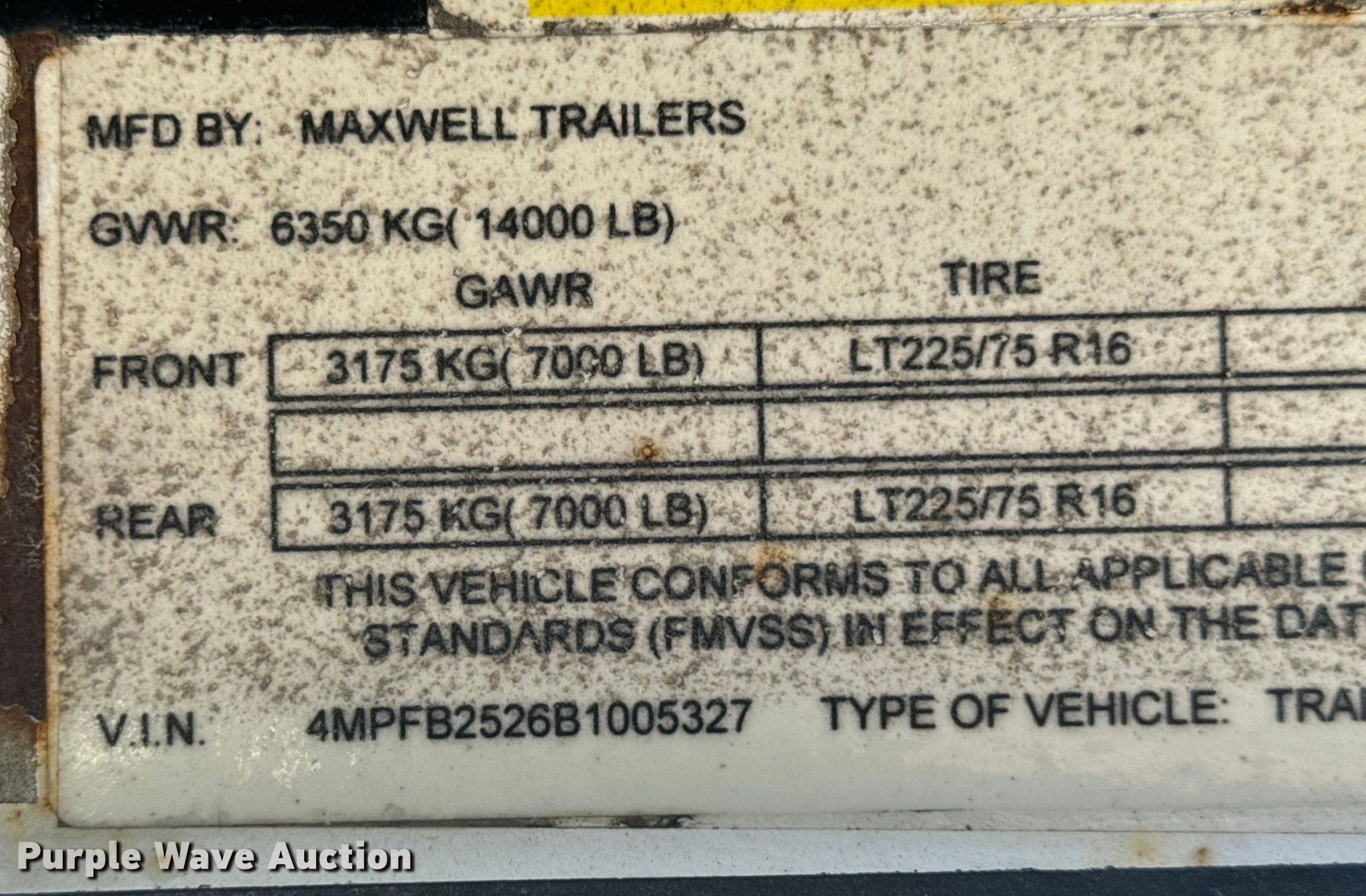 Purple Wave is selling a used Equip. Trailer in Missouri. This item is a 2011 Maxwell drop deck equipment trailer with the following: VIN: 4MPFB2526B1005327