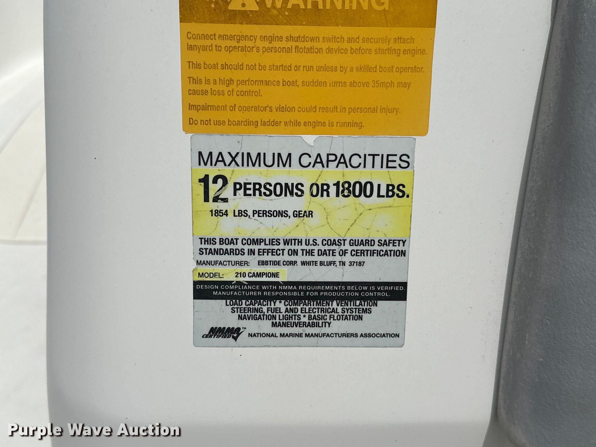 Purple Wave is selling a used Boat in Oklahoma. This item is a 2004 Ebbtide Campione boat with the following: Length: 21', Hull ID: ETC00722D404
